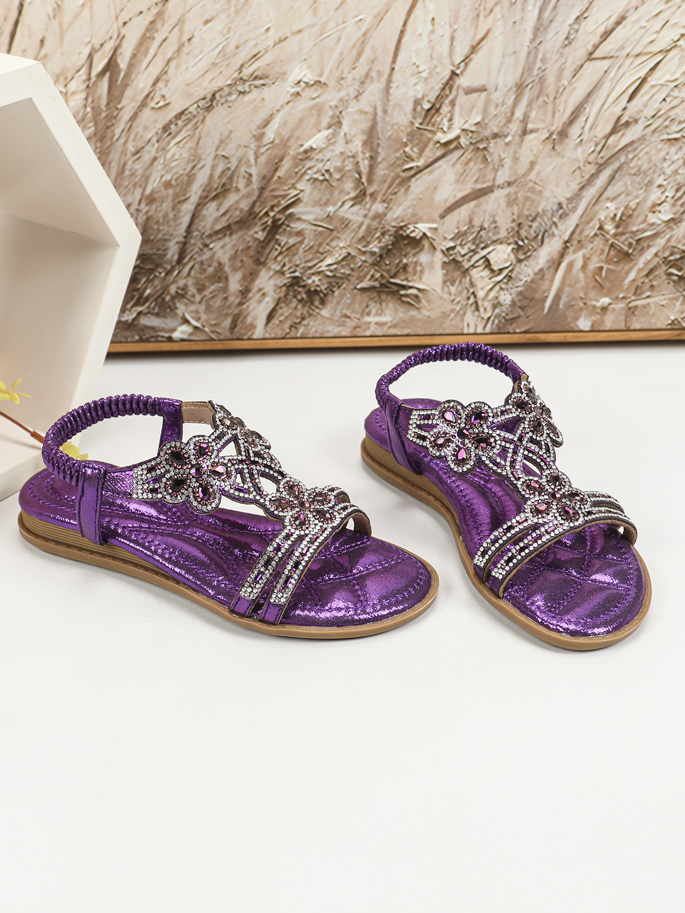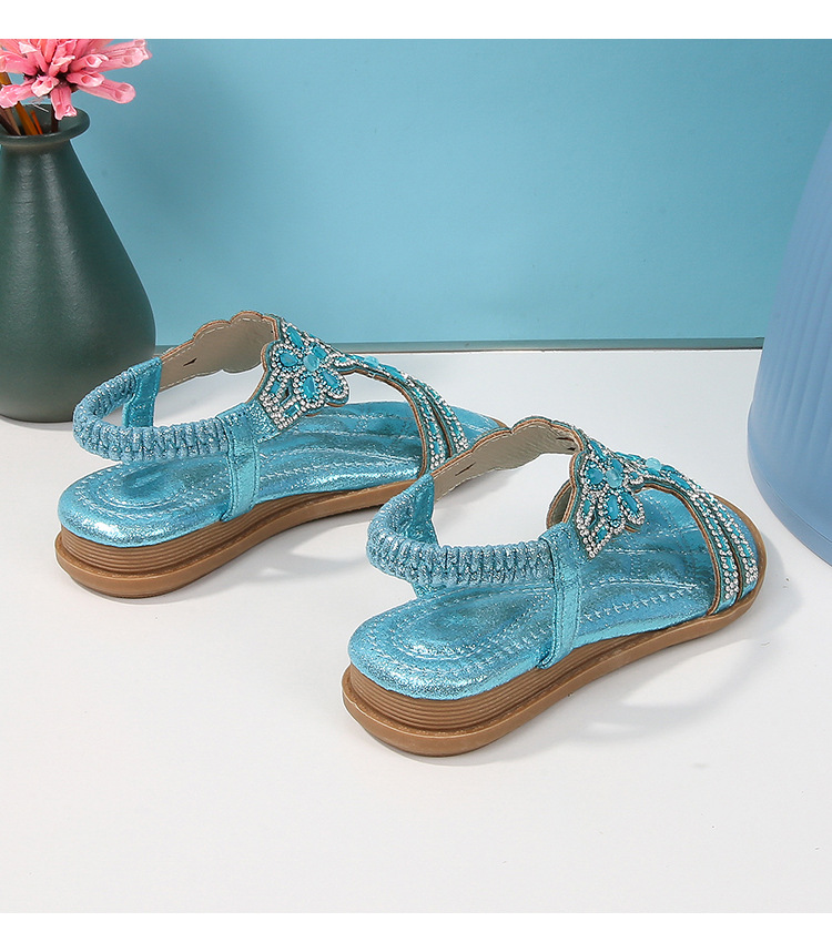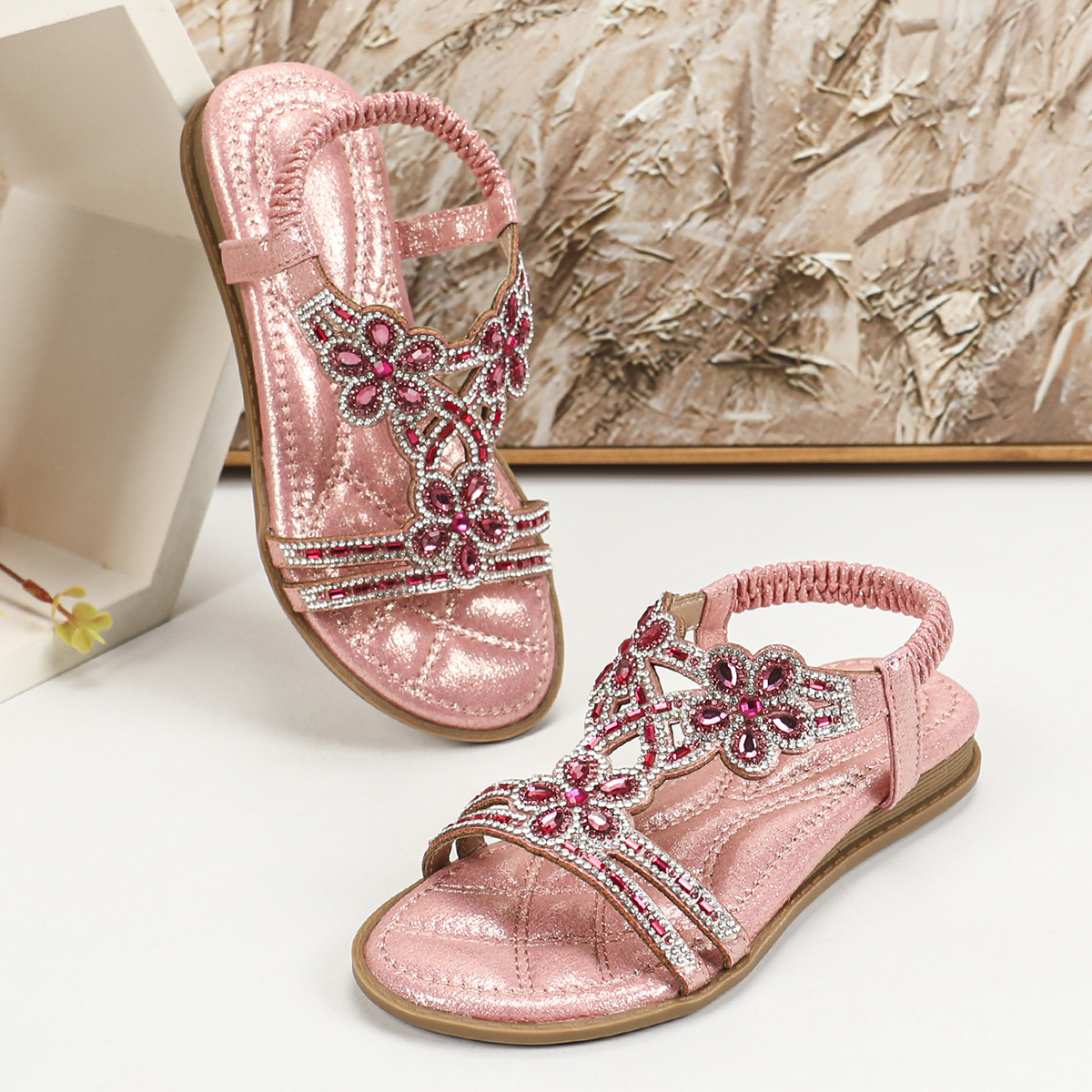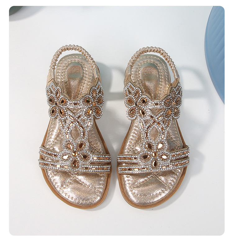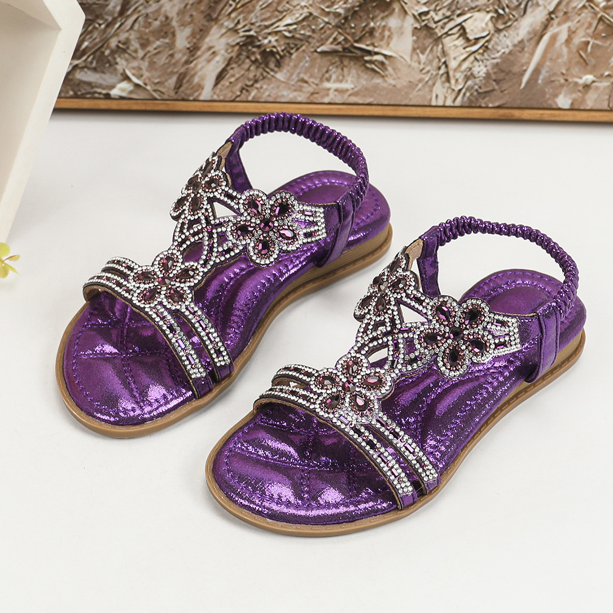 유럽과 미국의 국경 2024 새로운 평면 어린이 샌들 꽃 라인 스톤 편안한 올 매치 오픈 토 프린세스 걸스 신발