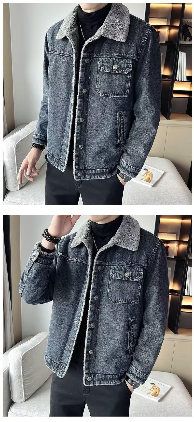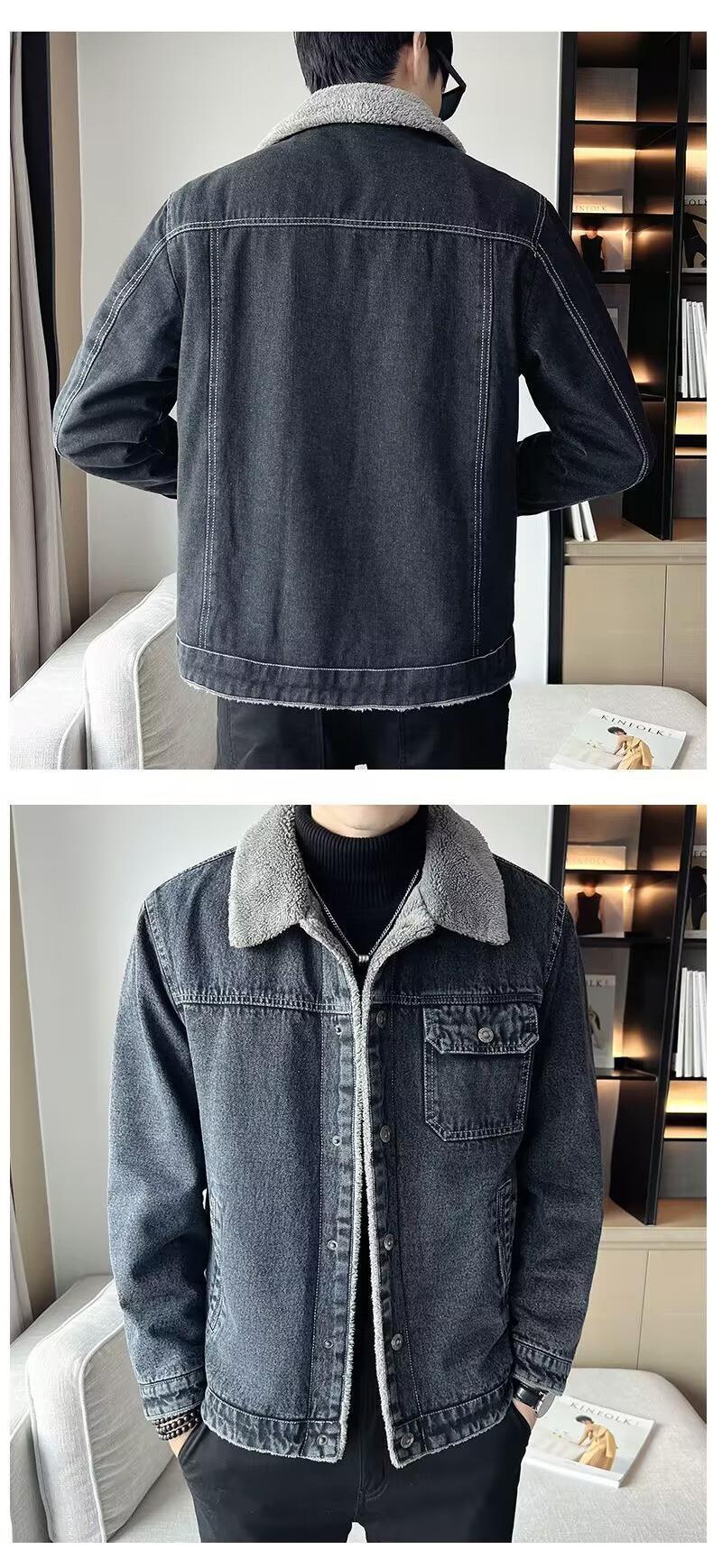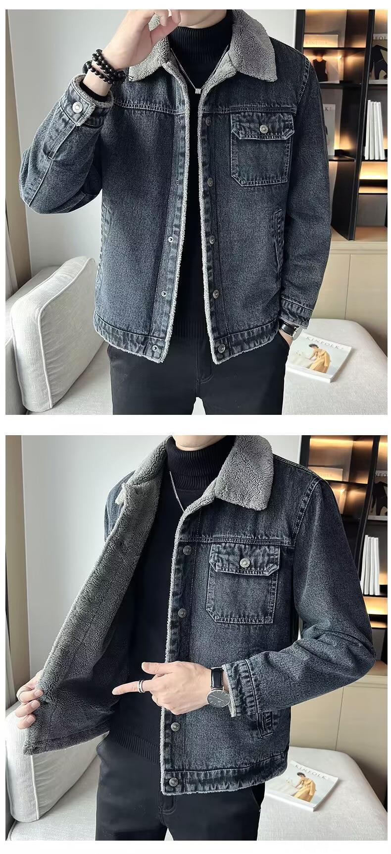 남성용 데님 재킷, 벨벳 안감, 두꺼운 겨울용 양털, 2025년 신상, 한국 스타일, 슬림핏, 라펠 캐주얼 재킷스토어 가기