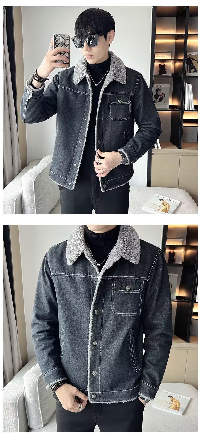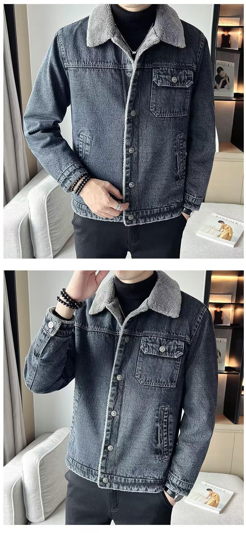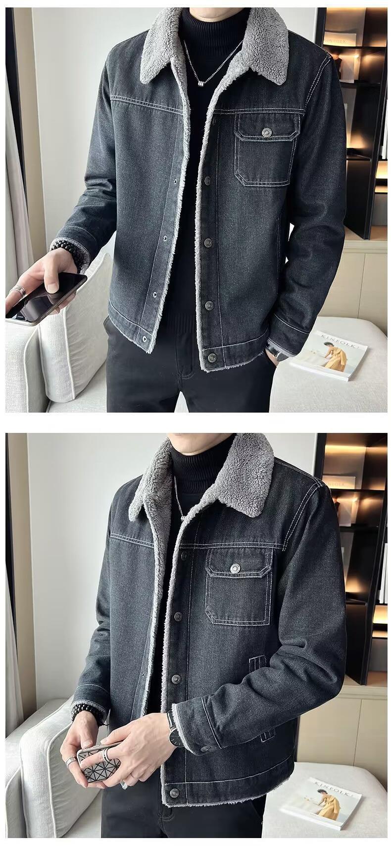 남성용 데님 재킷, 벨벳 안감, 두꺼운 겨울용 양털, 2025년 신상, 한국 스타일, 슬림핏, 라펠 캐주얼 재킷스토어 가기