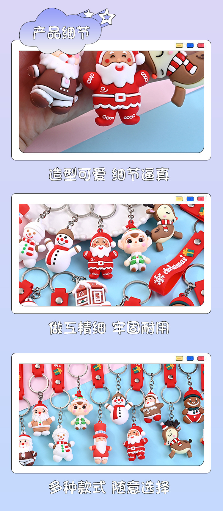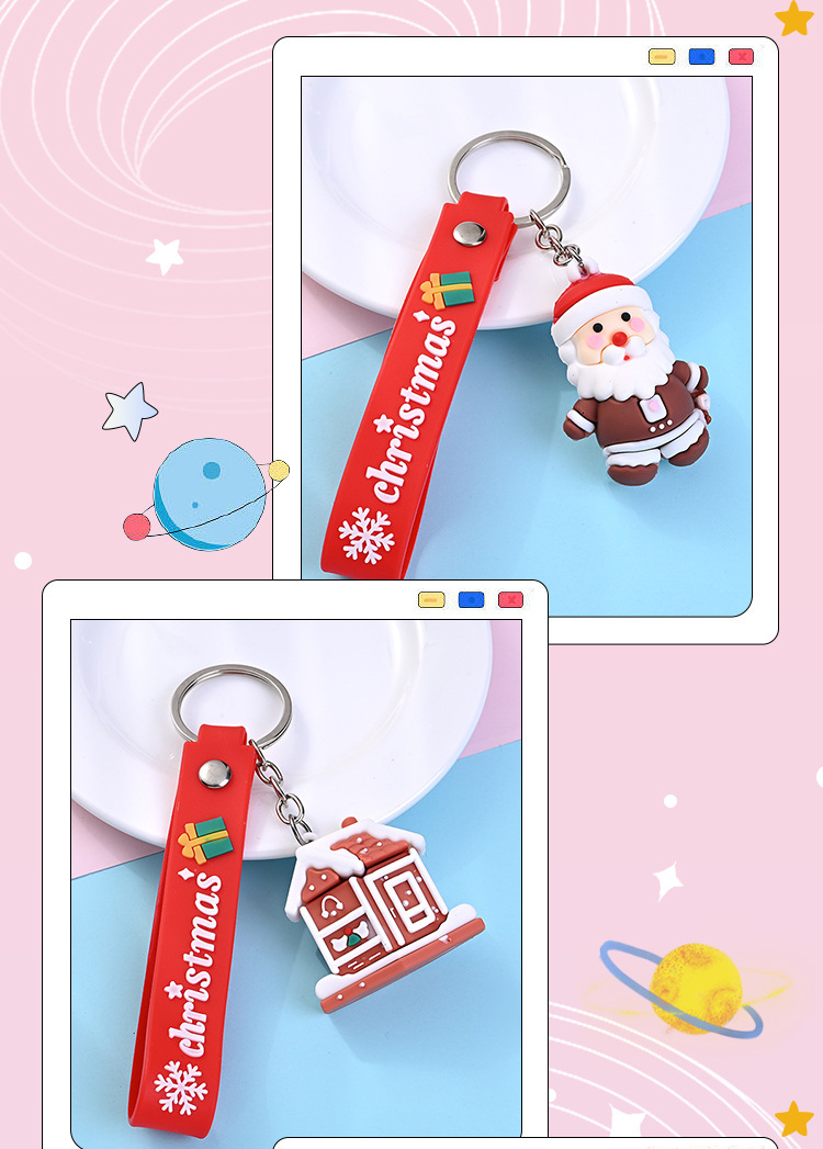 귀여운 크리스마스 가죽 스트립 키 체인 만화 스테레오 산타 클로스 펜던트 어린이 선물 이벤트 오프닝 선물스토어 가기