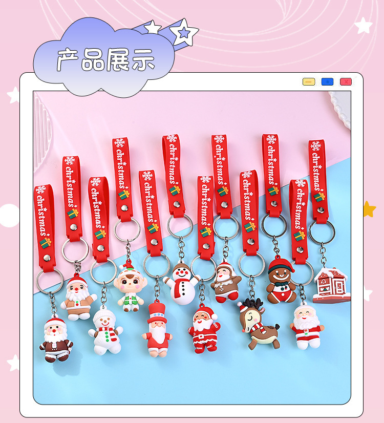 귀여운 크리스마스 가죽 스트립 키 체인 만화 스테레오 산타 클로스 펜던트 어린이 선물 이벤트 오프닝 선물