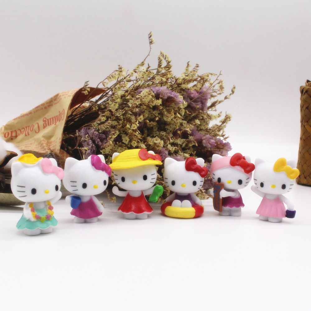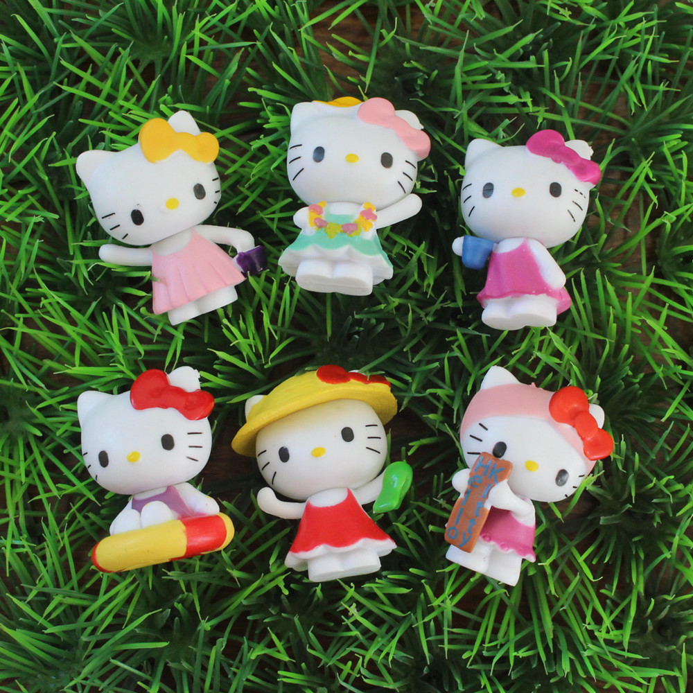 단단한 수영 반지 KT 고양이 6 조각 세트 마이크로 풍경 장식품 미니 인형 베이킹 케이크 장식 장식품스토어 가기