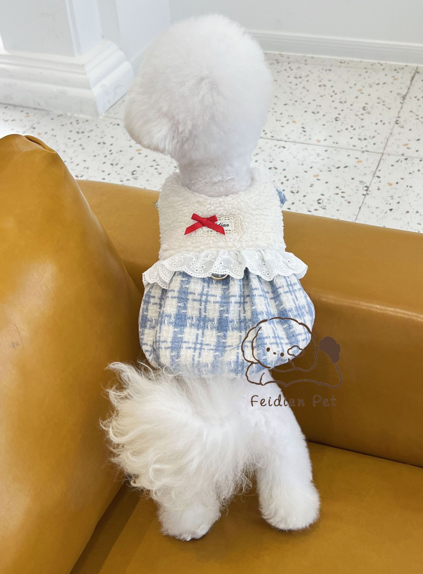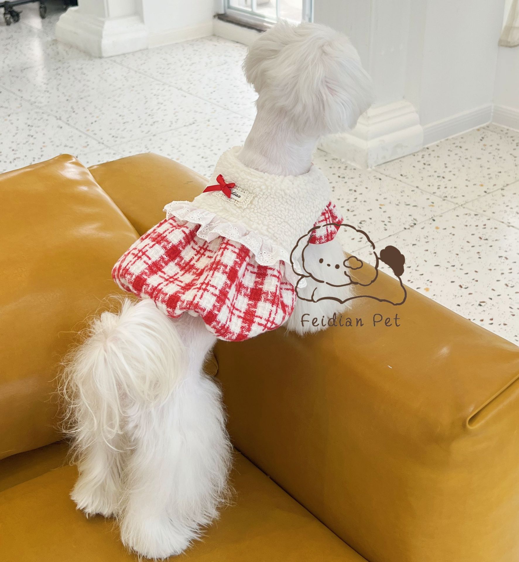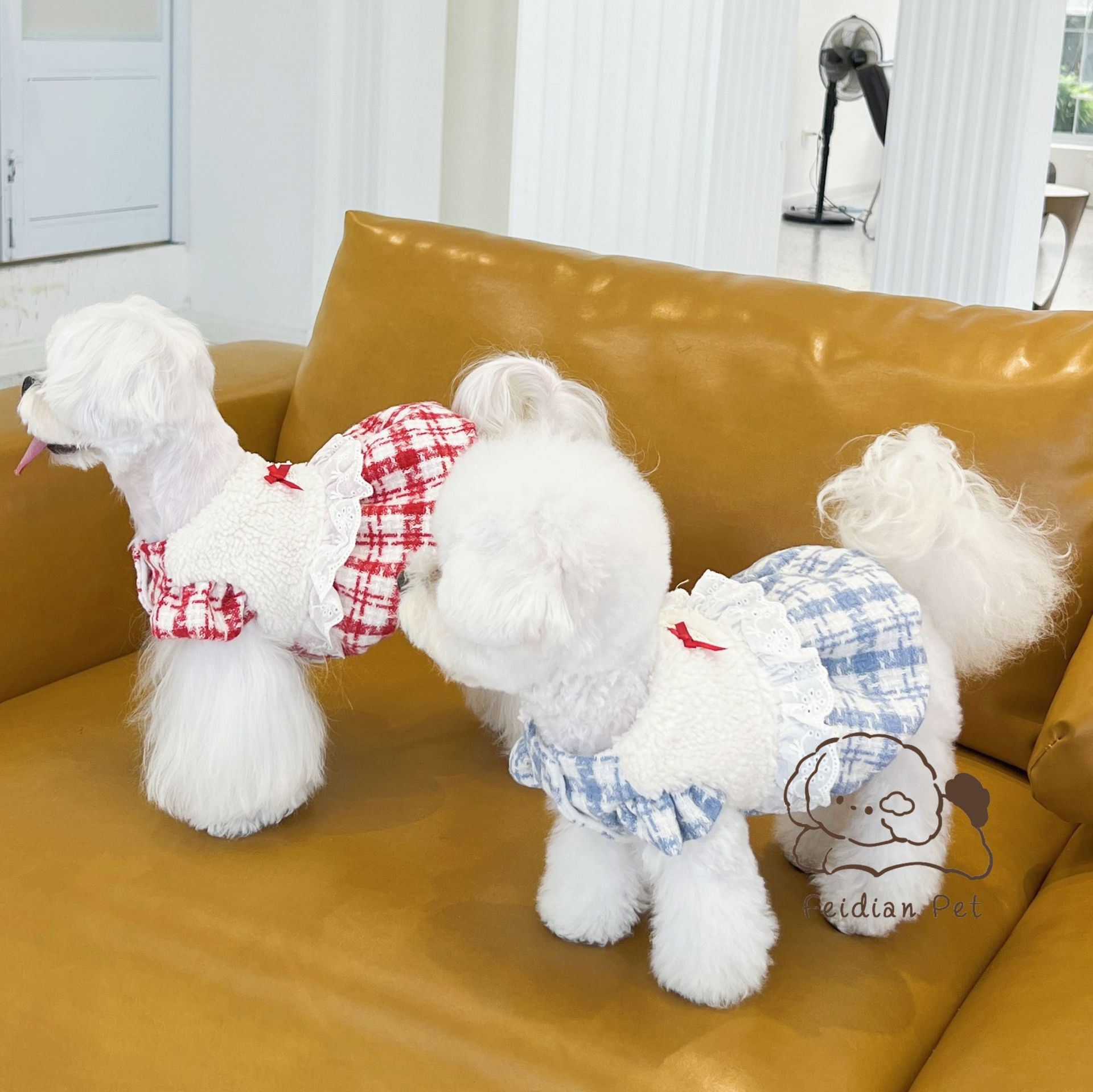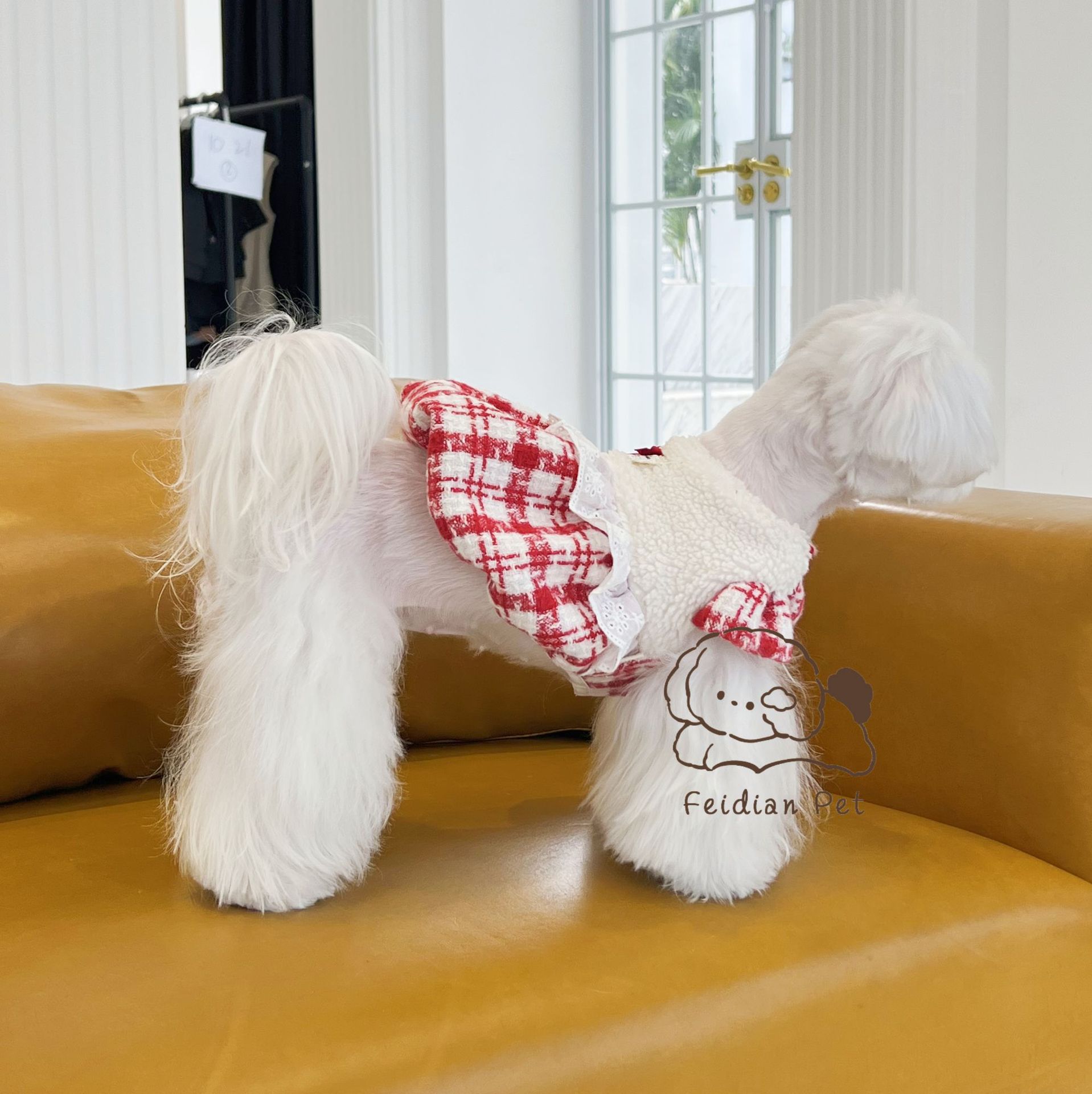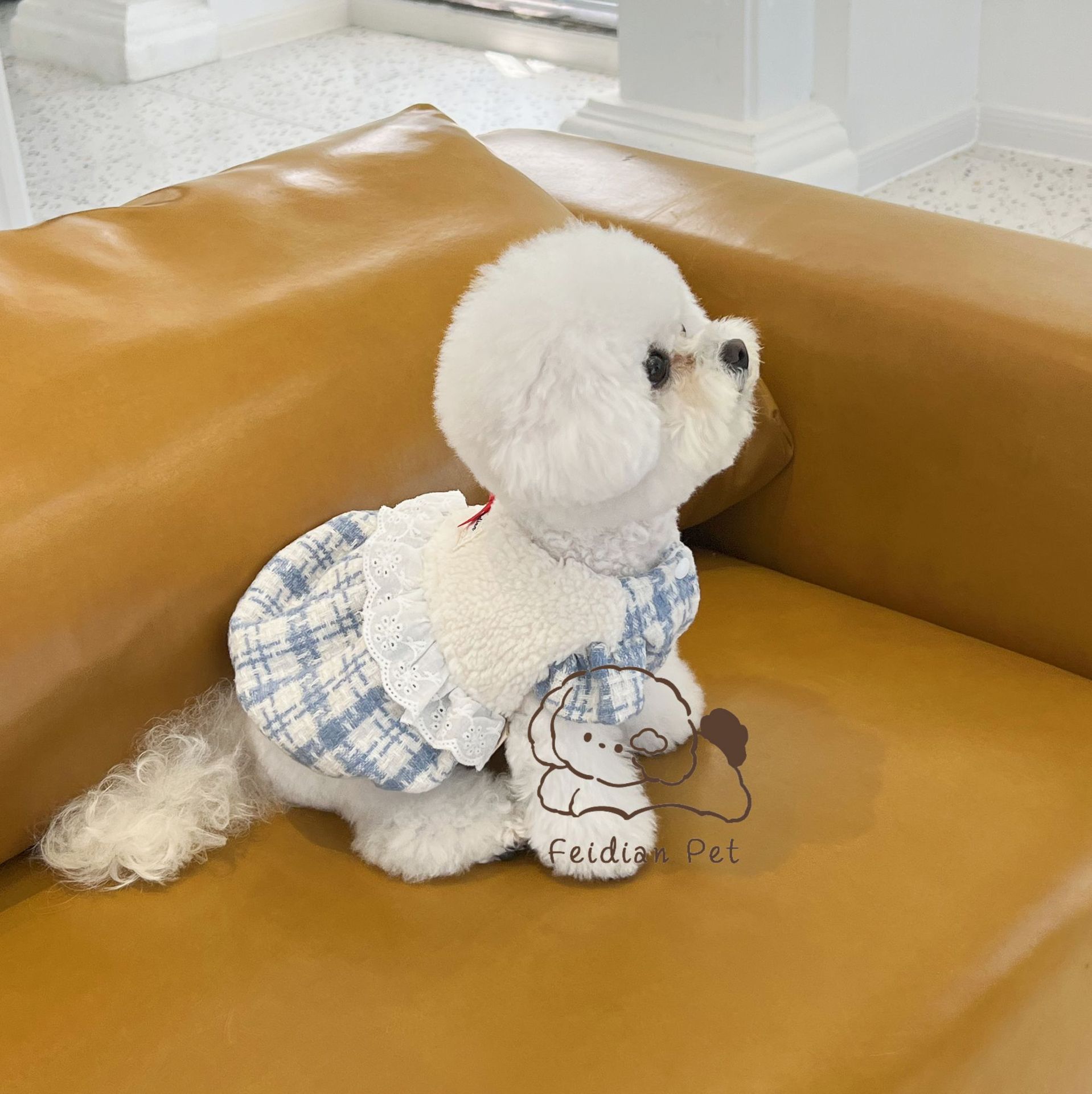 가을과 겨울 새로운 더블 레이어 기모 샤넬 스타일 양고기 벨벳 스티칭 호박 원피스 작은 개와 고양이 패션 두꺼운 의류스토어 가기