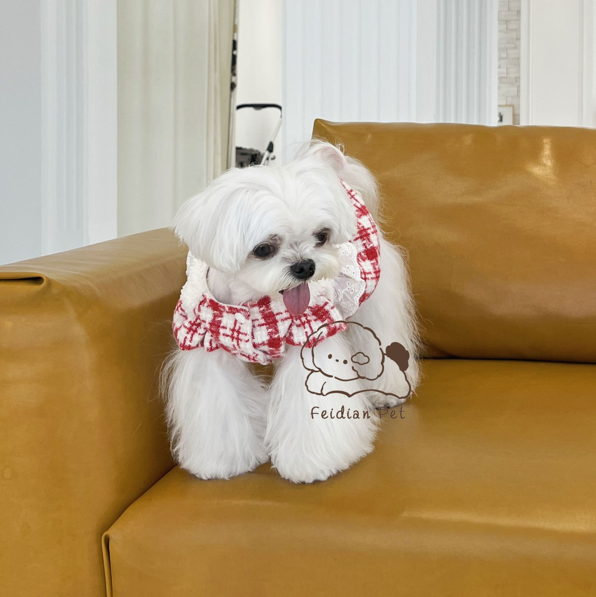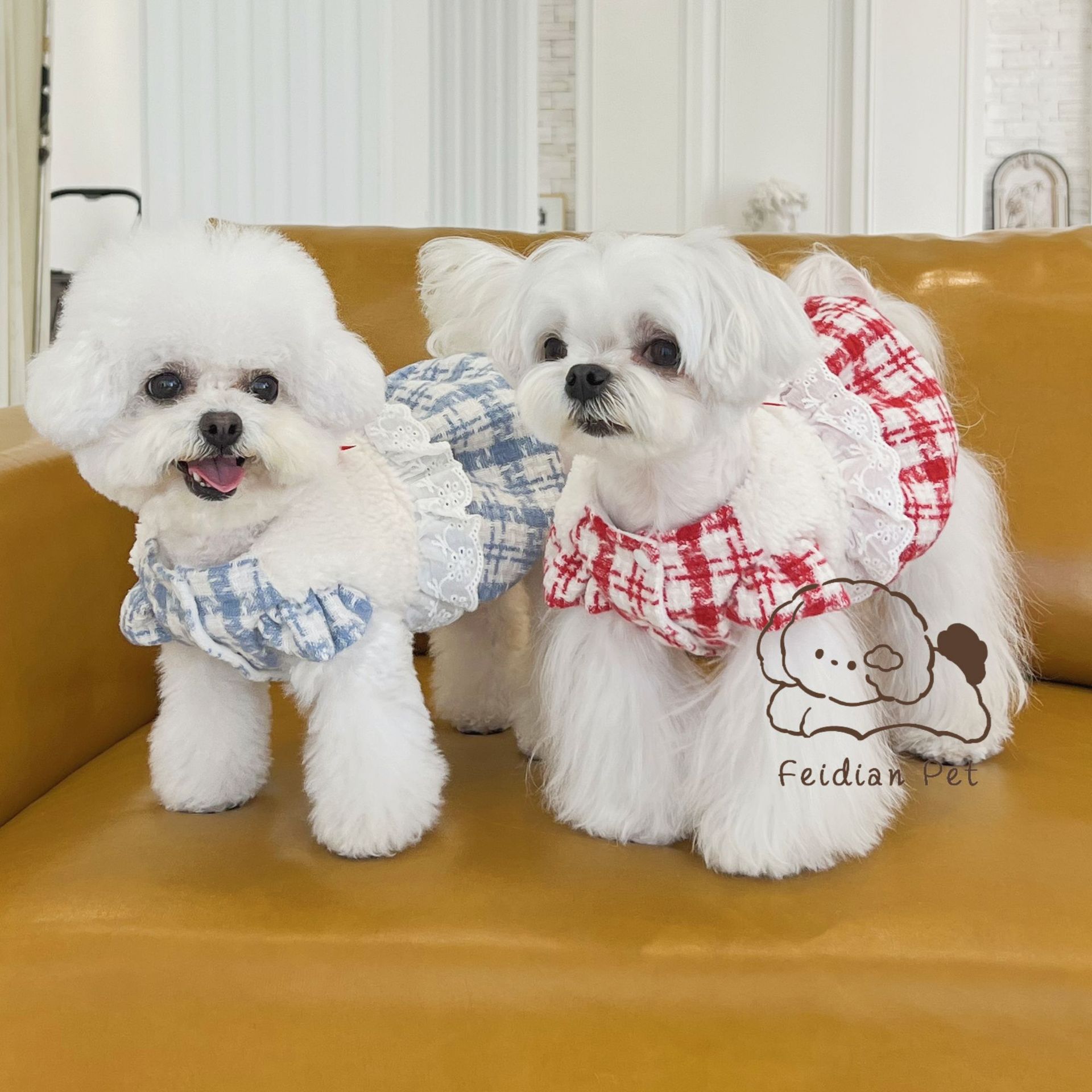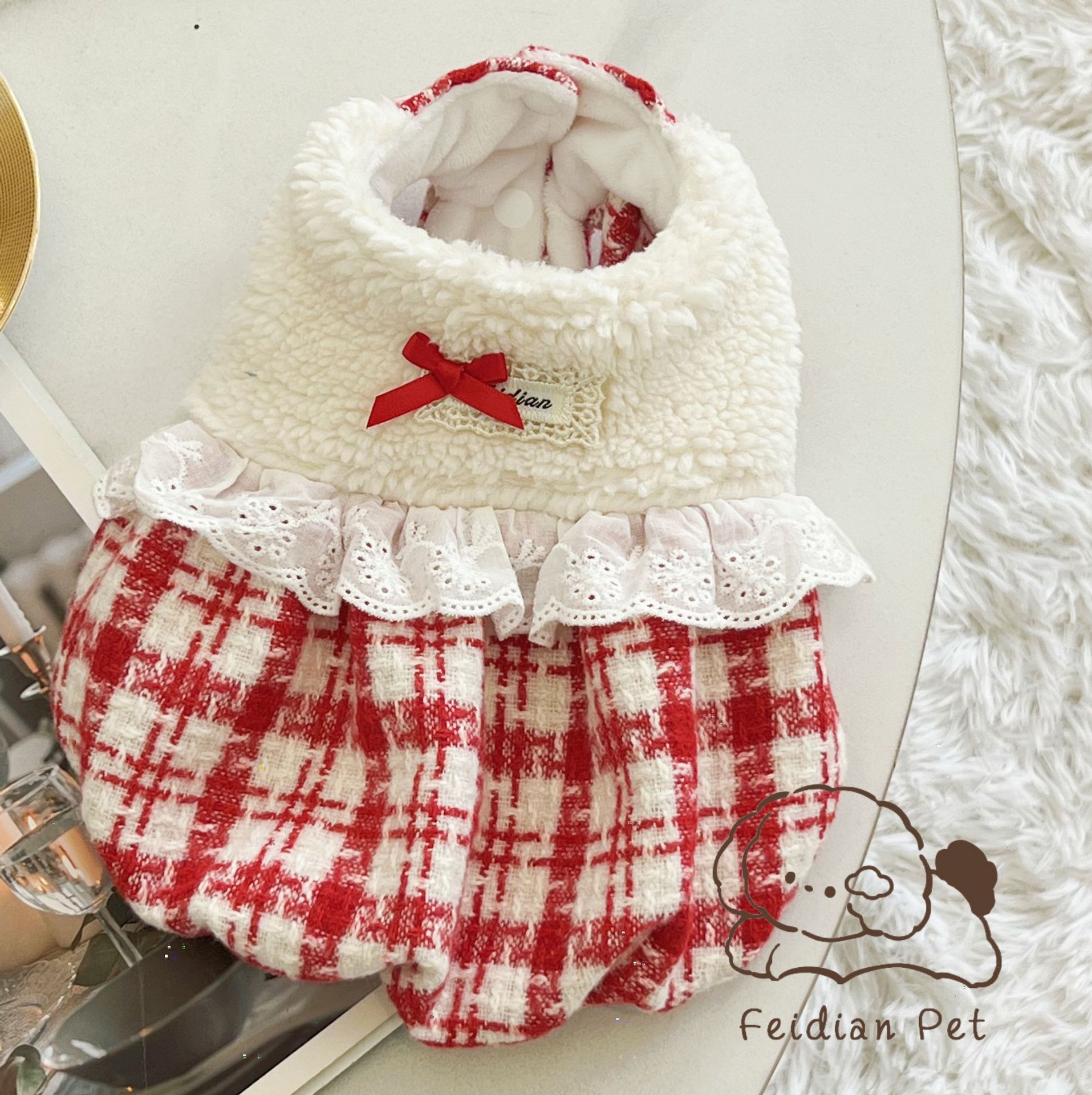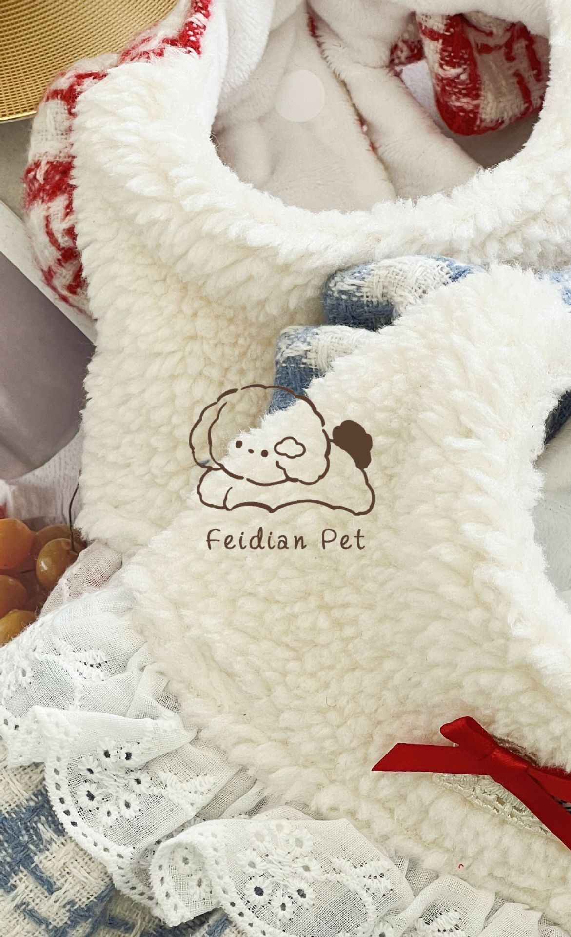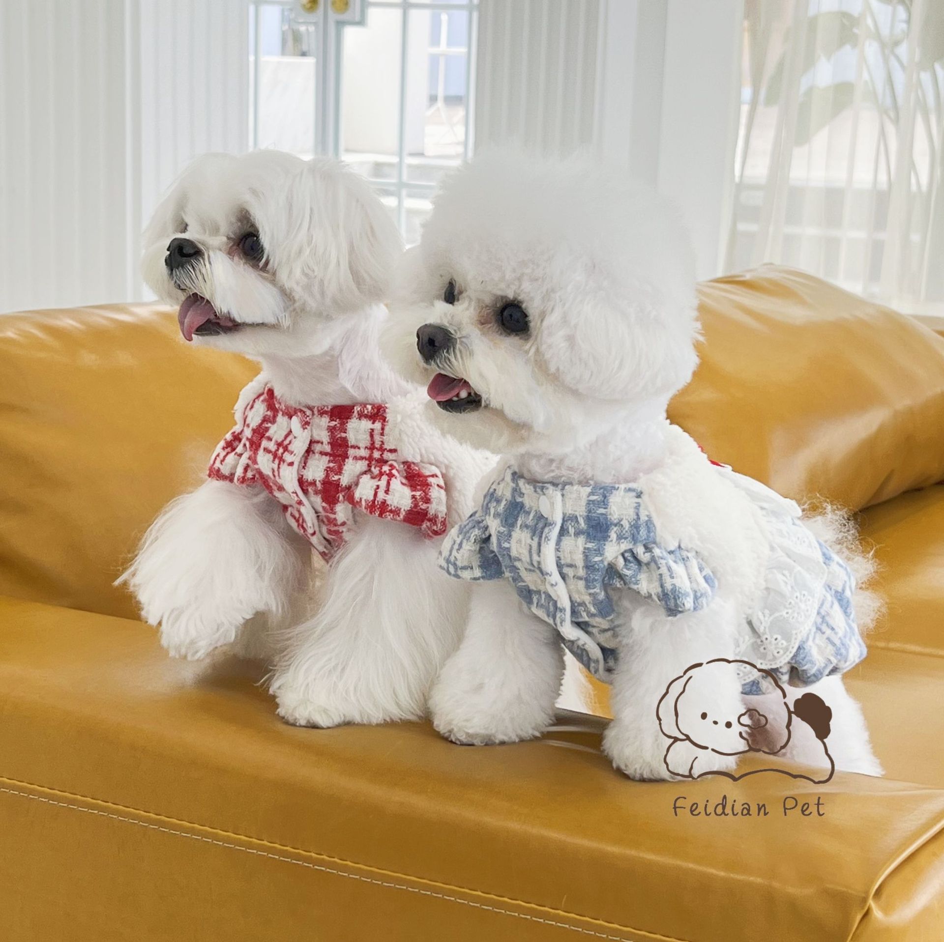 가을과 겨울 새로운 더블 레이어 기모 샤넬 스타일 양고기 벨벳 스티칭 호박 원피스 작은 개와 고양이 패션 두꺼운 의류스토어 가기