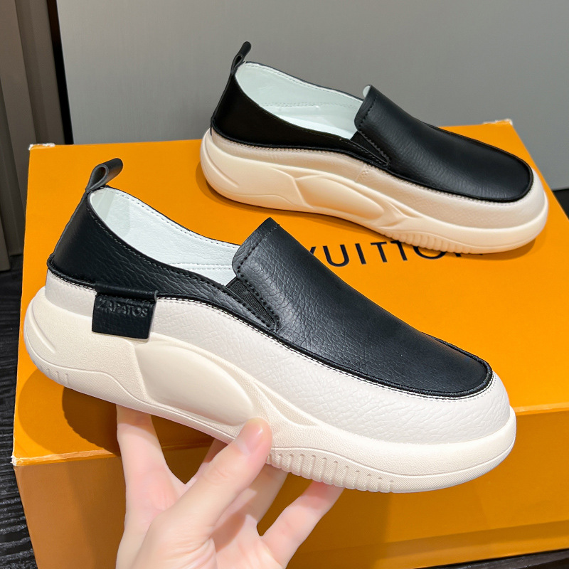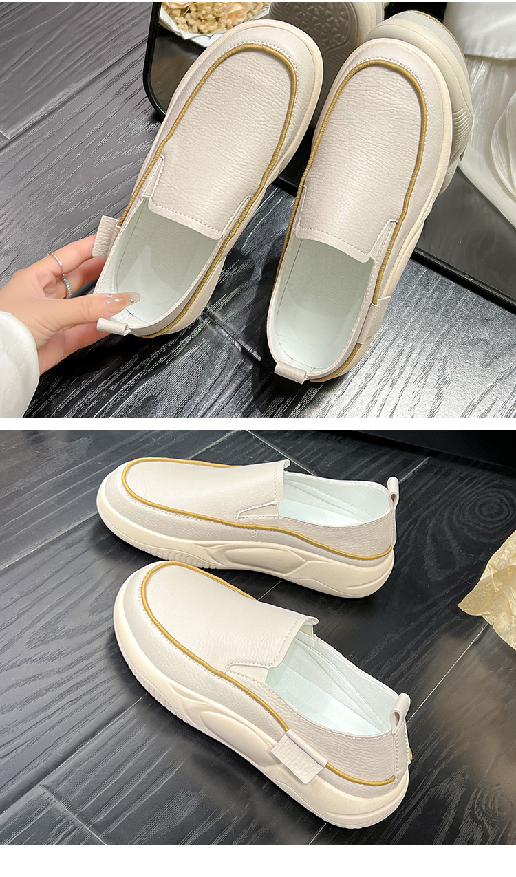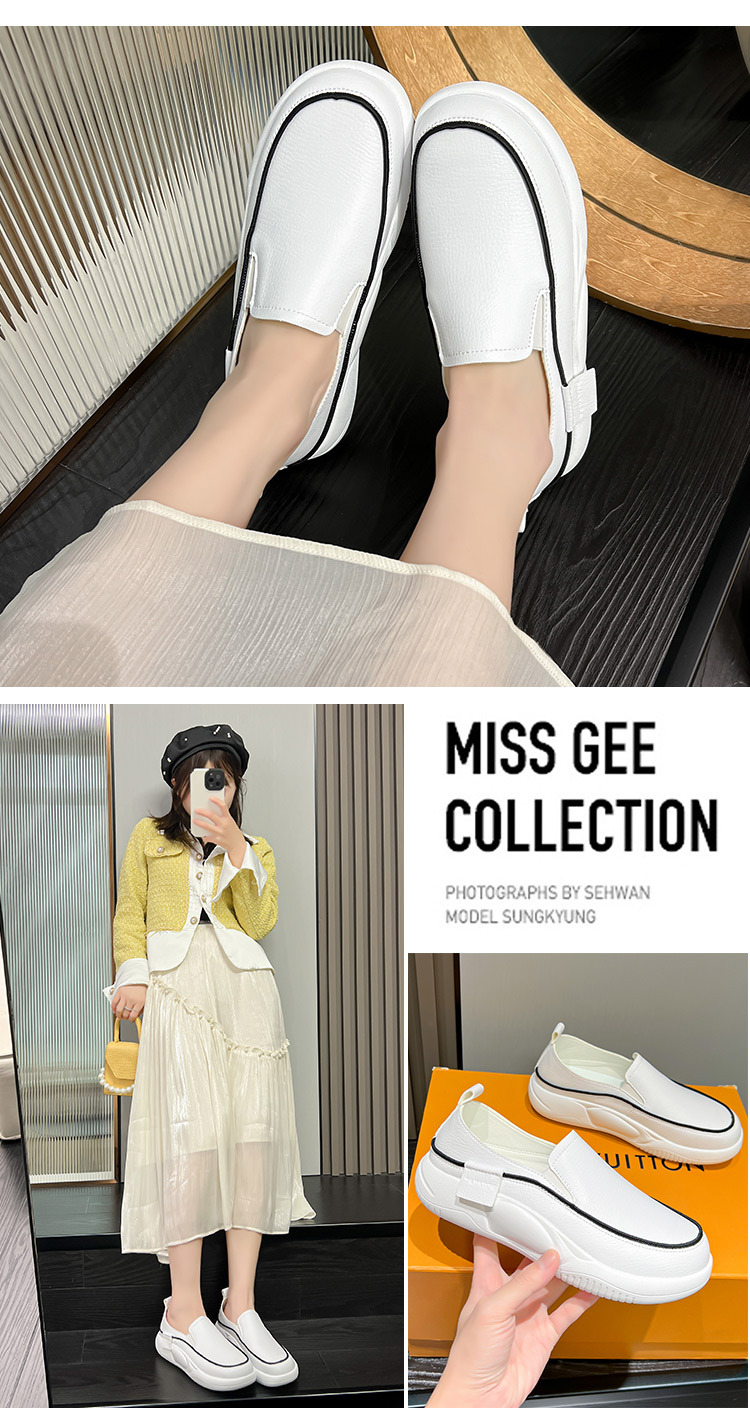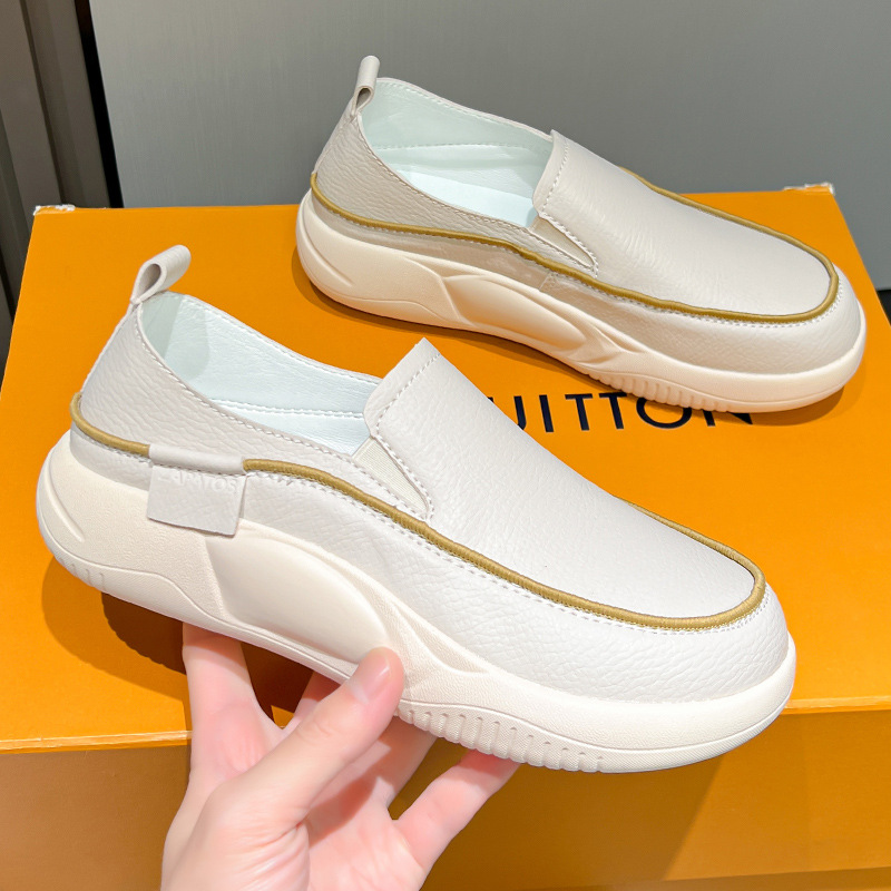 2024 봄과 가을 새로운 스포츠 캐주얼 화이트 슈즈 여성 Ins 한국식 두꺼운 가죽 올매치 싱글 레이어 슈즈 패셔너블 스니커즈스토어 가기