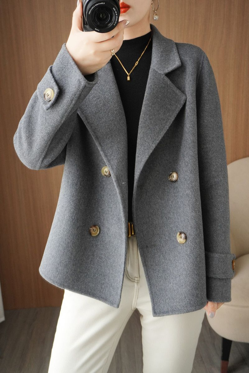 가을과 겨울 느슨한 모직 카디건 코트 짧은 세트 칼라 모직 코트 기질 패션 트렌드 플러스 사이즈 여성 의류스토어 가기