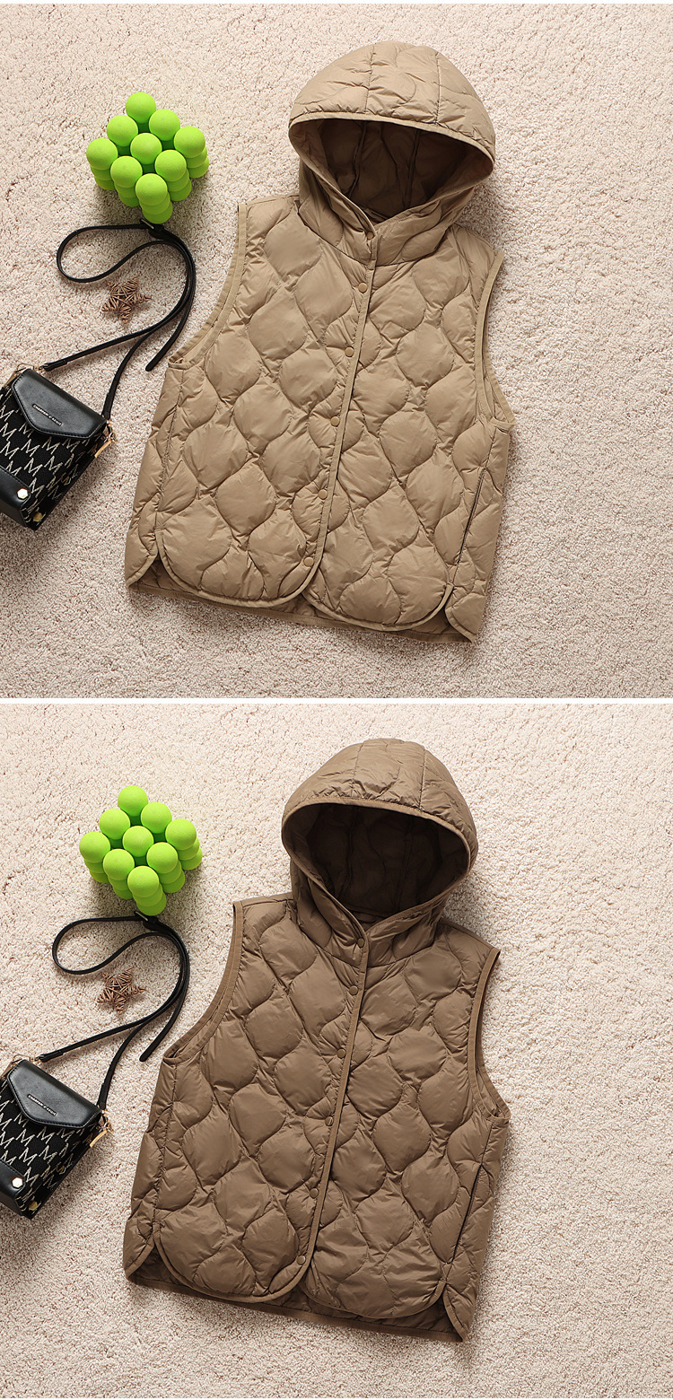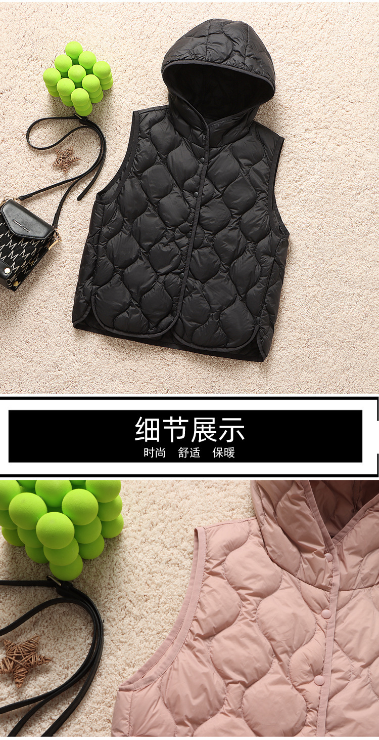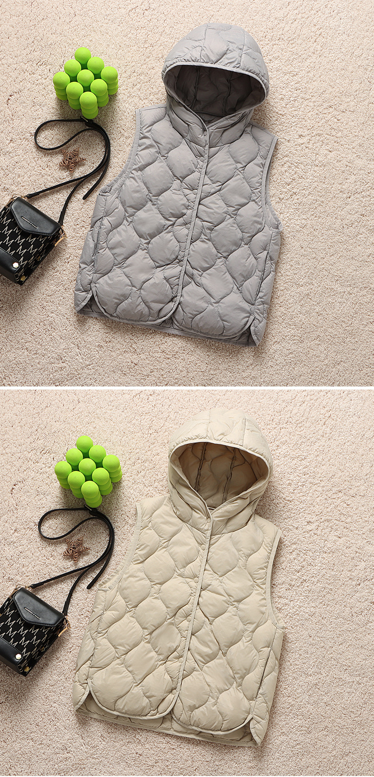 후드 다운 조끼 다이아몬드 격자 무늬 조끼 재킷 여성 가을 및 겨울 새로운 경량 기지 화이트 덕 다운 재킷
