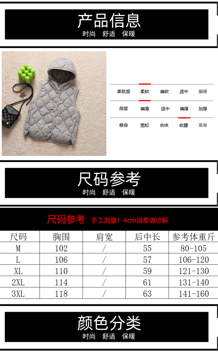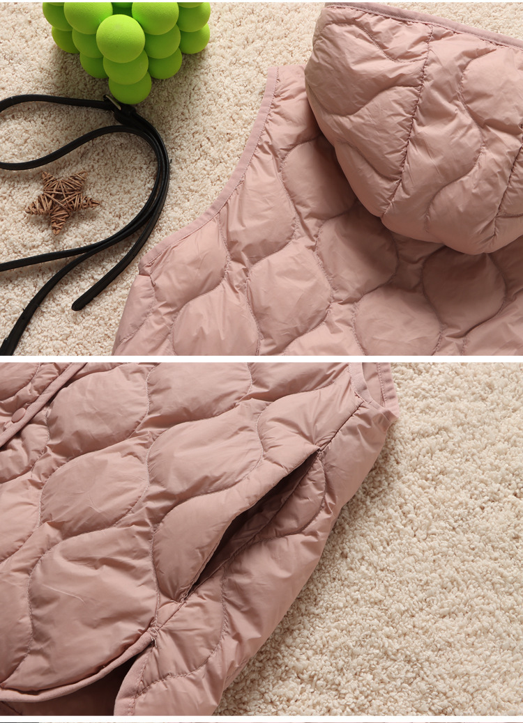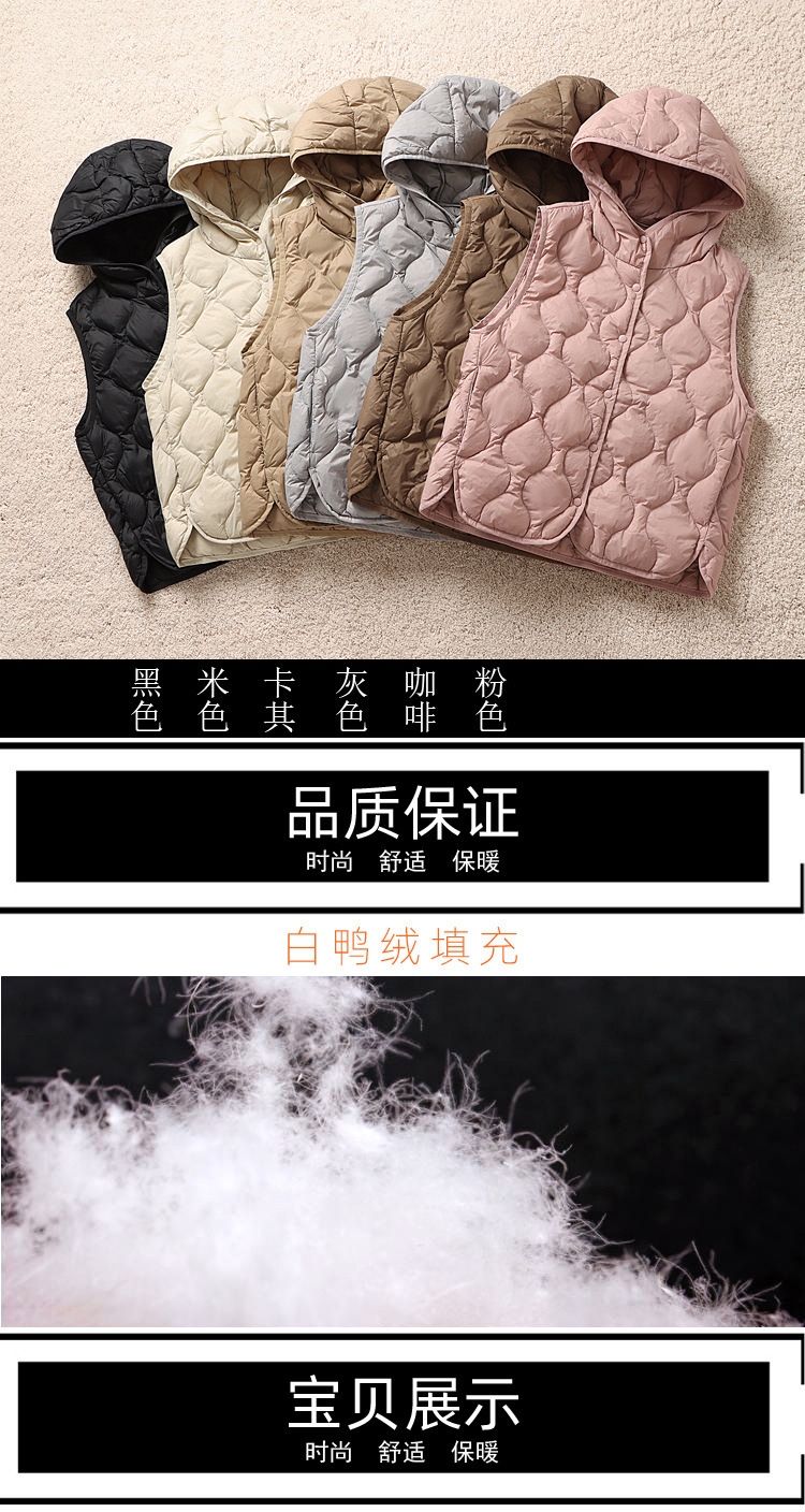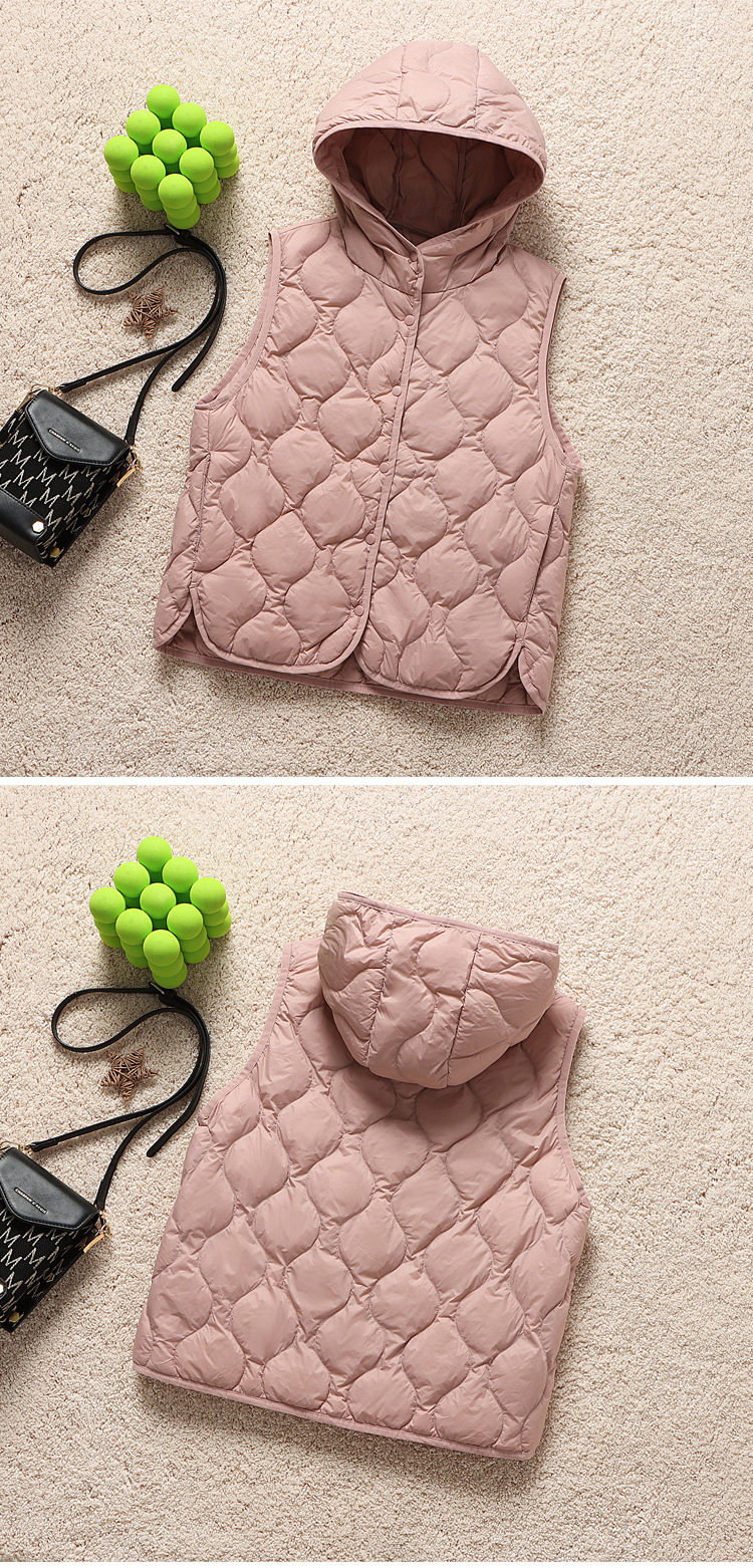 후드 다운 조끼 다이아몬드 격자 무늬 조끼 재킷 여성 가을 및 겨울 새로운 경량 기지 화이트 덕 다운 재킷