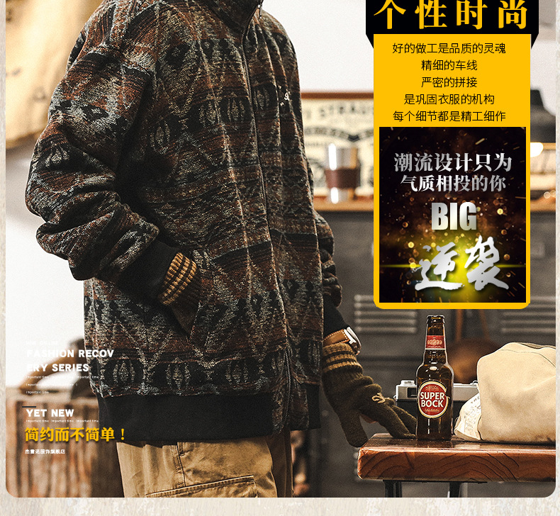 미국 복고풍 560g 무거운 울 스웨터 남자 겨울 패딩 스웨터 가을과 겨울 따뜻한 카디건 스웨터 코트스토어 가기
