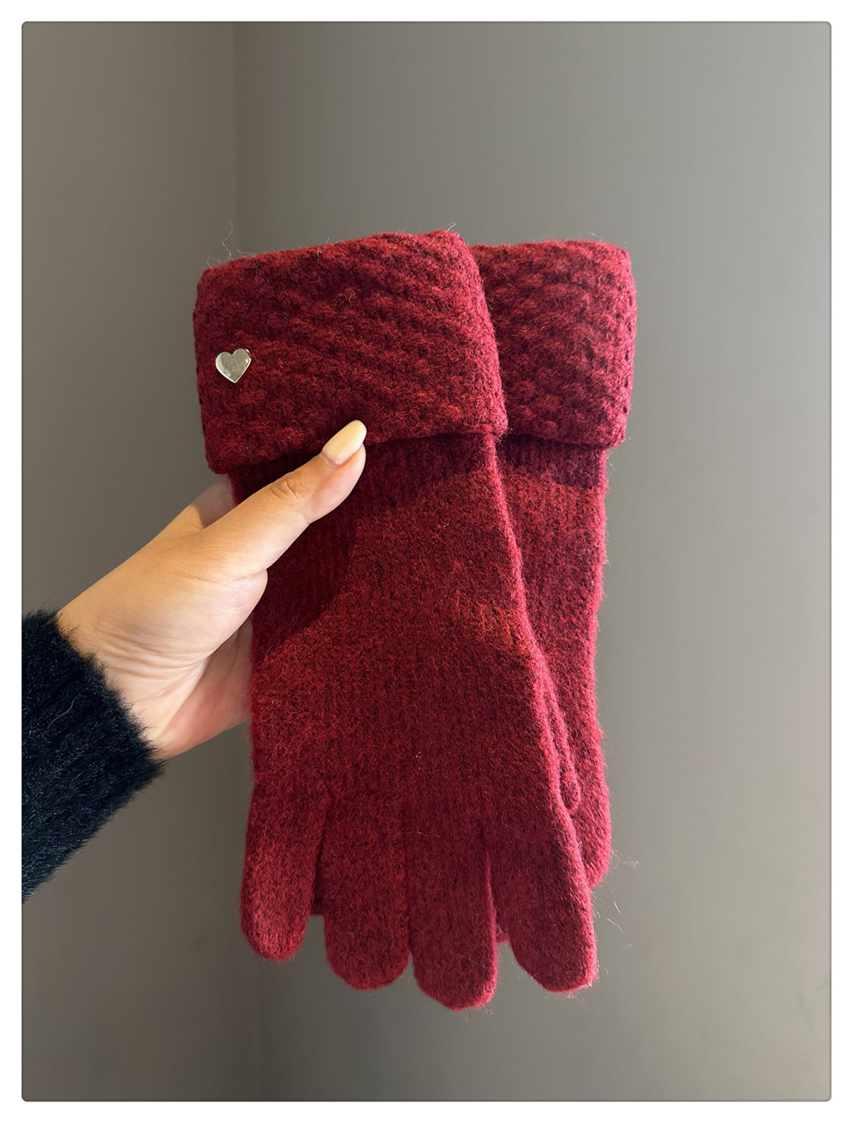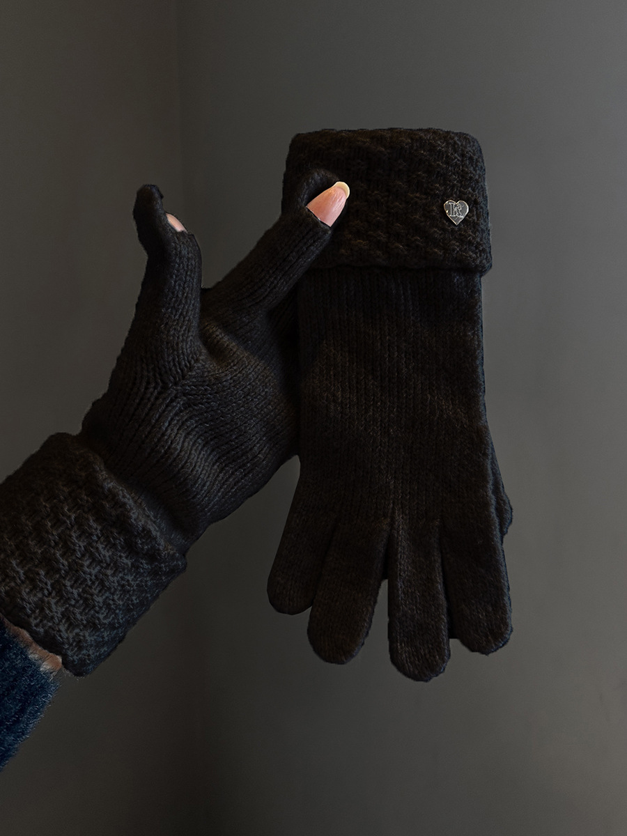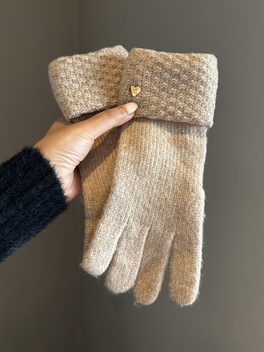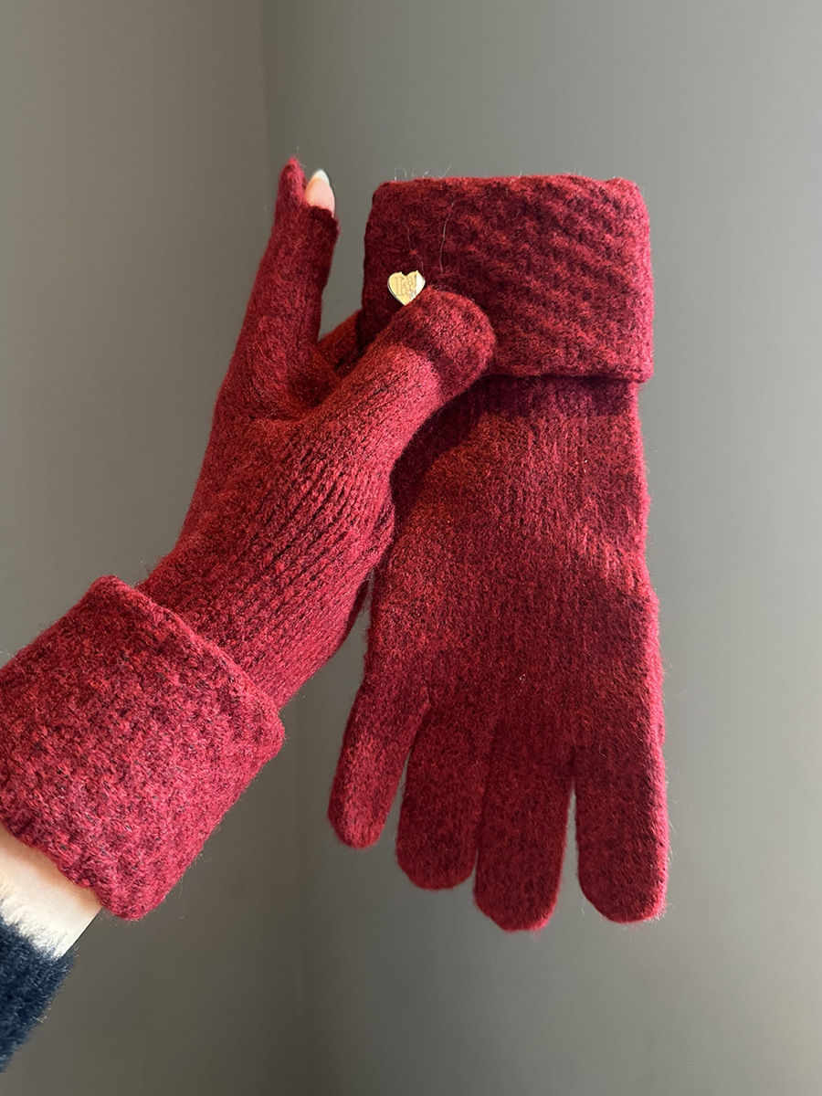 2024冬季新款纯色爱心针织手套女防风保暖防寒可触屏毛线分指手套
