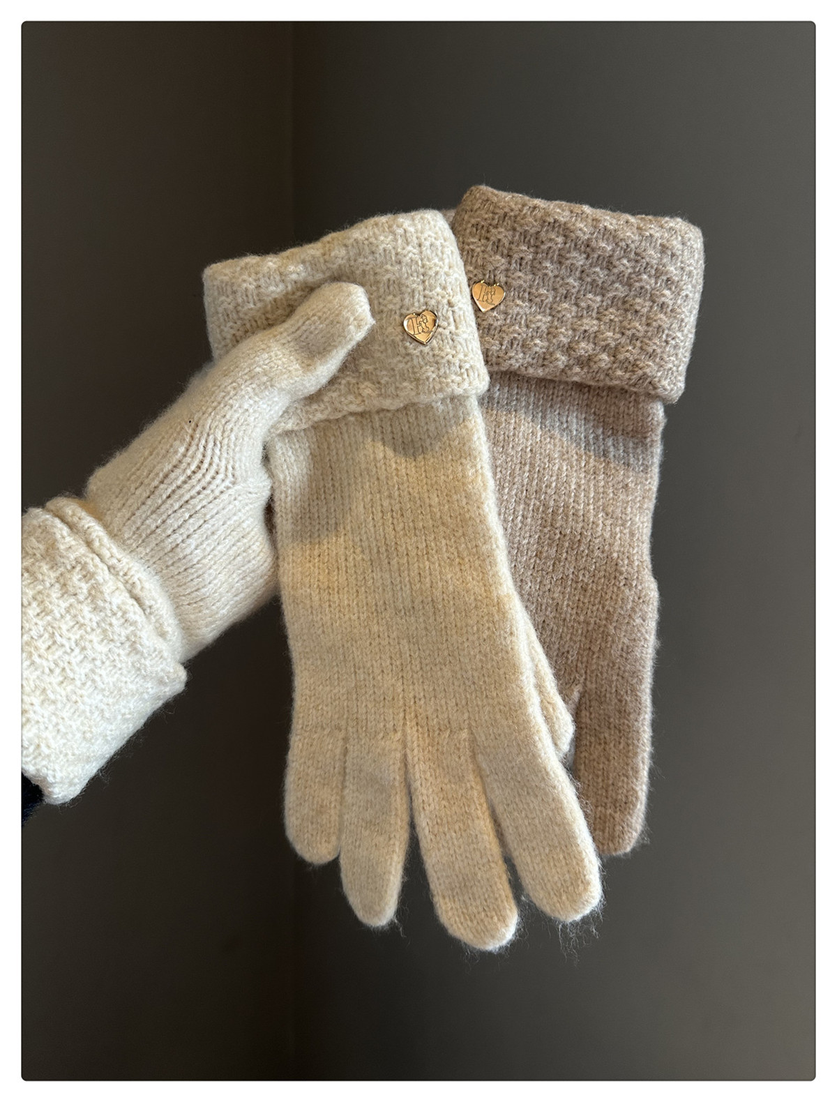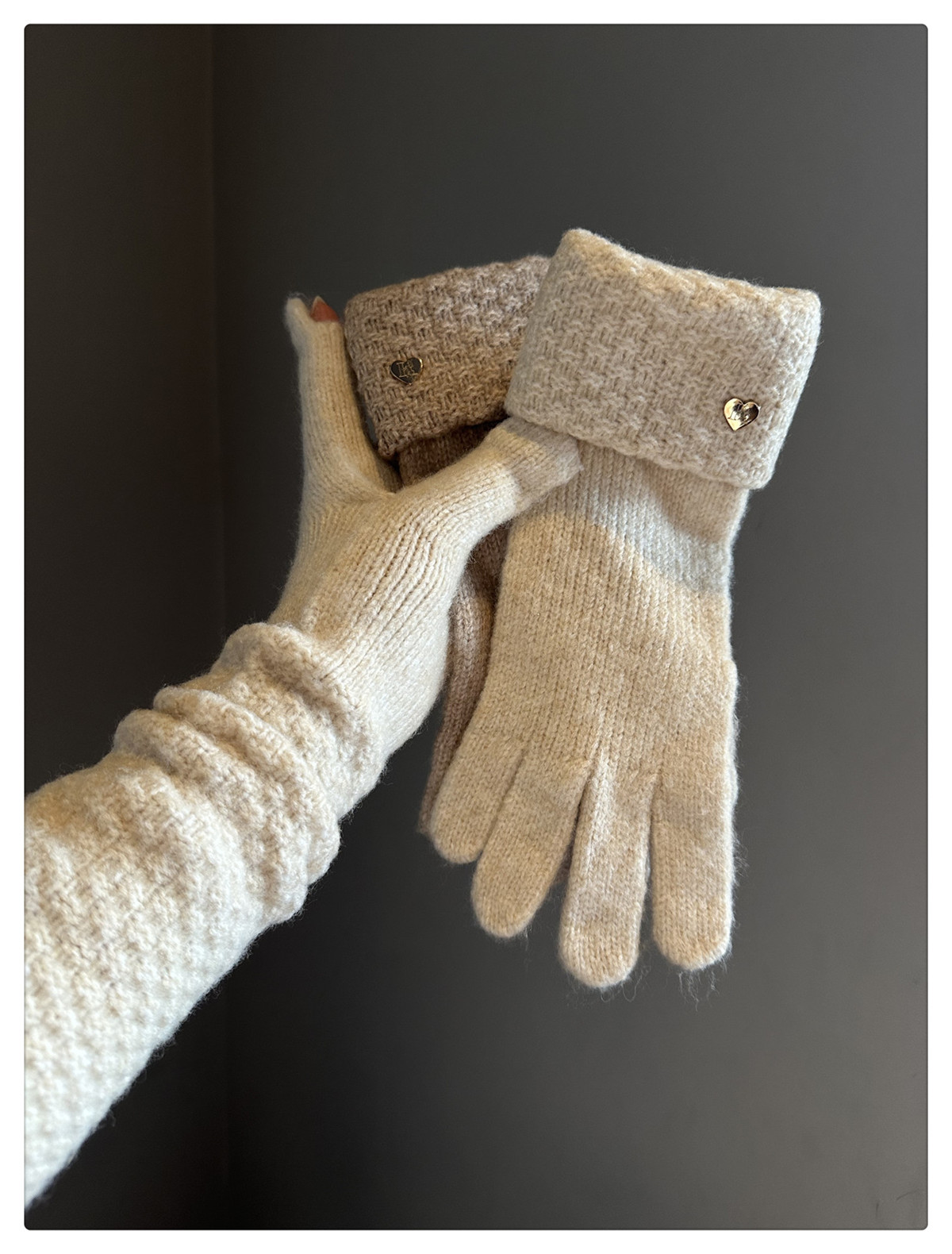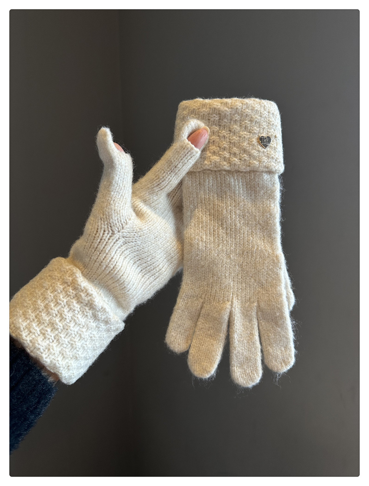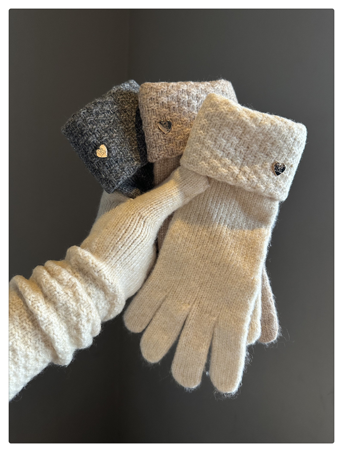 2024冬季新款纯色爱心针织手套女防风保暖防寒可触屏毛线分指手套