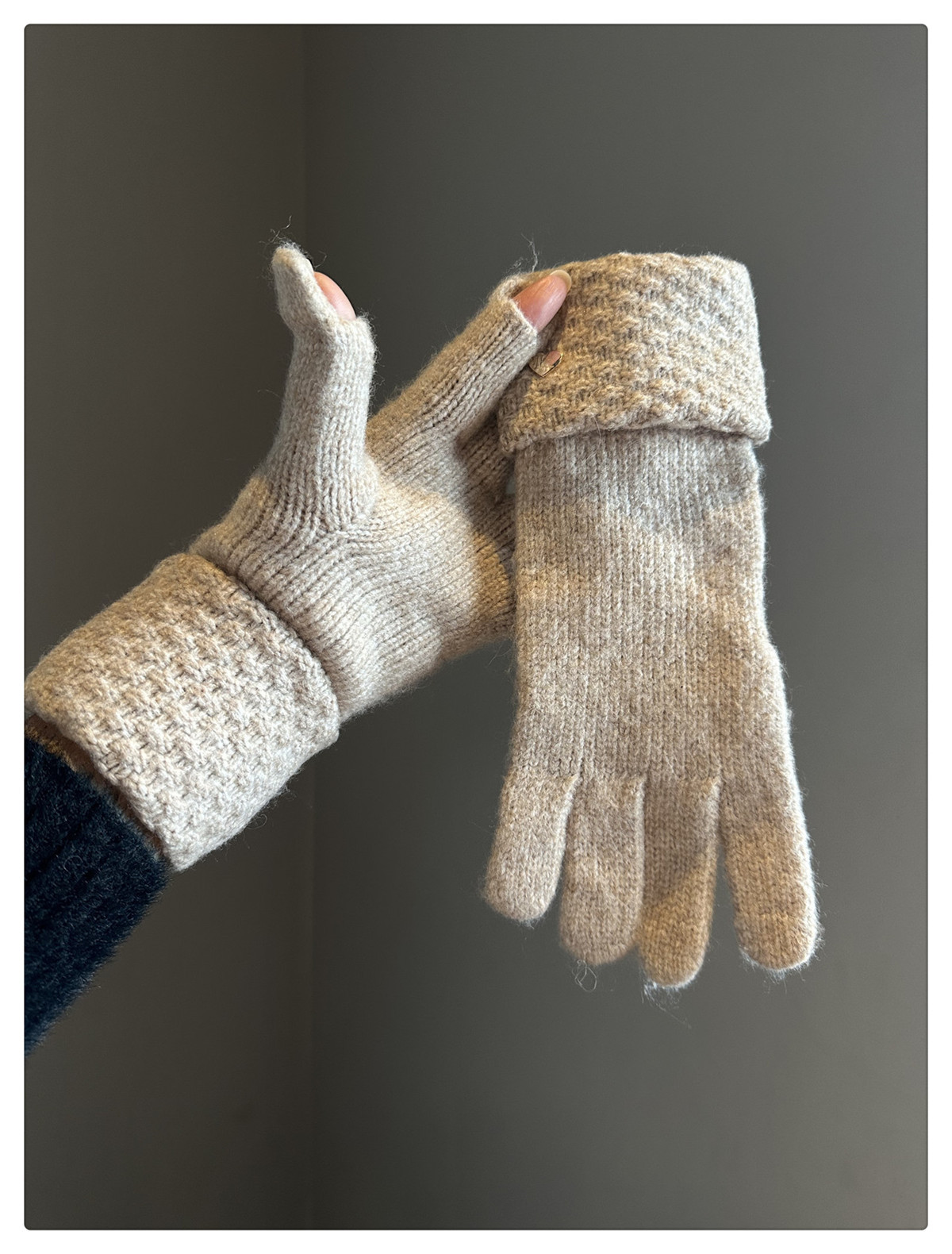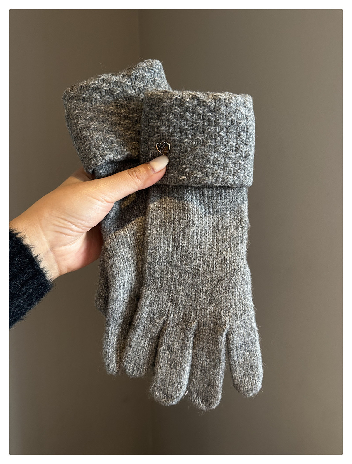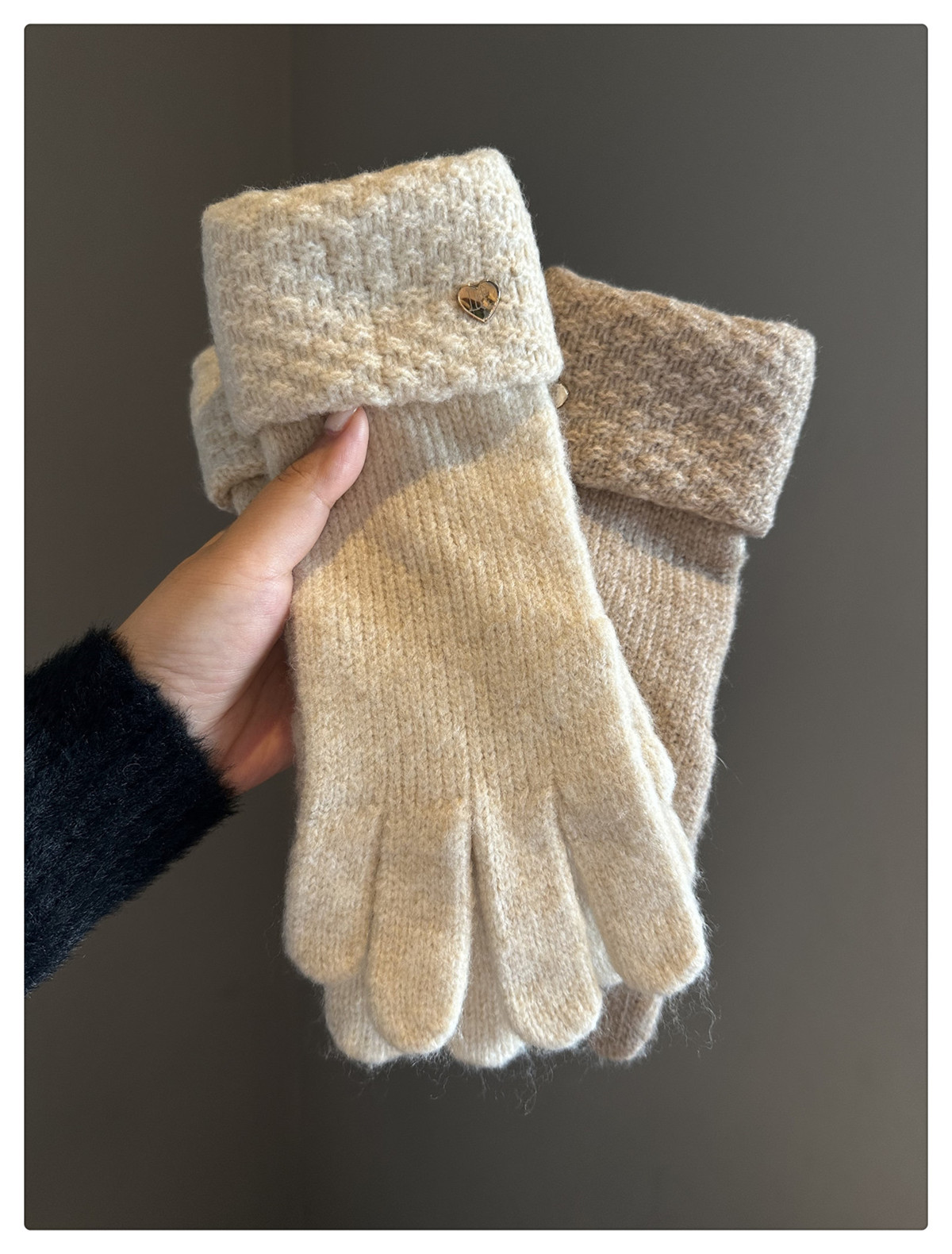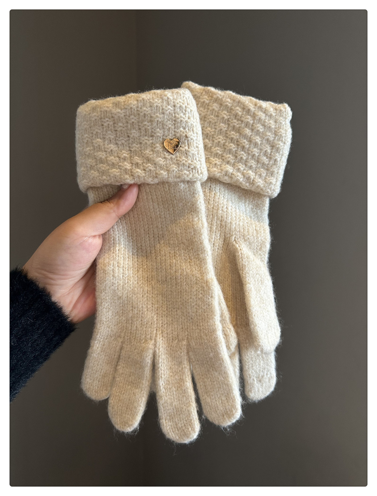 2024冬季新款纯色爱心针织手套女防风保暖防寒可触屏毛线分指手套