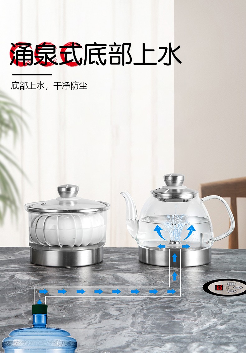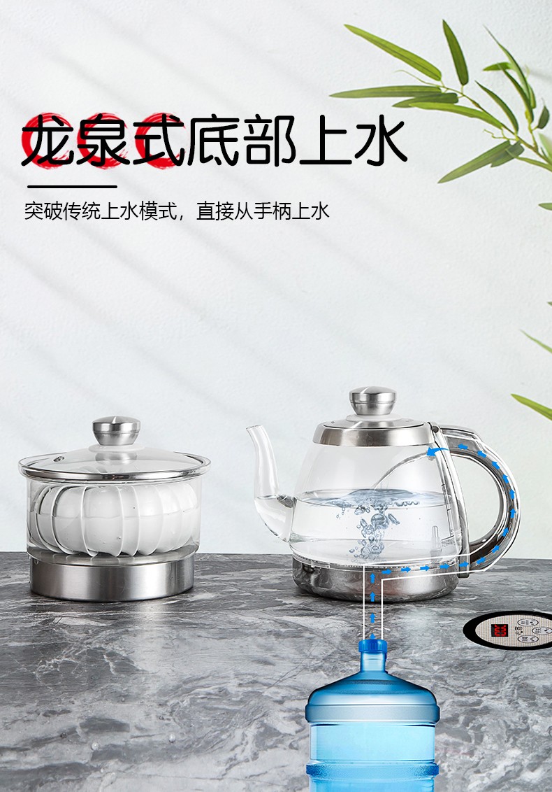 완전 자동 물 및 전기 온수 주전자 티 테이블 숨겨진 티 테이블 통합 지능형 차 만들기 바위 접시 유리 주전자스토어 가기