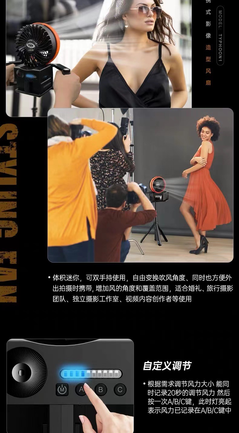 휴대용 비디오 모델링 팬 무대 특수 효과 무한 조정 바람 강한 날카로운 사진 휴대용 팬 소품
