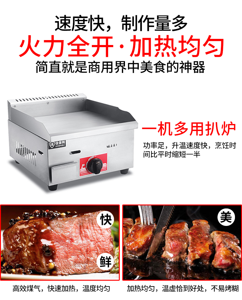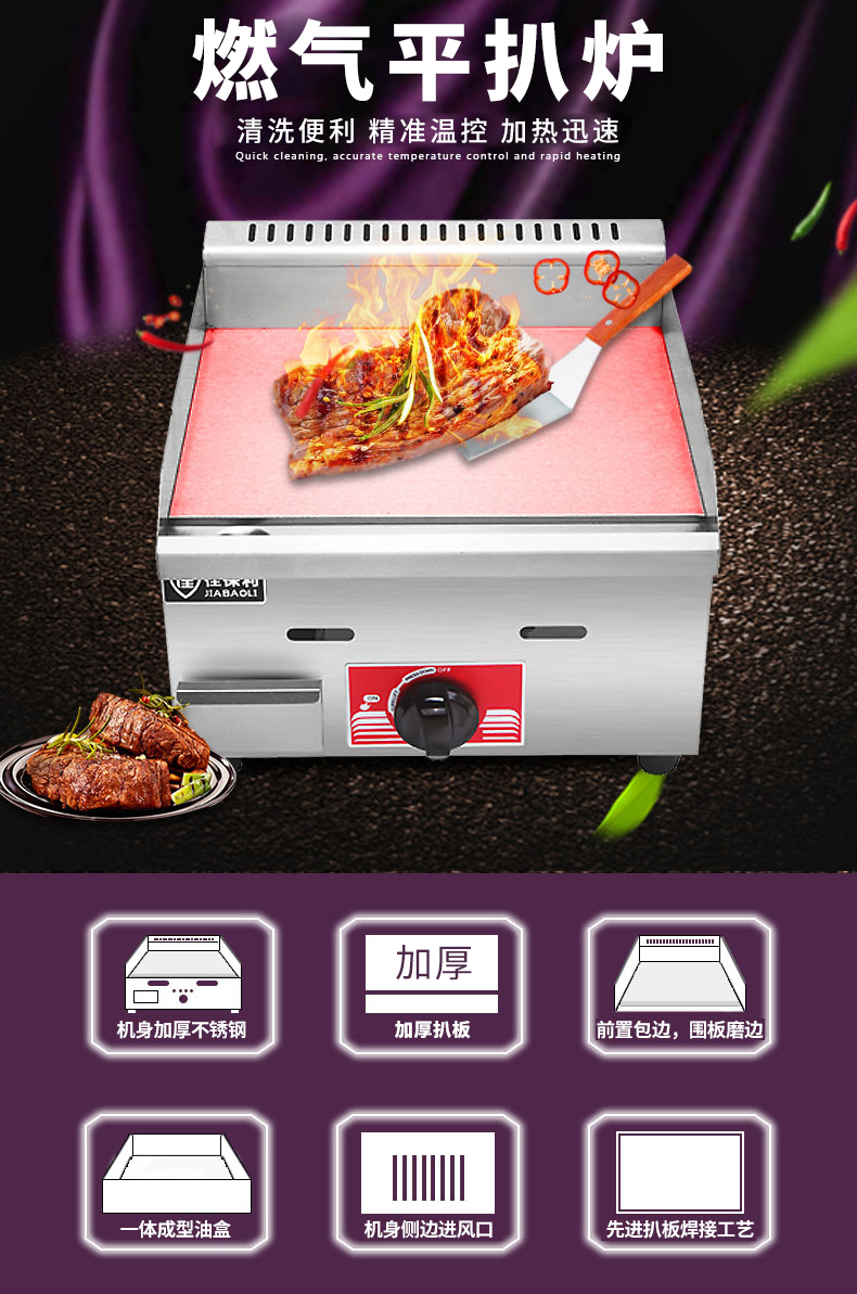 Jia Baoli 핸드 헬드 케이크 기계 소형 가스 전기 스테이크 스토브 상업용 가스 철판 구이 장비 국수 튀김 스테이크 마구간