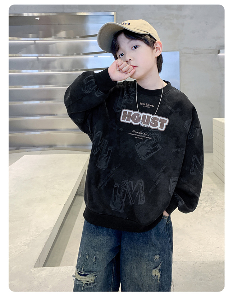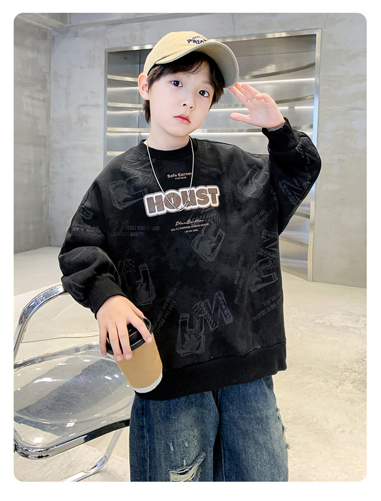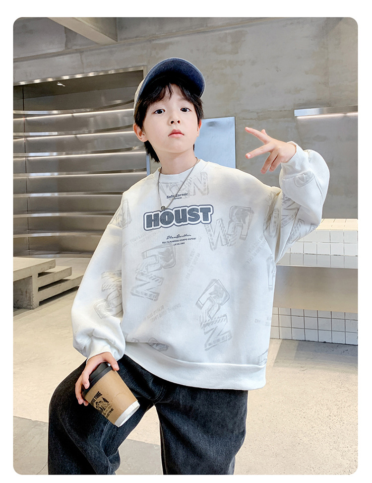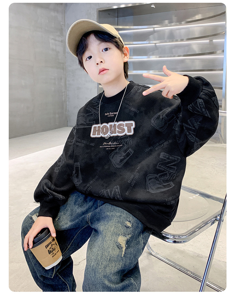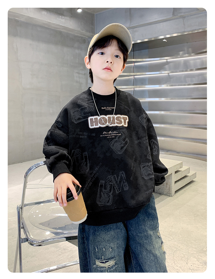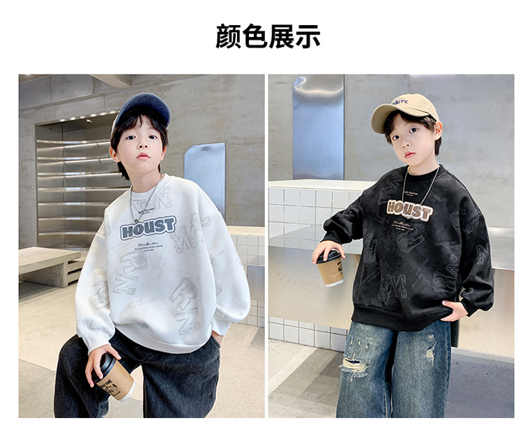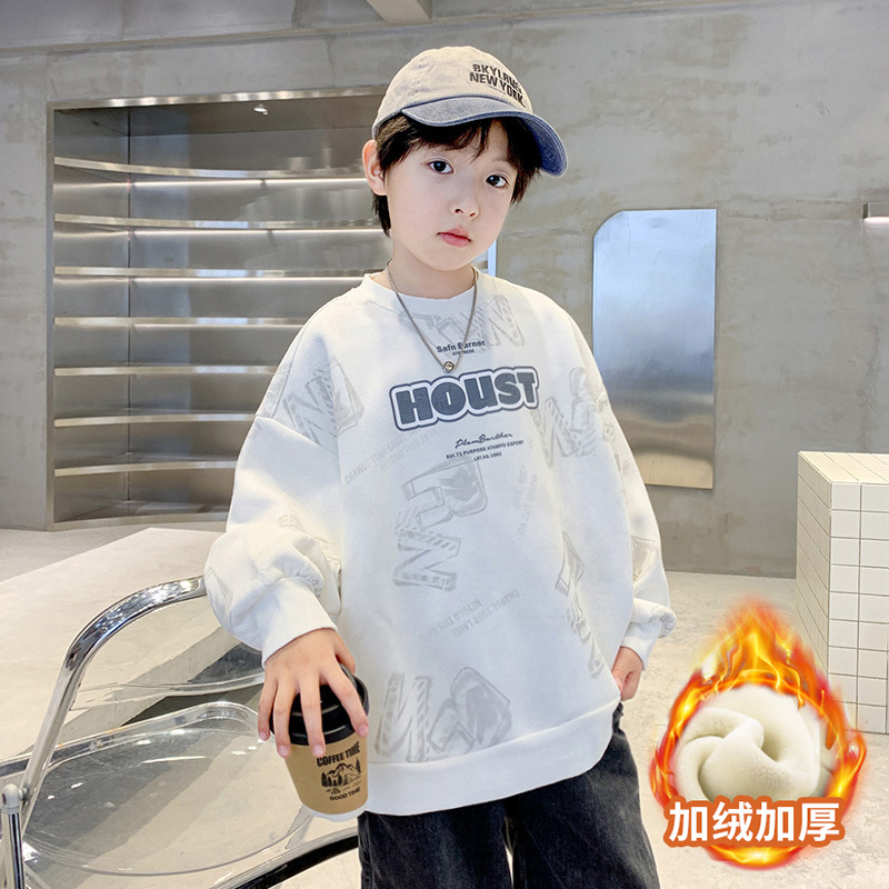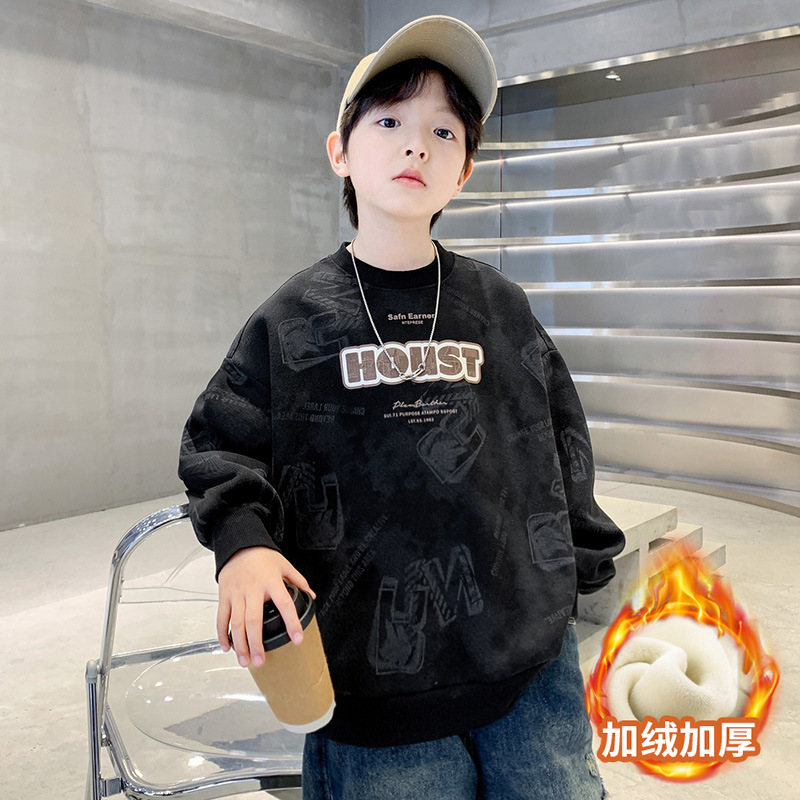 아동복 소년 크루 넥 편지 기모 땀 2024 새로운 스타일 가을과 겨울 스타일 소년의 서양식 탑 봄스토어 가기