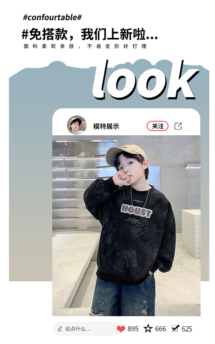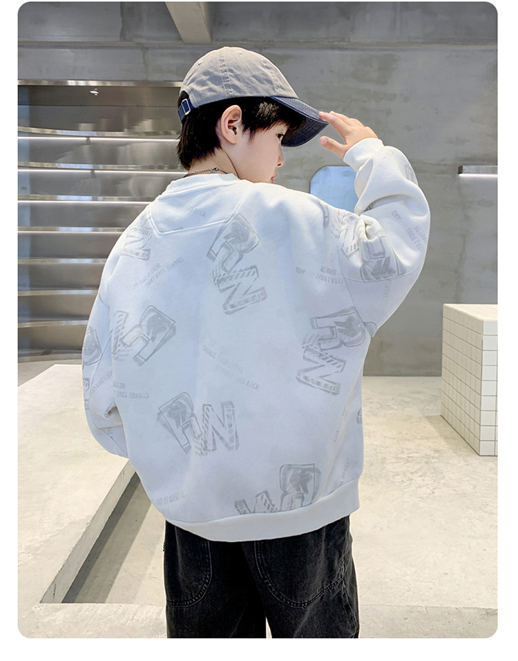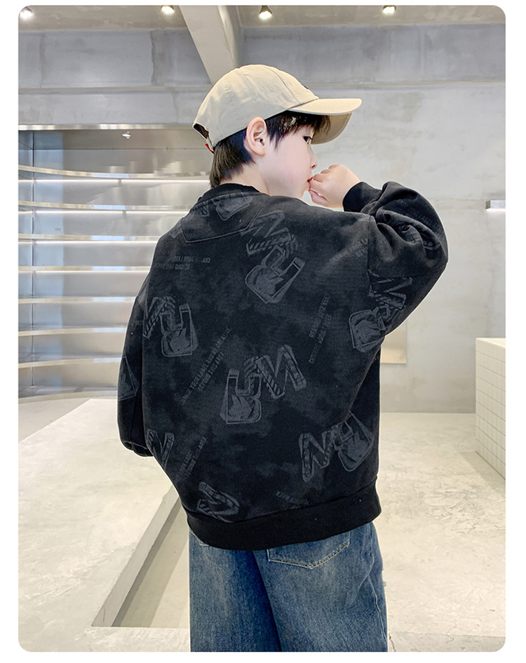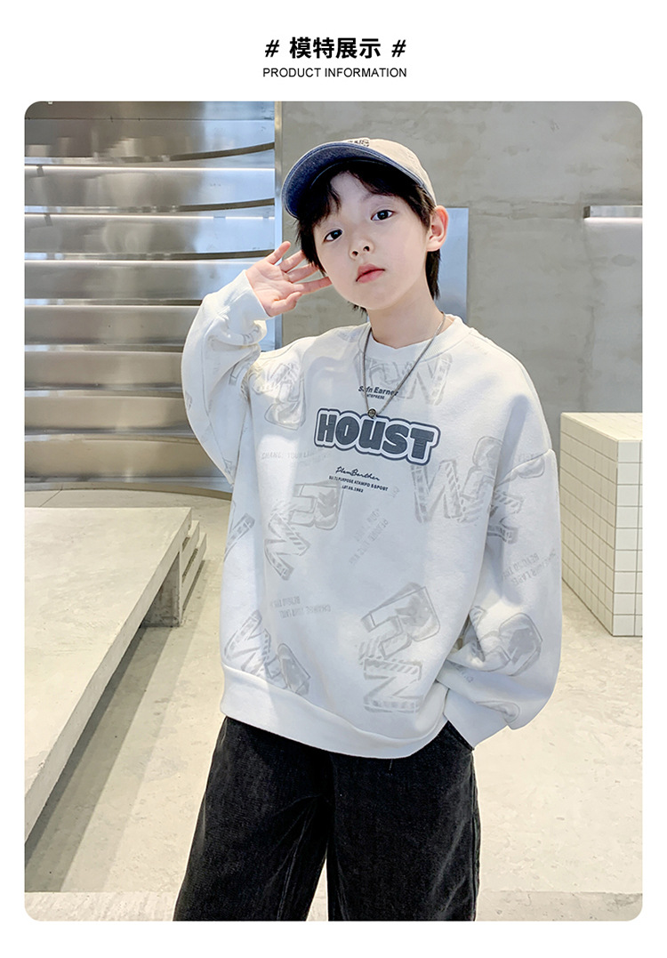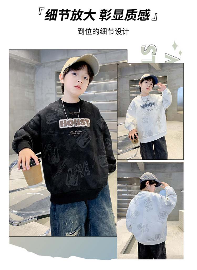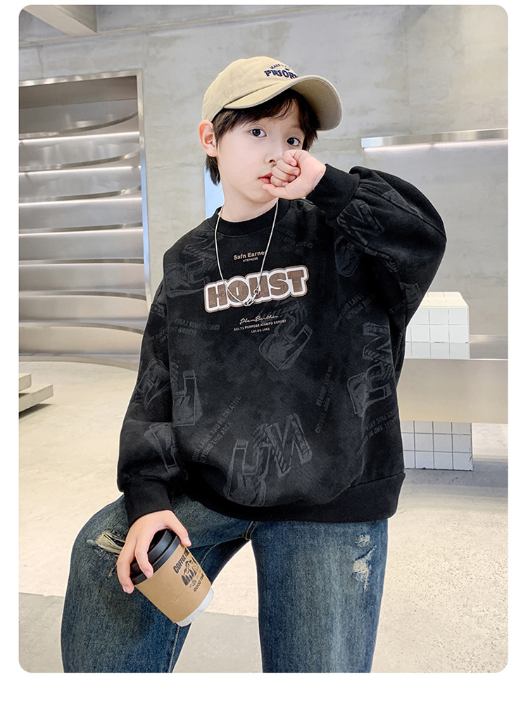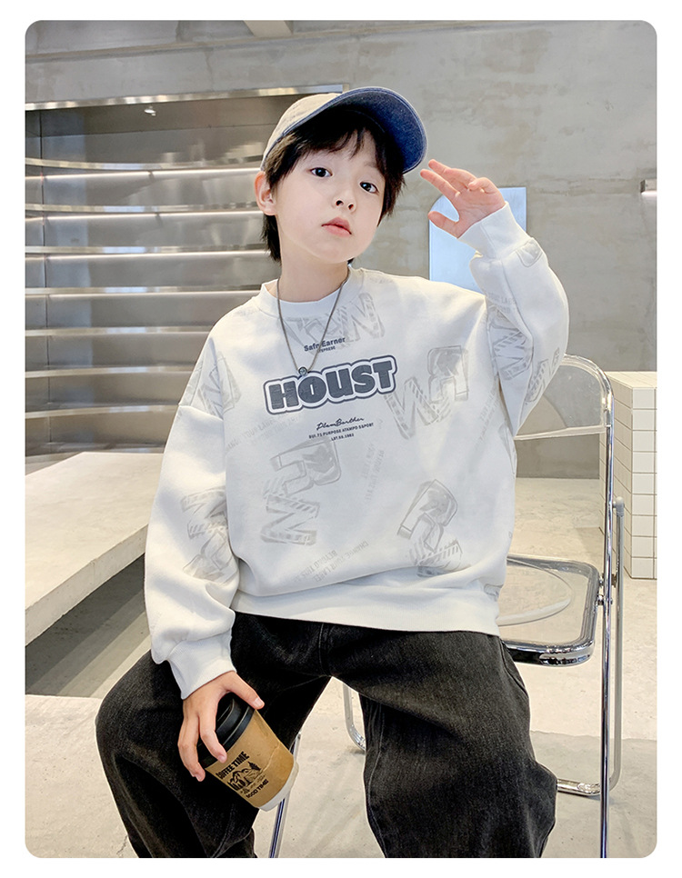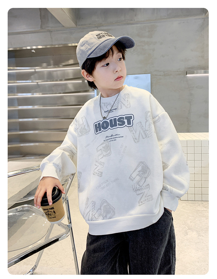 아동복 소년 크루 넥 편지 기모 땀 2024 새로운 스타일 가을과 겨울 스타일 소년의 서양식 탑 봄스토어 가기