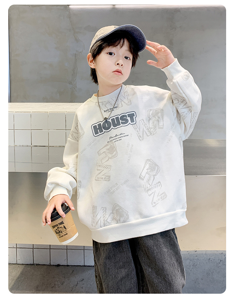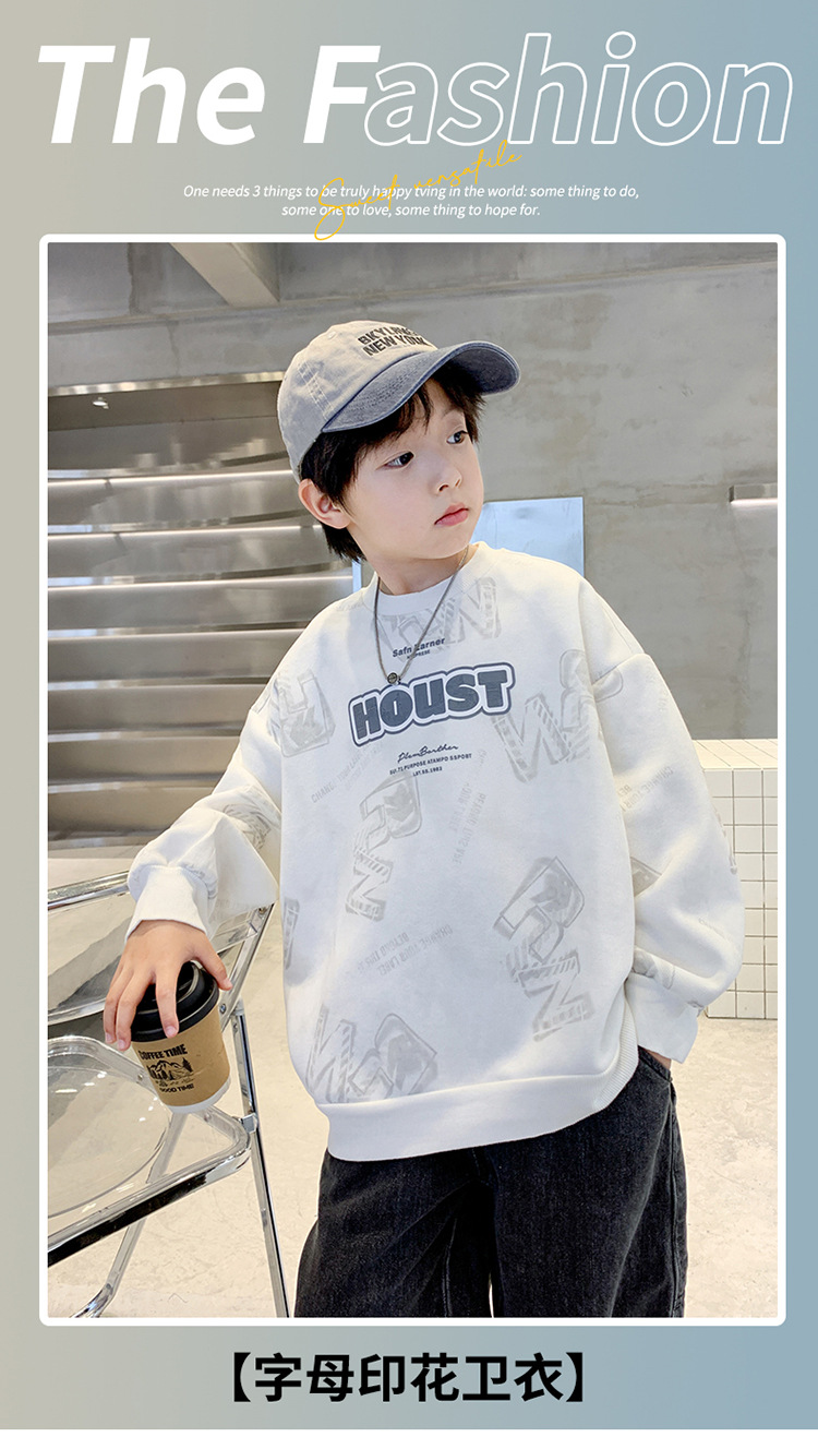 아동복 소년 크루 넥 편지 기모 땀 2024 새로운 스타일 가을과 겨울 스타일 소년의 서양식 탑 봄