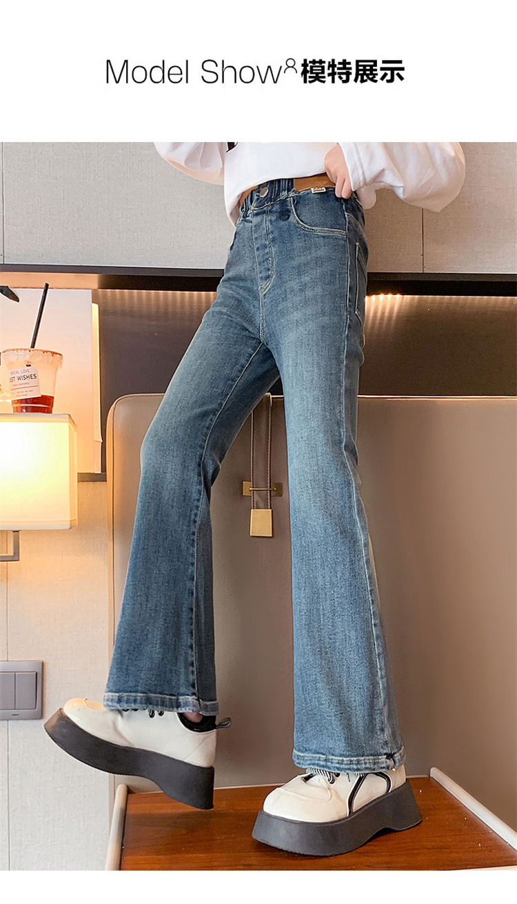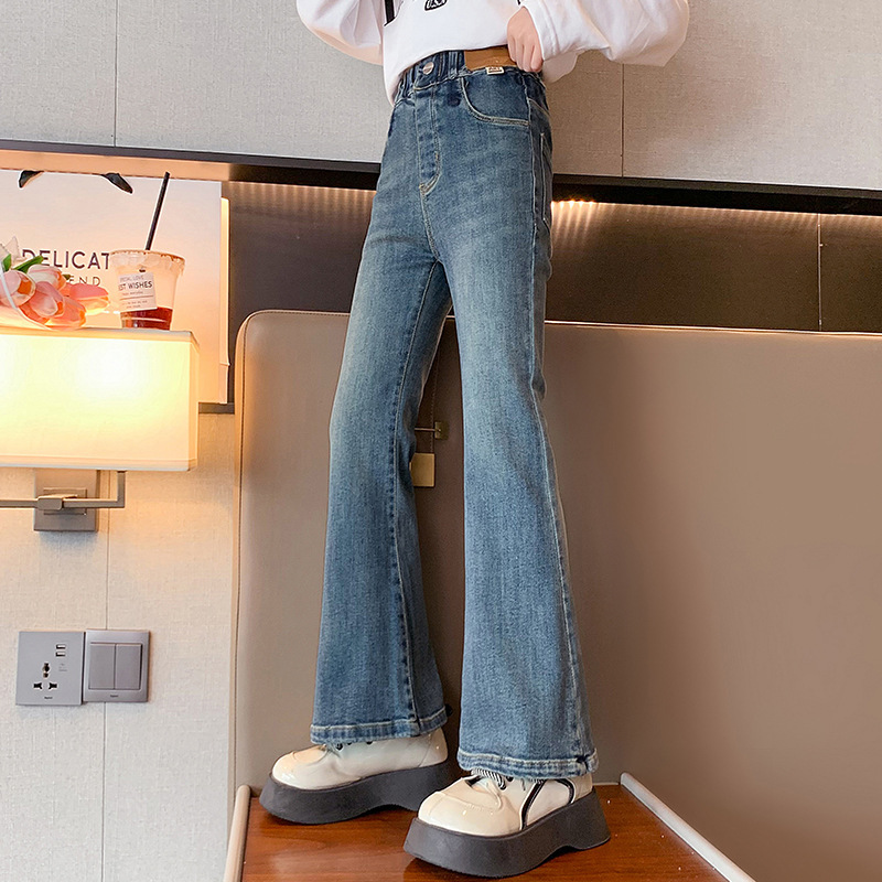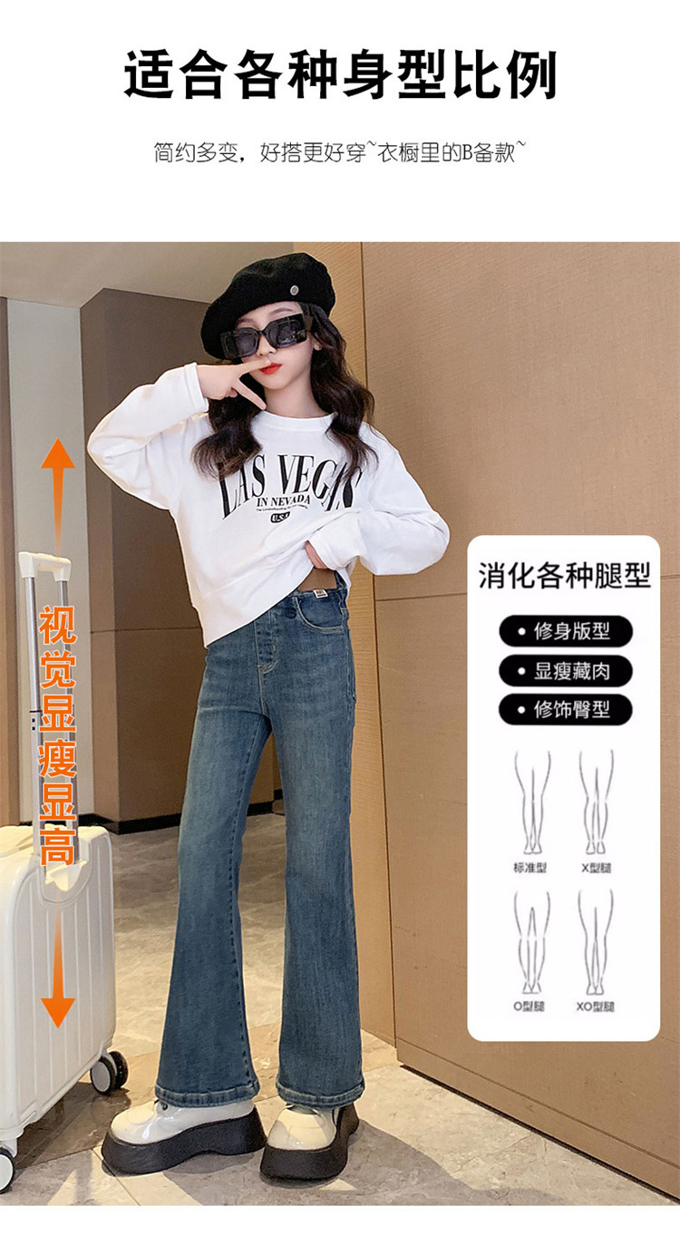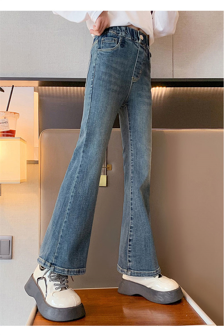 여아 나팔바지 가을 겨울 플러스 벨벳 2025 봄 가을 새로운 스타일 올인원 벨벳 아동 청바지 두꺼운 마이크로 플레어 바지스토어 가기