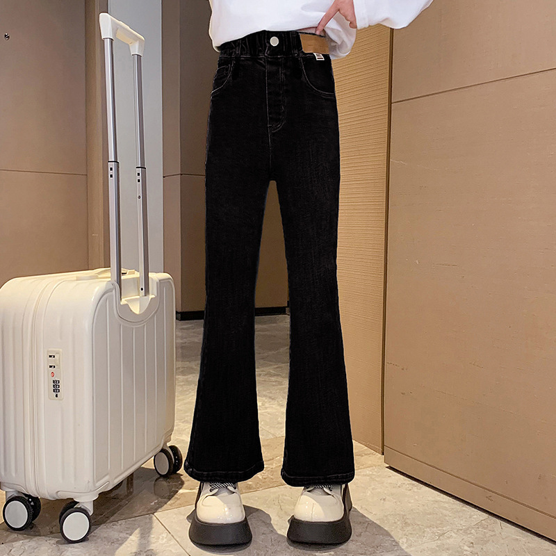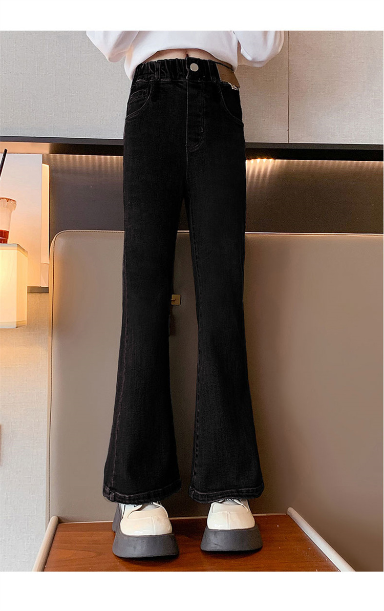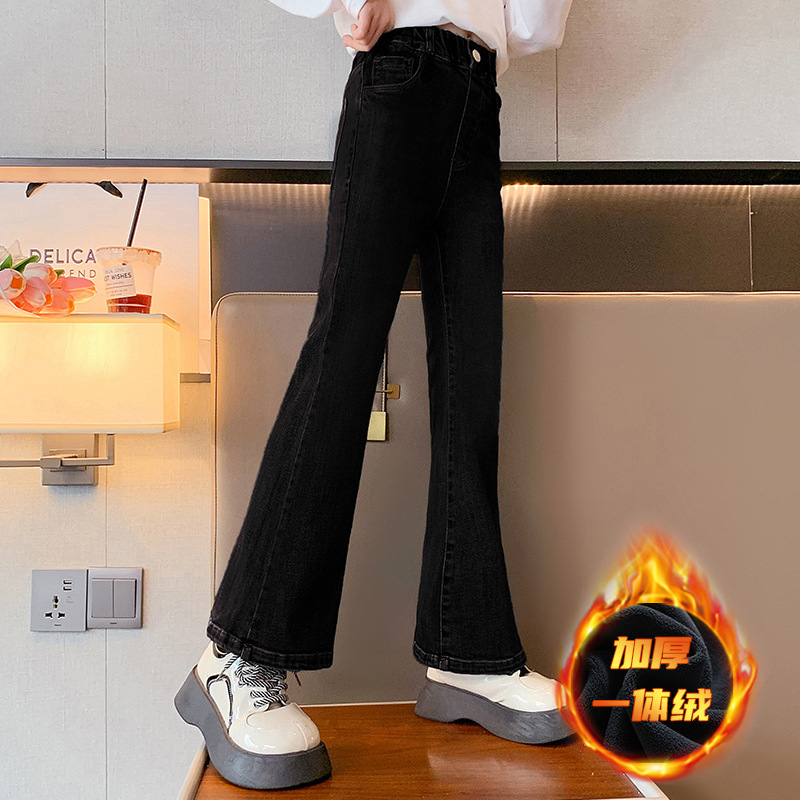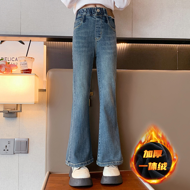 여아 나팔바지 가을 겨울 플러스 벨벳 2025 봄 가을 새로운 스타일 올인원 벨벳 아동 청바지 두꺼운 마이크로 플레어 바지