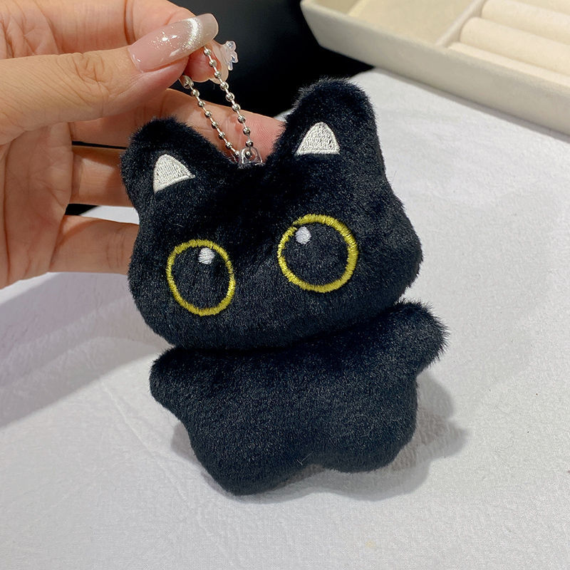 새로운 손으로 만든 큰 눈 검은 고양이 봉제 인형 펜던트 귀여운 고양이 검은 석탄 공 고양이 인형 가방 매달려 장식품스토어 가기