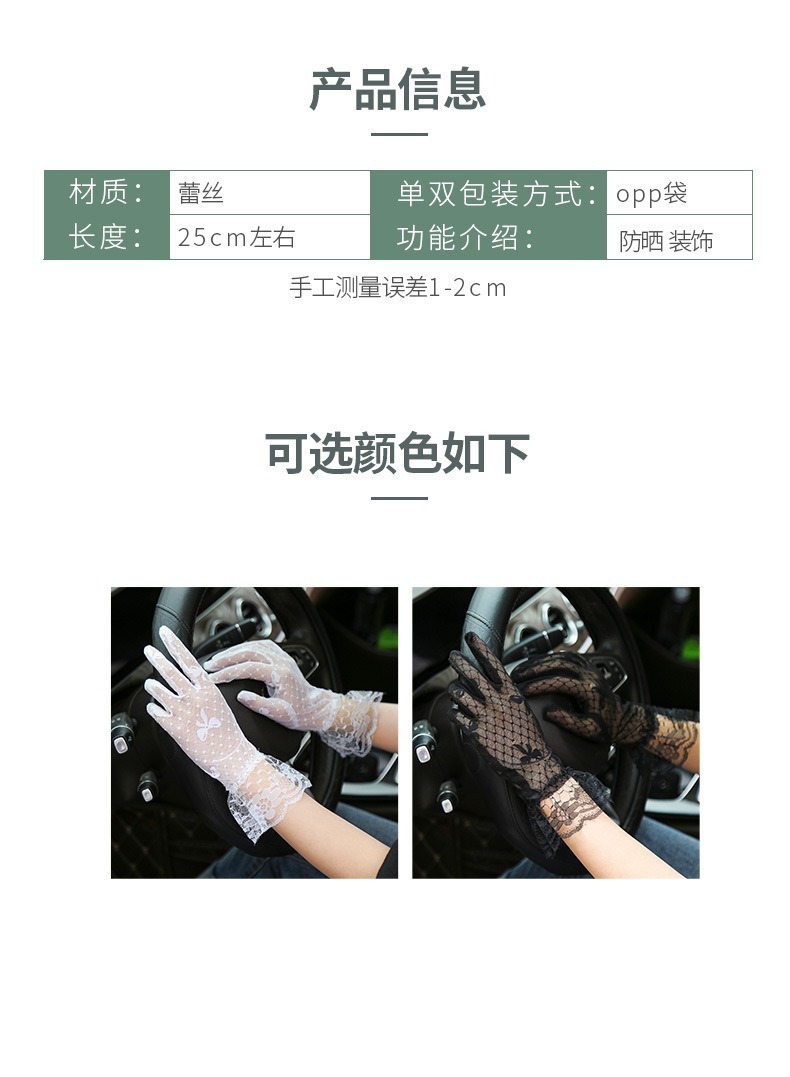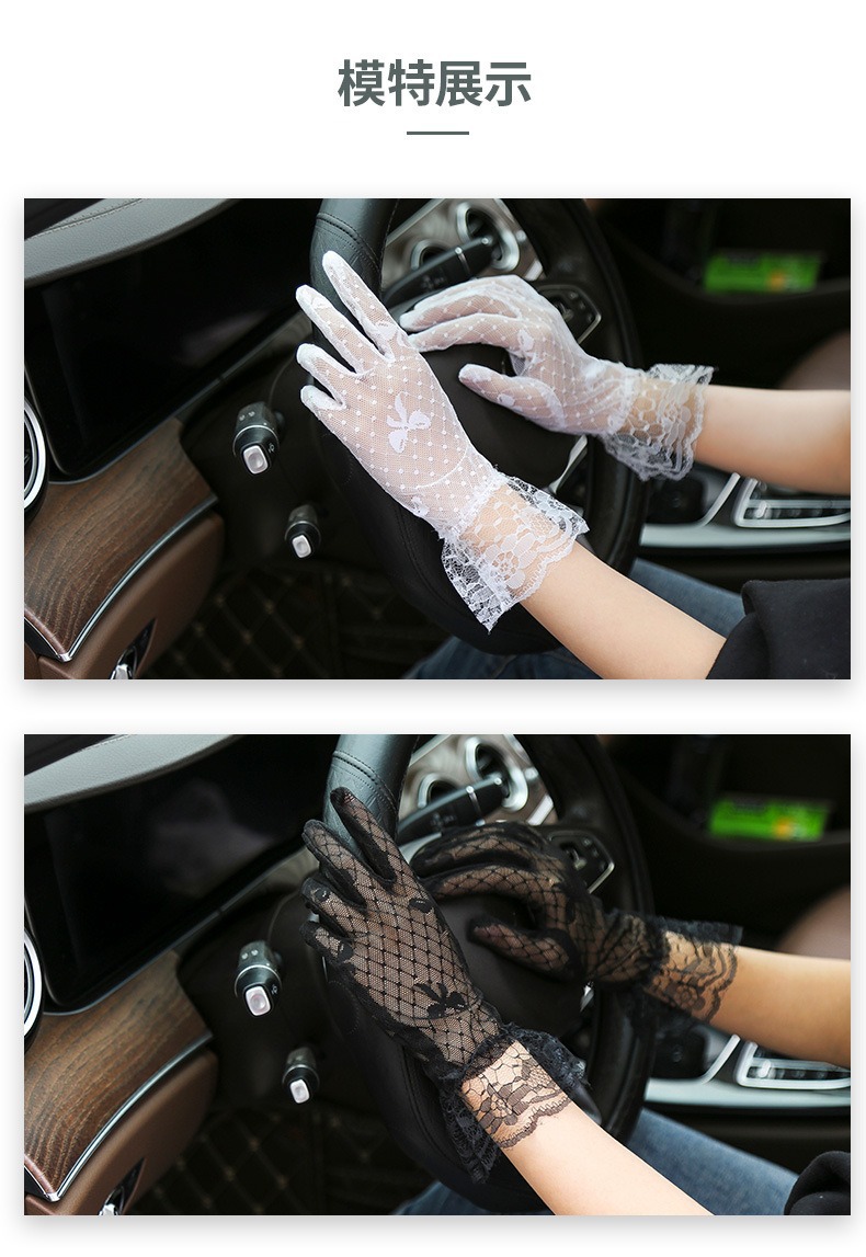 여성의 선 스크린 운전 라이드 장갑 통기성 활 블랙 레이스 메쉬 웨딩 신부 장갑