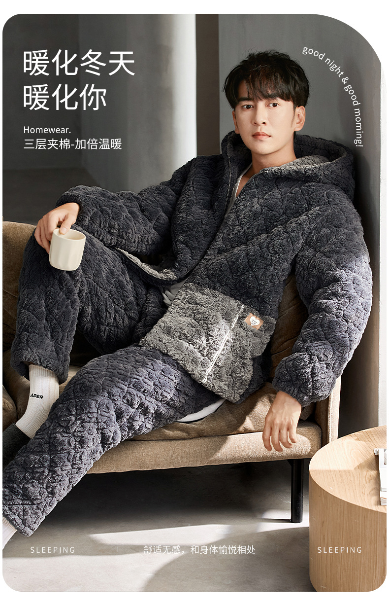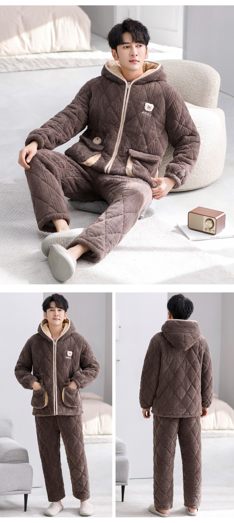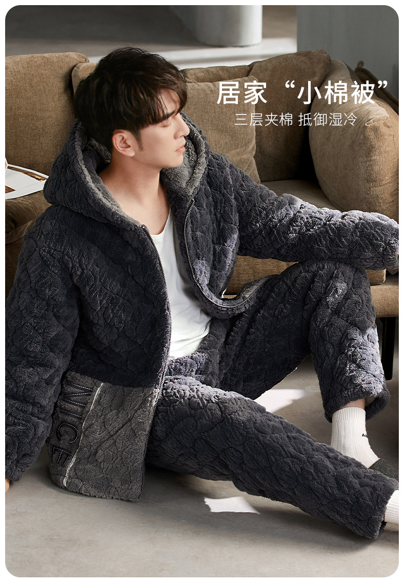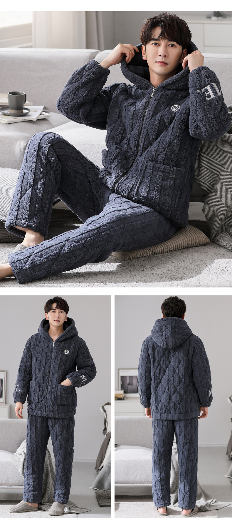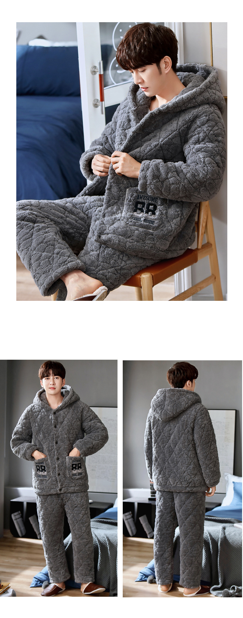 잠옷 남자 겨울 산호 양털 3 층 두꺼운 퀼트 따뜻한 겨울 플란넬 세트스토어 가기