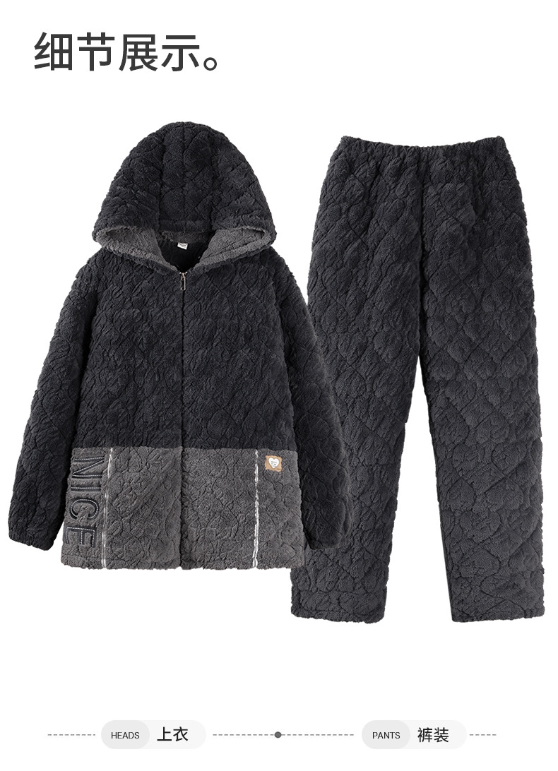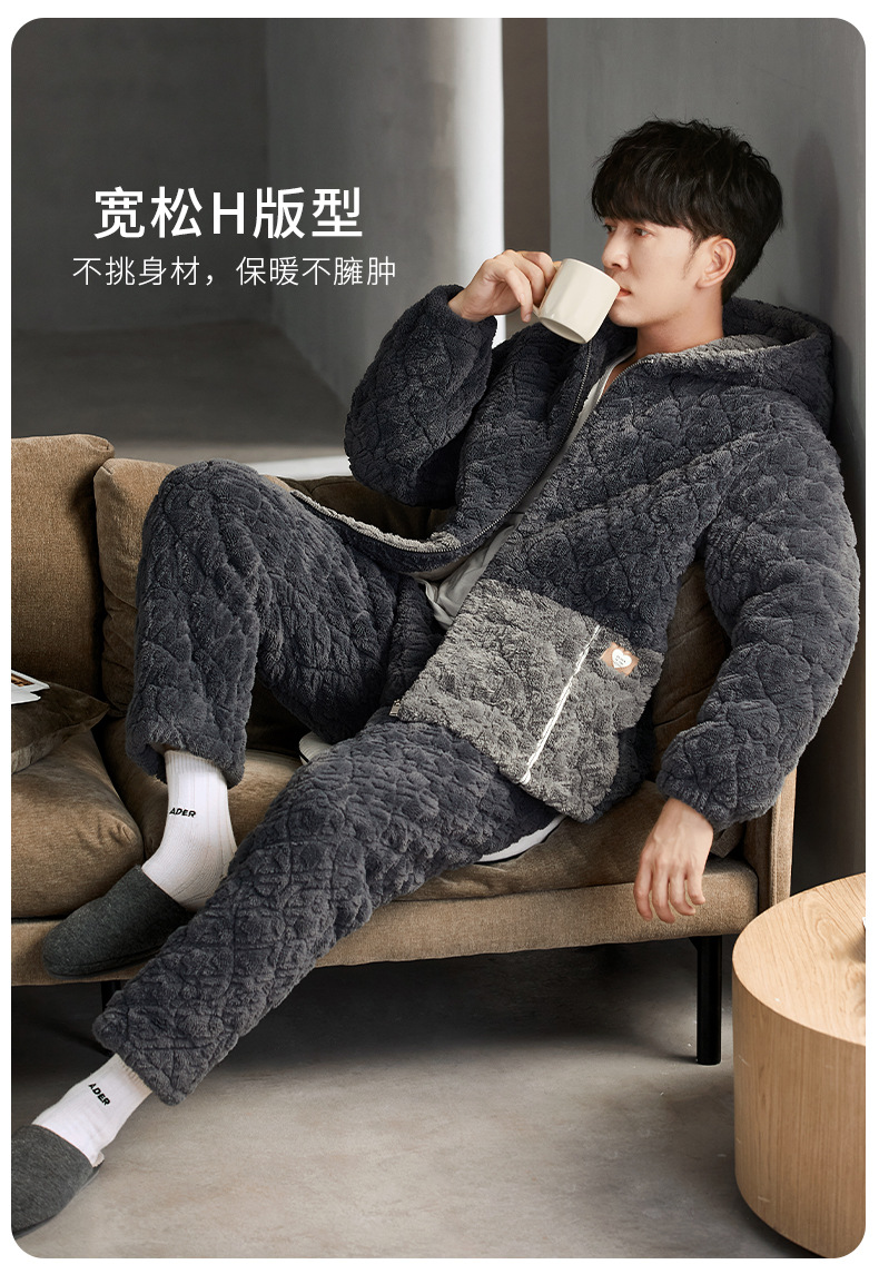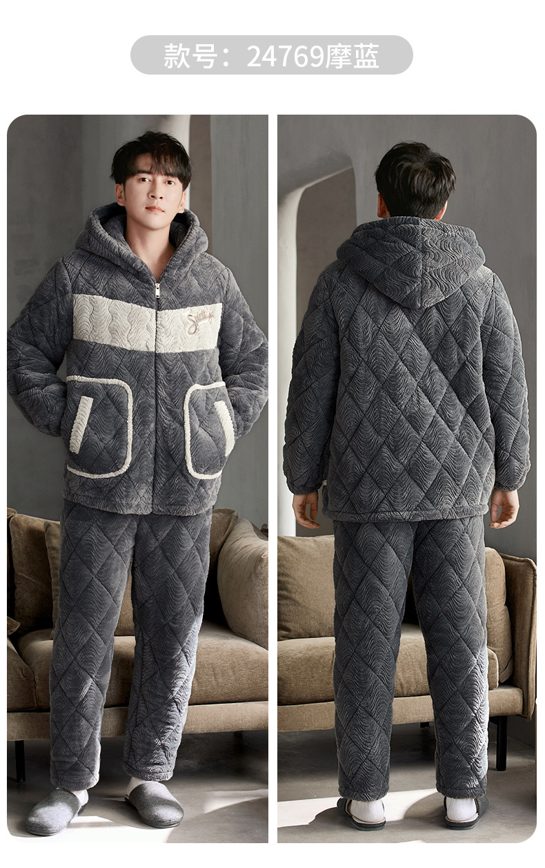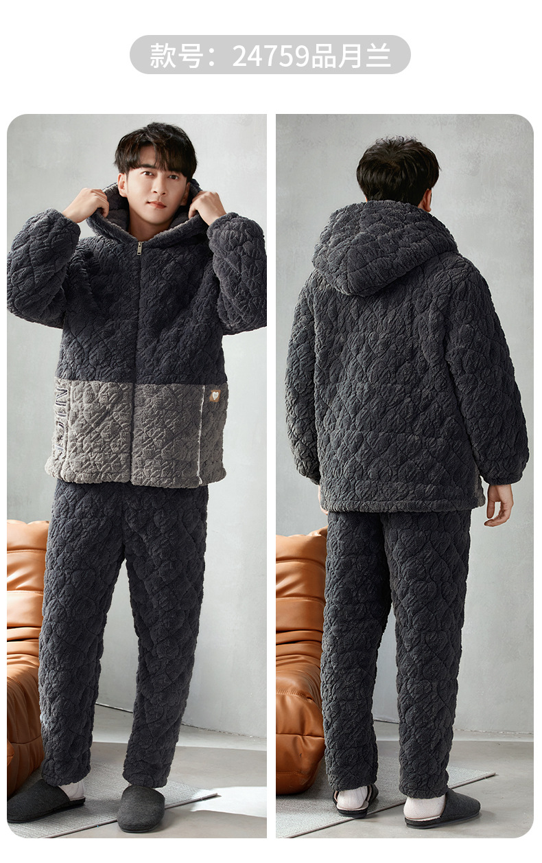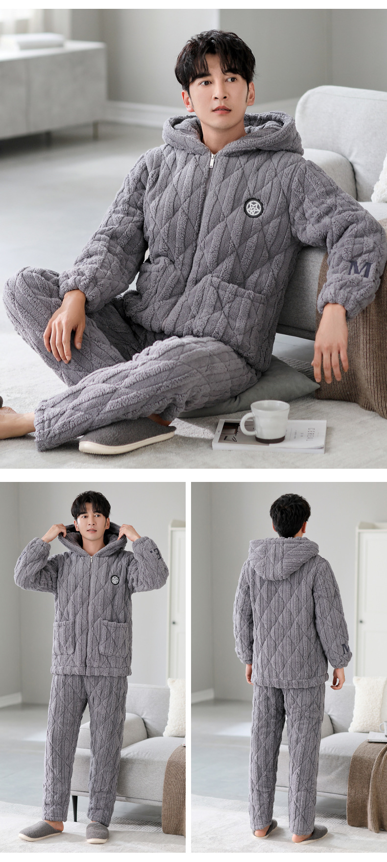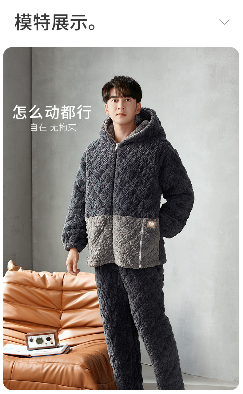 잠옷 남자 겨울 산호 양털 3 층 두꺼운 퀼트 따뜻한 겨울 플란넬 세트스토어 가기