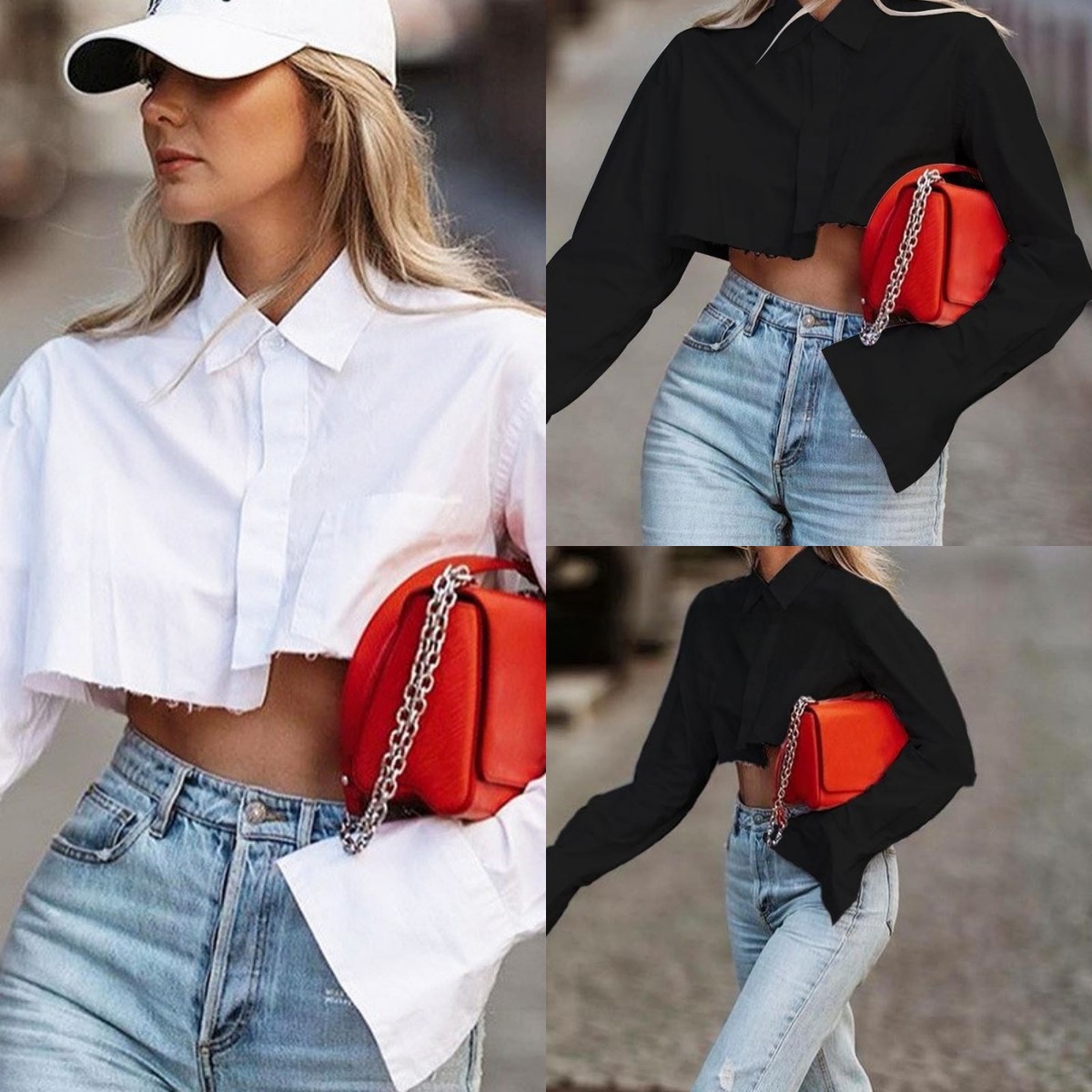 유럽과 미국의 2024 가을 겨울 새로운 크로스보더 긴팔 디자인 라펠 흑백 단색 셔츠 기질 버튼 여성복스토어 가기