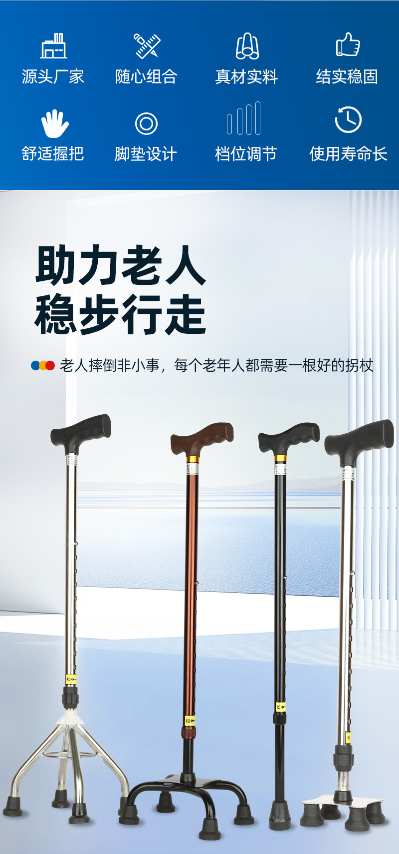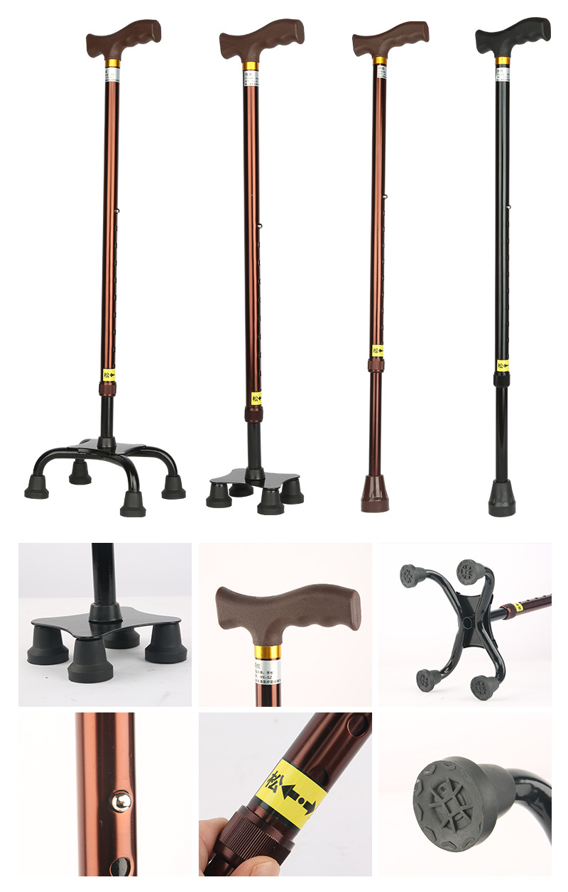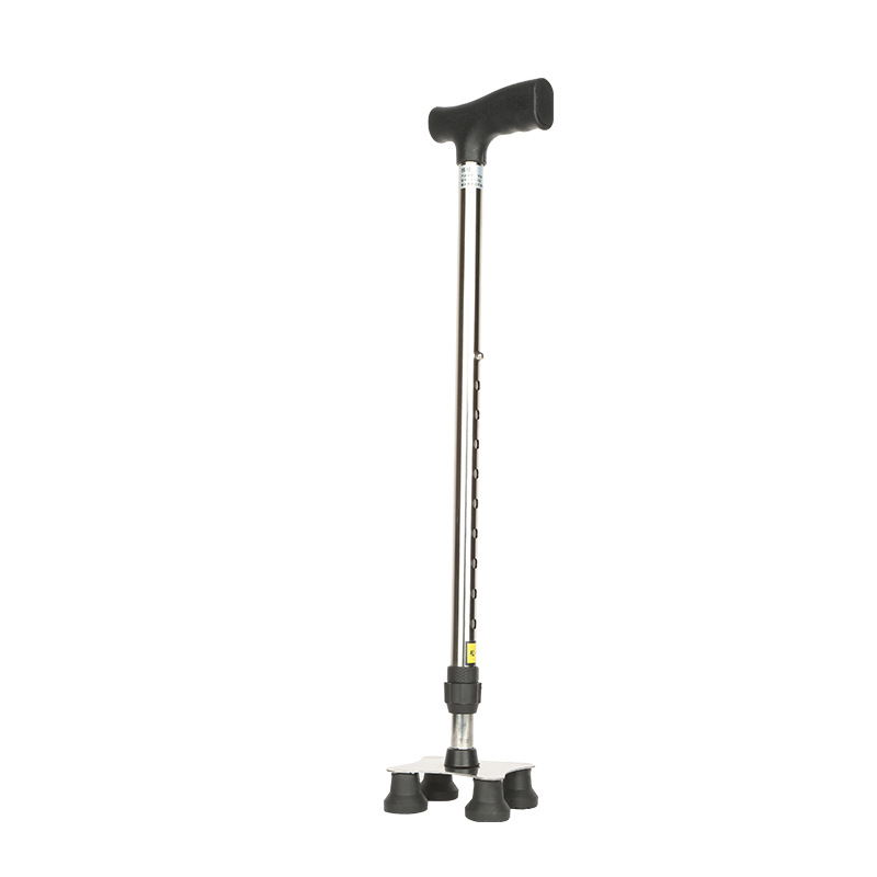 노인 4 발 목발을위한 노인 목발을위한 스테인레스 스틸 목발 망원경 등반을위한 다기능 4 코너 미끄럼 방지 지팡이