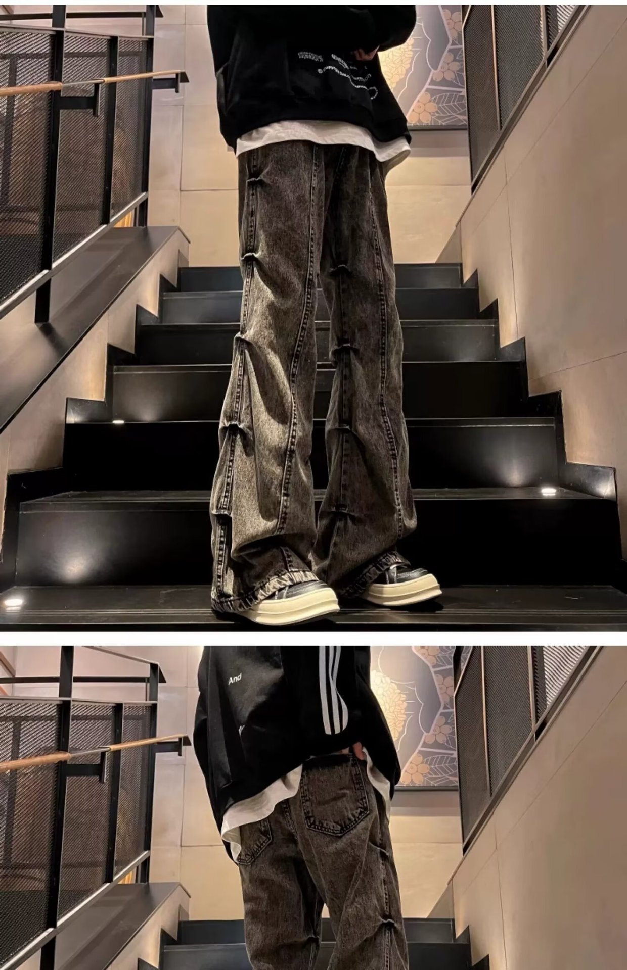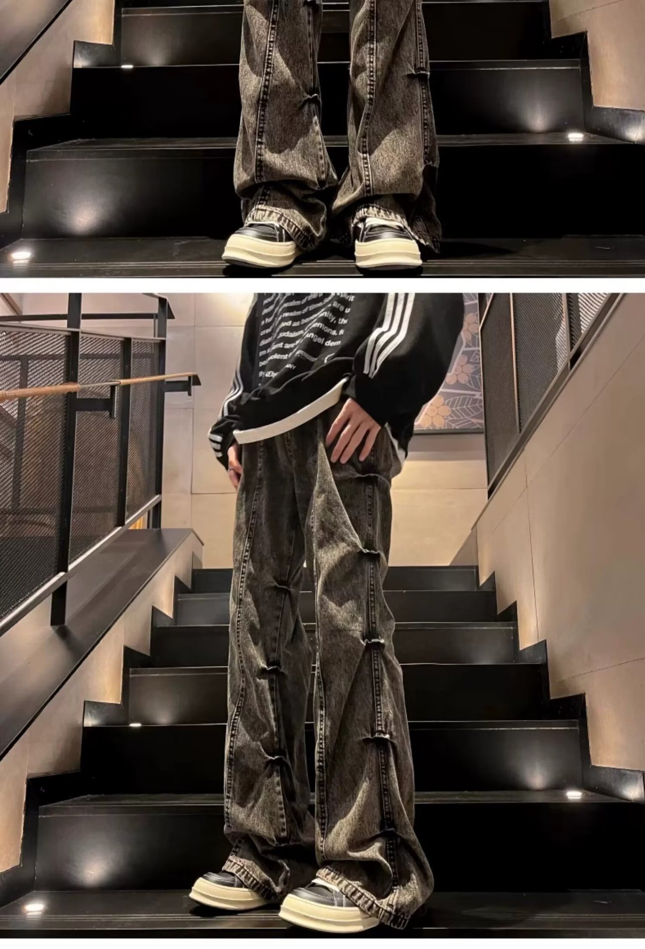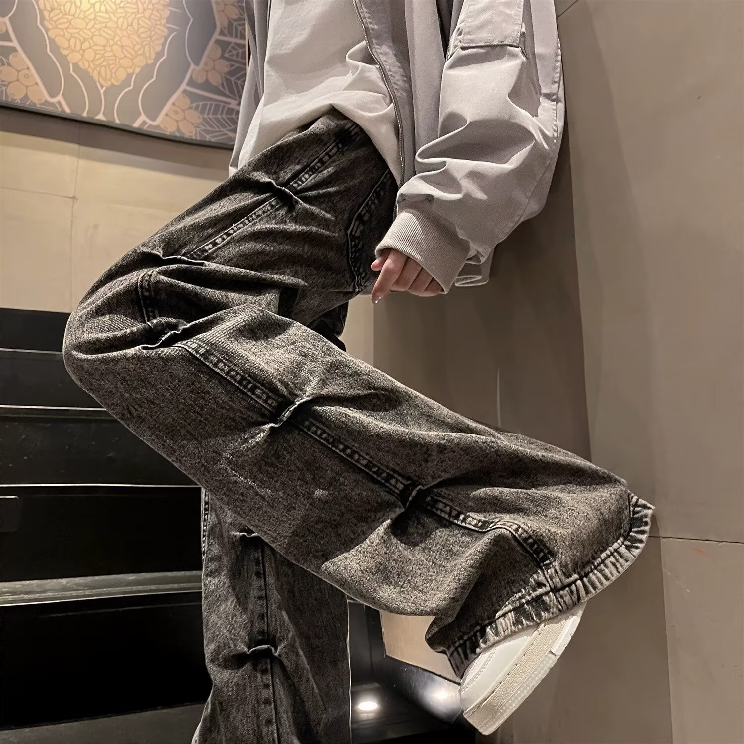 봄과 가을 미국 스타일 하이 스트리트 바이브 스타일 바지 남성 디자인 센스 틈새 지퍼 청바지 스트레이트 마이크로 플레어 바지스토어 가기