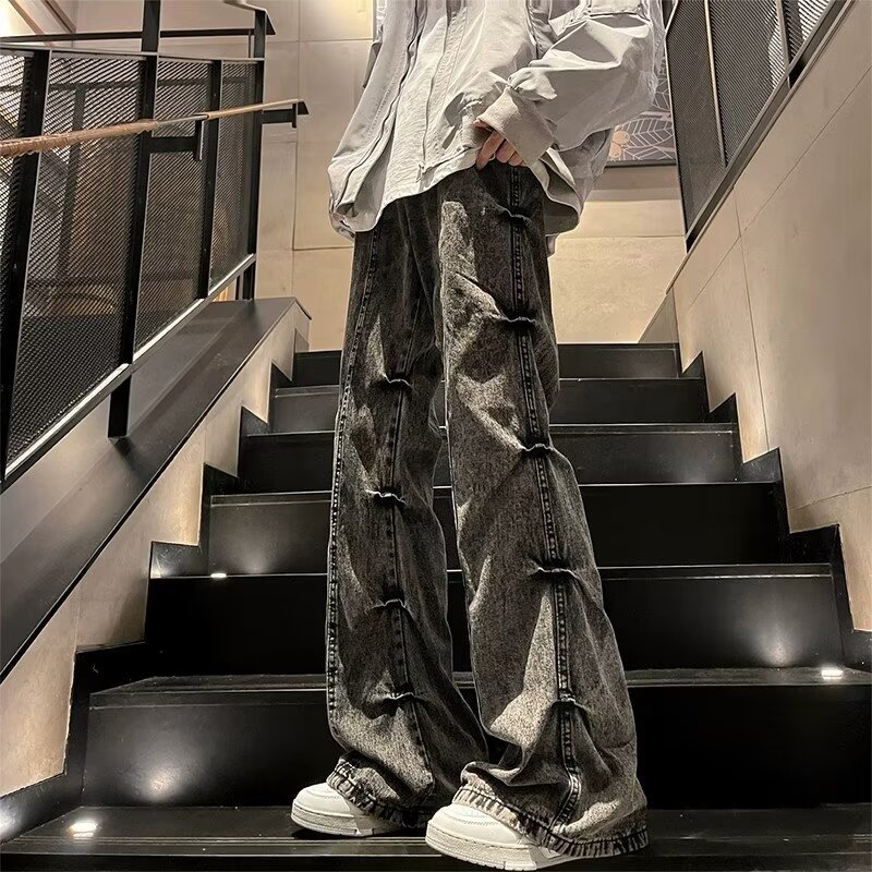 봄과 가을 미국 스타일 하이 스트리트 바이브 스타일 바지 남성 디자인 센스 틈새 지퍼 청바지 스트레이트 마이크로 플레어 바지