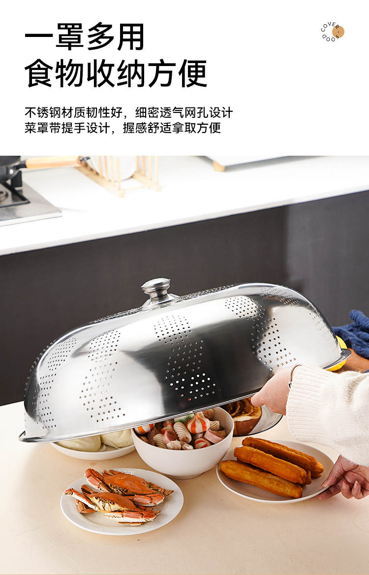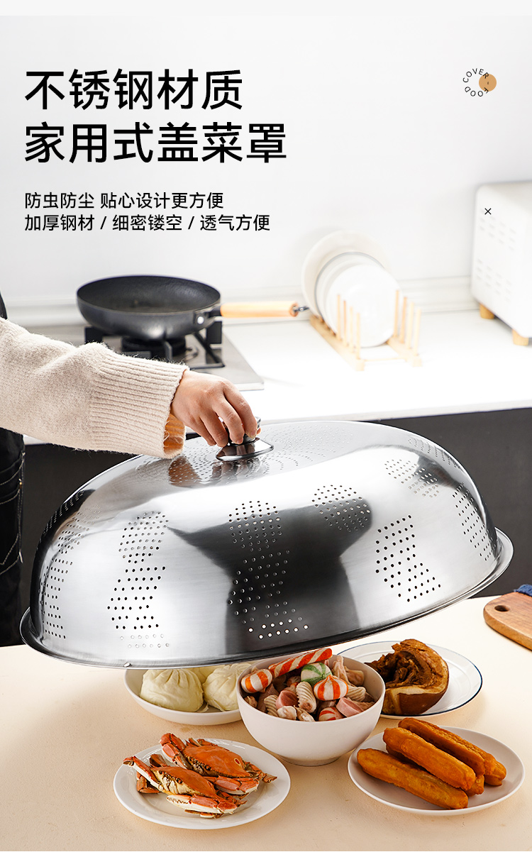 두꺼운 스테인레스 스틸 접시 커버 식품 커버 보관 테이블 그릇 커버 대형 먼지 방지 남은 가정용 주방 변경스토어 가기