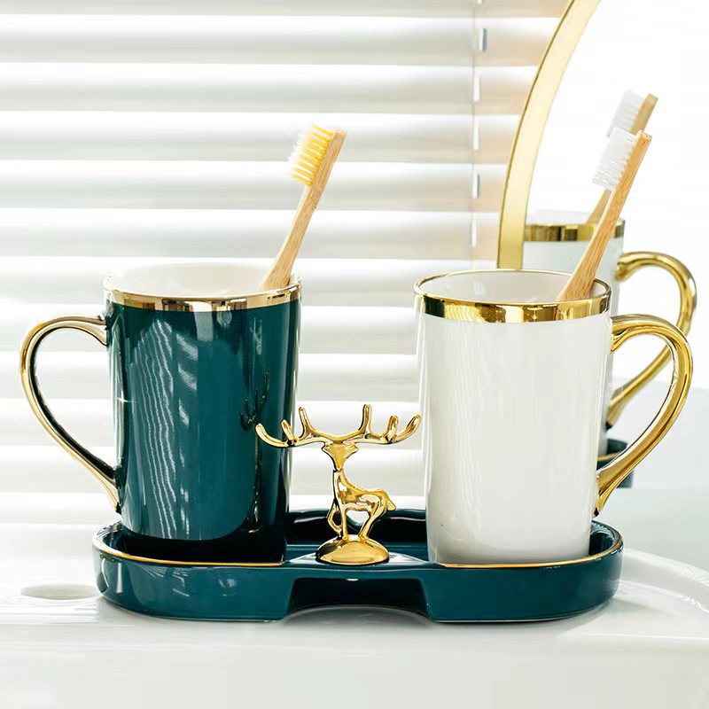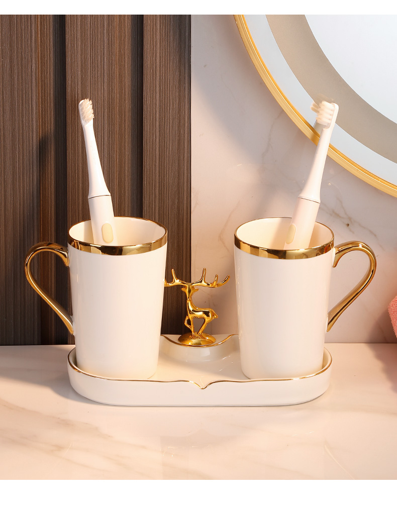 연인 라이트 럭셔리 마우스 워시 컵 스토리지 랙 세라믹 워시 컵 치아 컵 브러시 컵 브러시 컵 링 지 한 쌍
