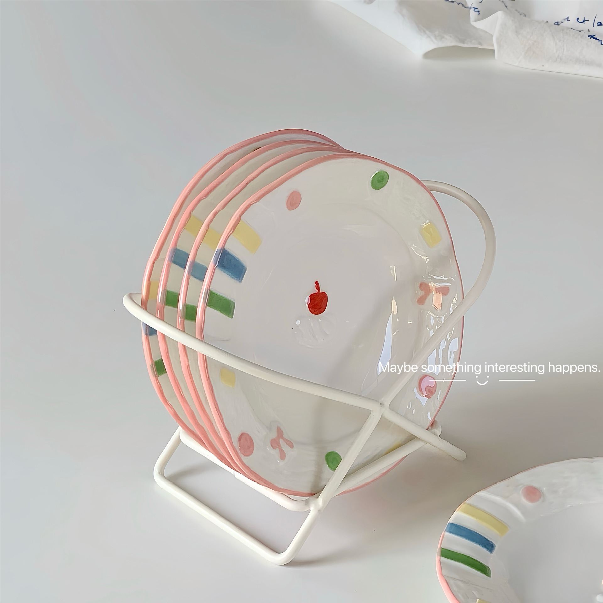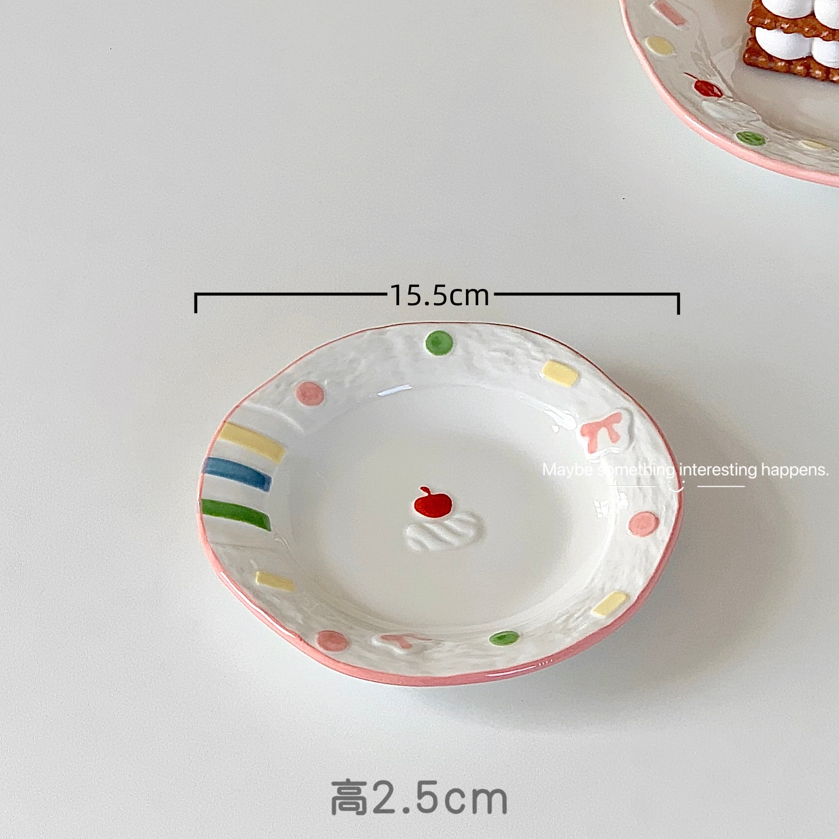 창조적 인 유약 컬러 가정용 6 인치 플레이트 인 스타일 고급 센스 달콤한 플레이트 케이크 플레이트 귀여운 세라믹 뼈 플레이트