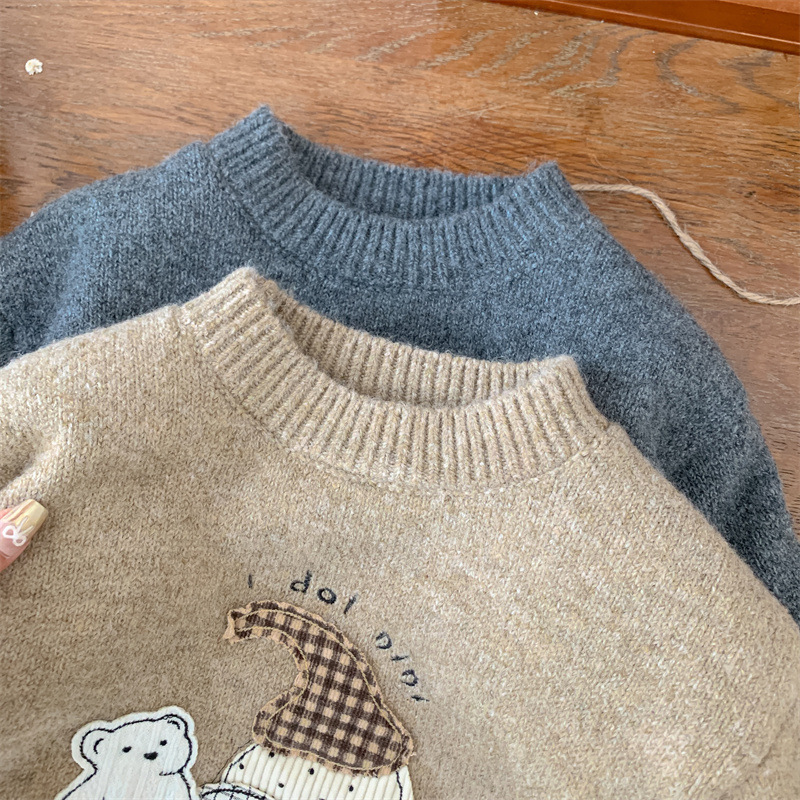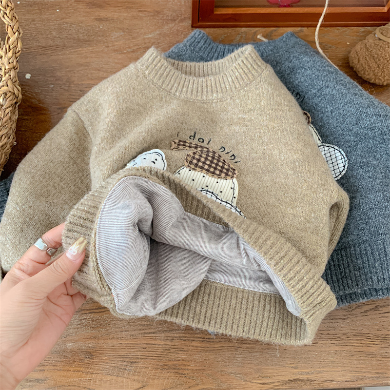 소년 소녀 겨울 스웨터 기모 두껍게 2024 새로운 니트웨어 유행 한국 가을 겨울 스웨터스토어 가기