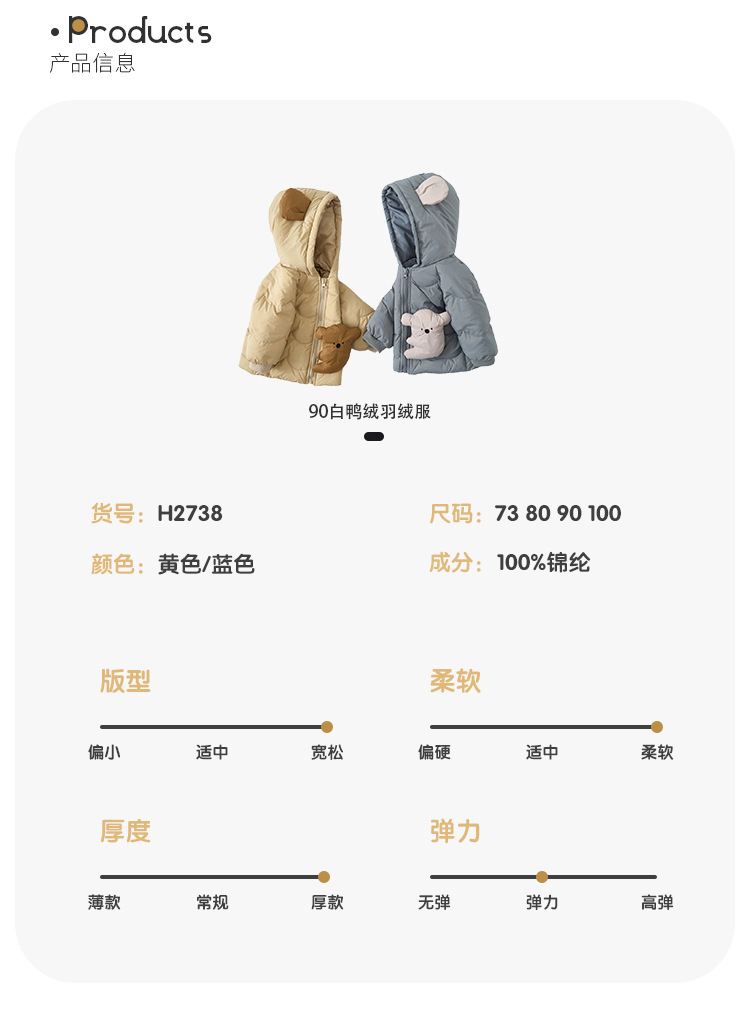 겨울용 따뜻한 아동용 후드 다운 재킷 남아용 다운 재킷 90% 화이트 덕다운 유아복