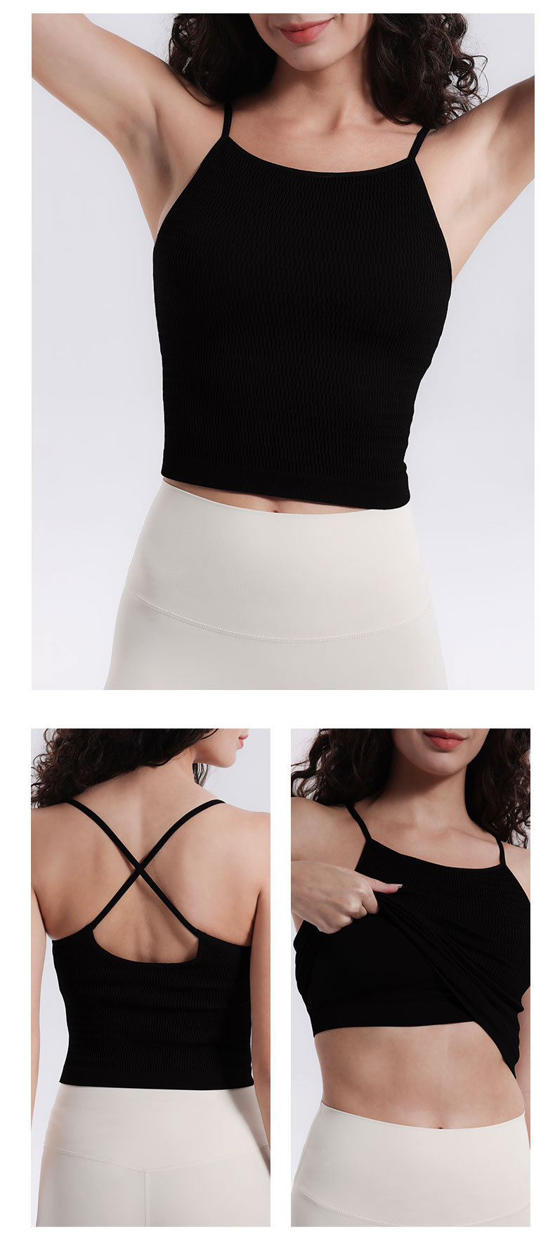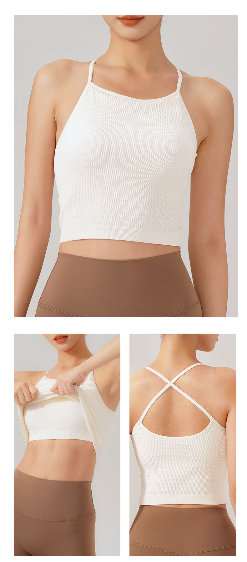 국경 간 새로운 룰루 스포츠 속옷 요가 통합 컵 캐미솔 충격 방지 러닝 댄스 원활한 아름다운 백 여성