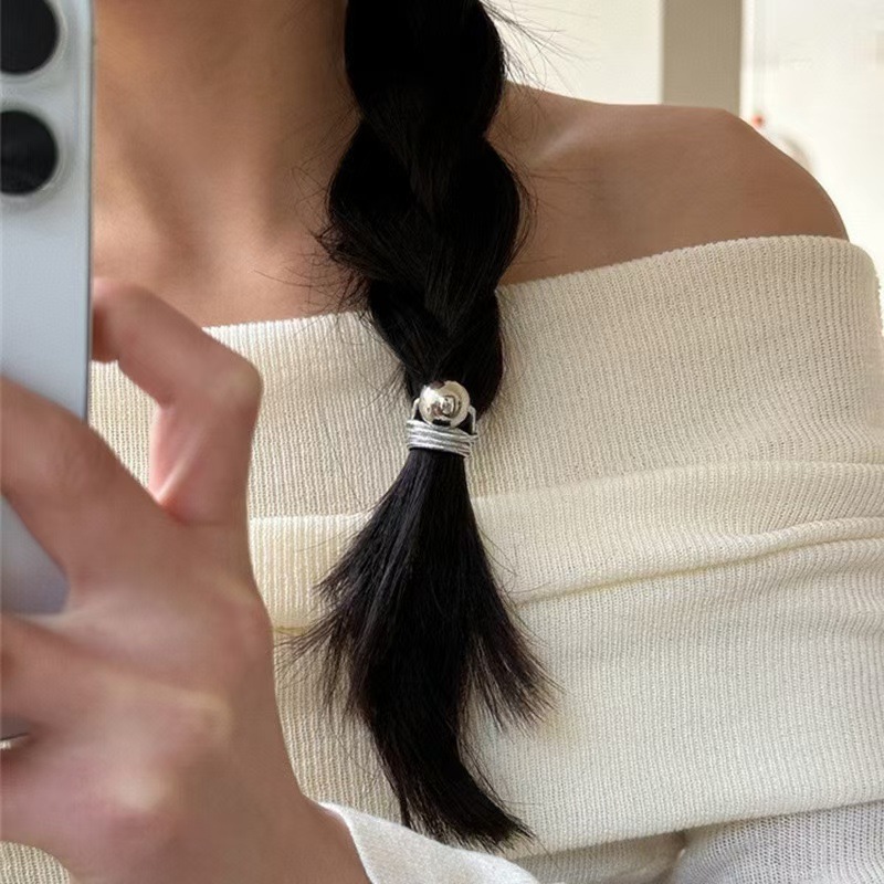 실버 볼 헤어 로프 고급 센스 헤어 링 틈새 달콤한 쿨 스타일 포니 테일 헤어 로프 간단한 스타일 헤어 액세서리 달콤한 헤드웨어