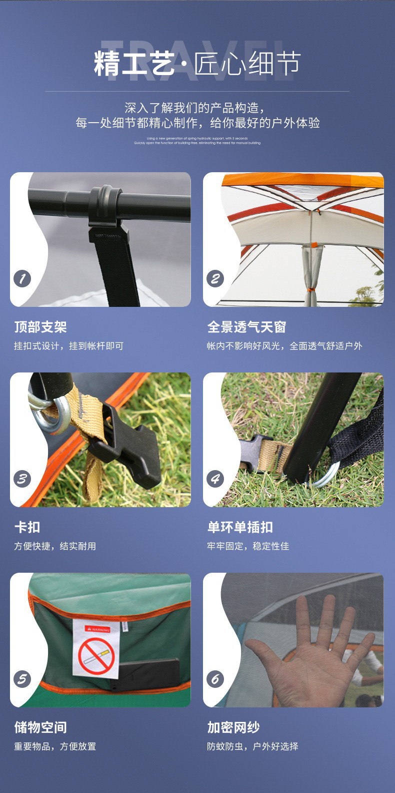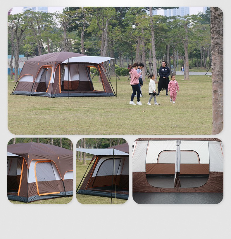 공장 도매 야외 텐트 휴대용 캠핑 두꺼운 방수 자외선 차단제 빠른 개방 캠핑 장비 두 방 한 홀 홈