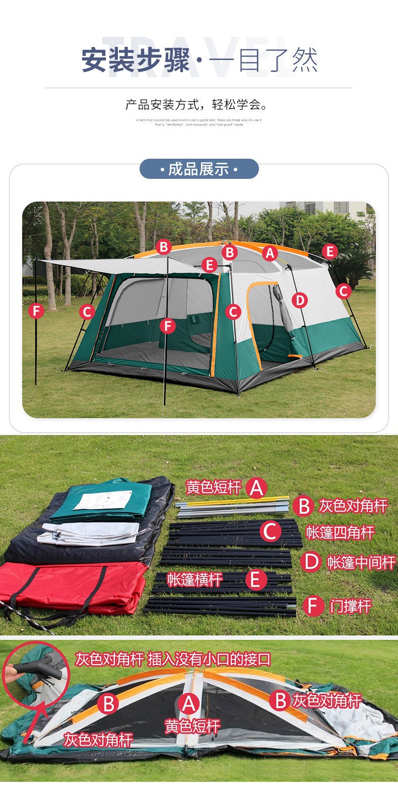 공장 도매 야외 텐트 휴대용 캠핑 두꺼운 방수 자외선 차단제 빠른 개방 캠핑 장비 두 방 한 홀 홈스토어 가기