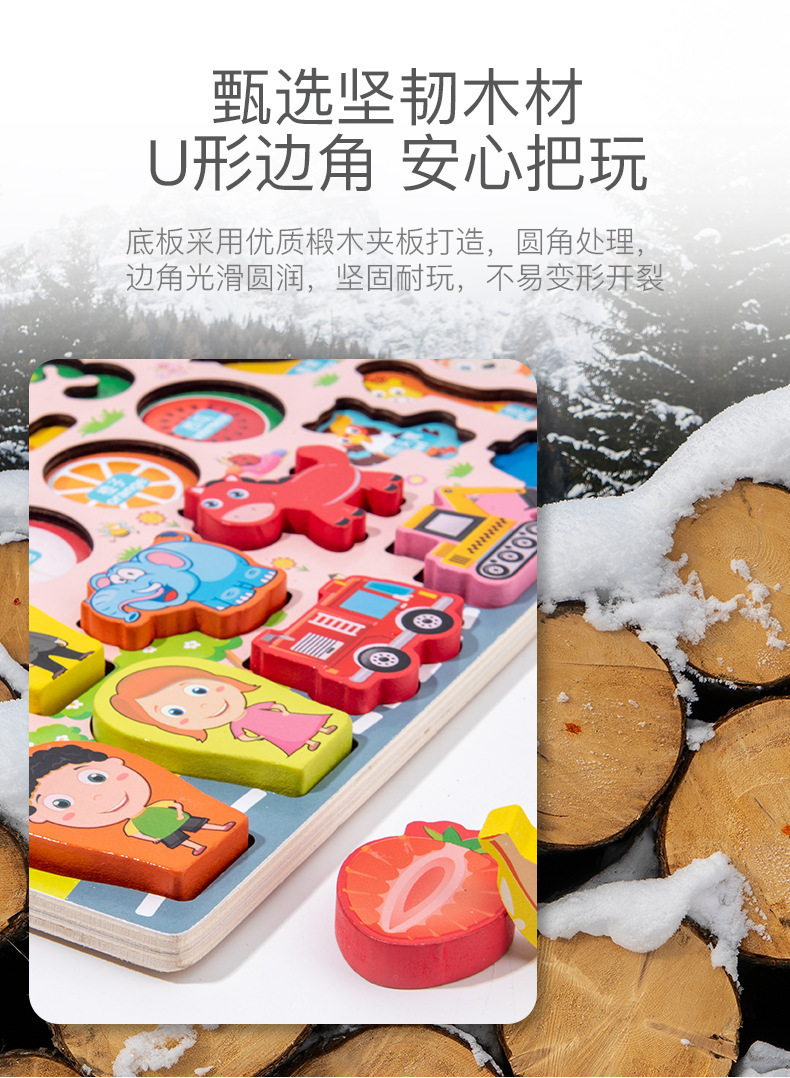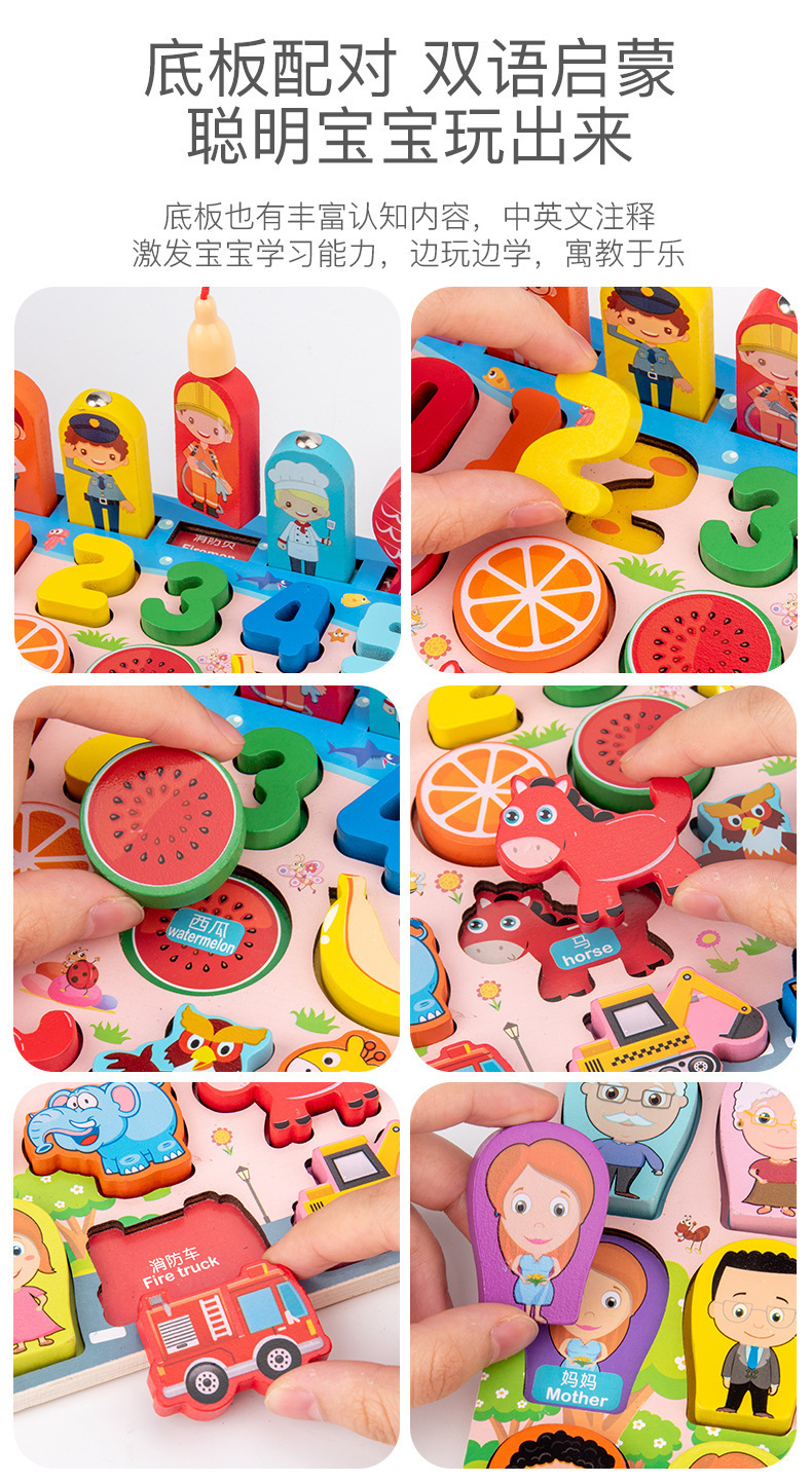 어린이 조기 교육 다기능 로그 보드 과일 숫자 블록 조기 교육 퍼즐 몬테소리 퍼즐 아기 두뇌 발달 장난감