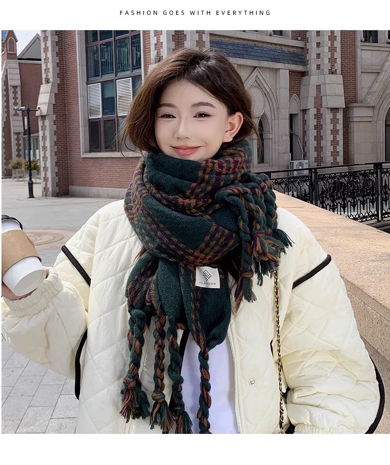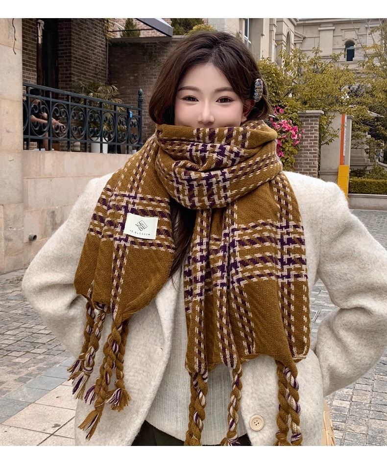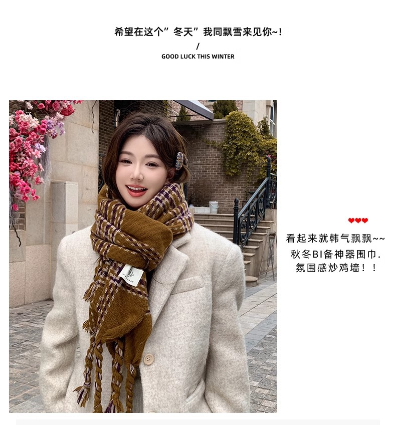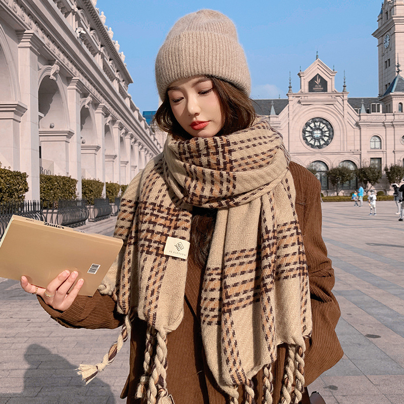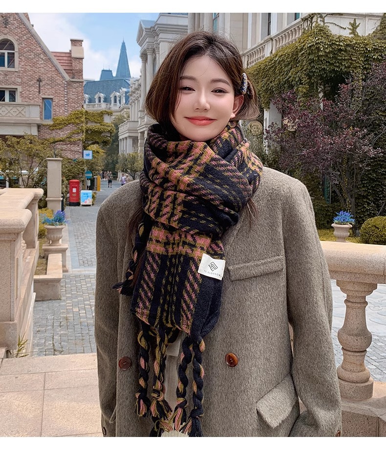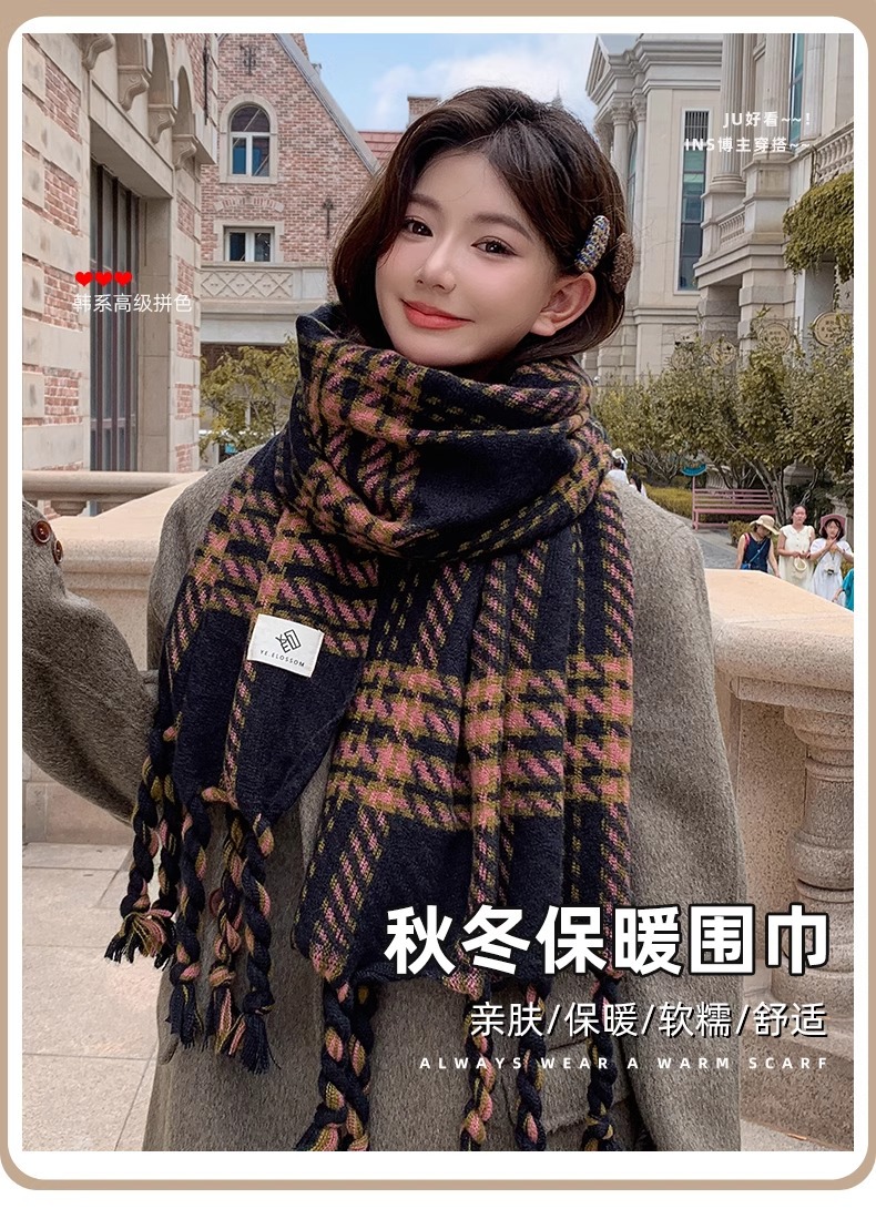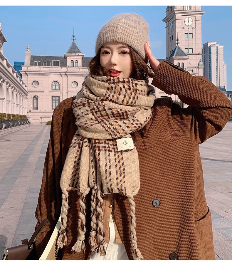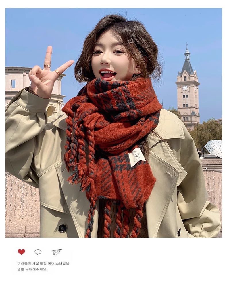 한국 스타일 꼬인 머리띠 술 스카프 여자 2024 년 새 겨울 모조 캐시미어 올매치 두꺼운 따뜻한 커플 스카프스토어 가기