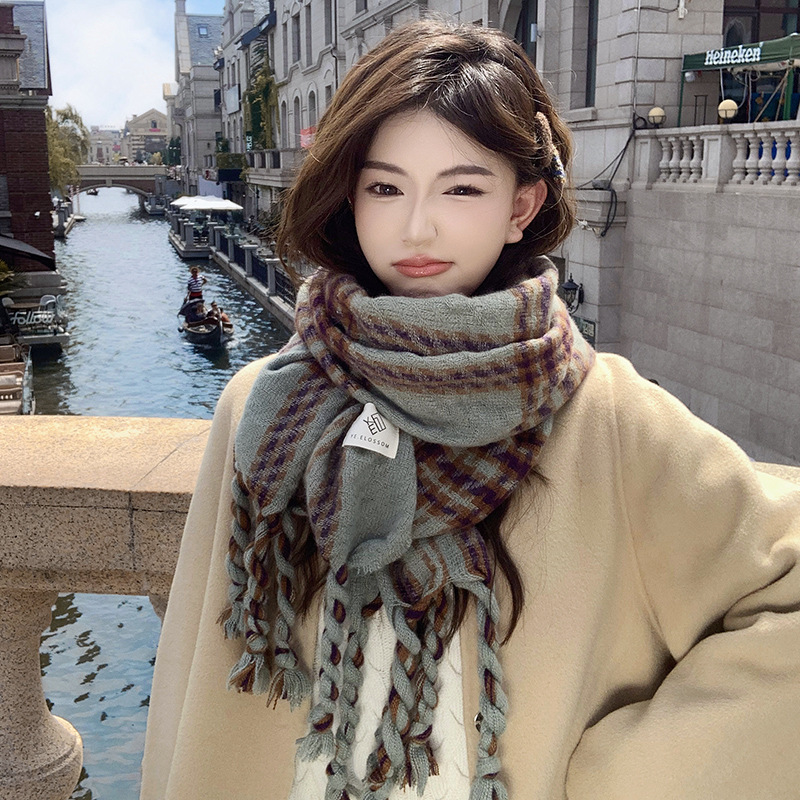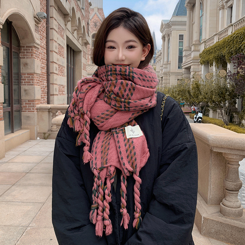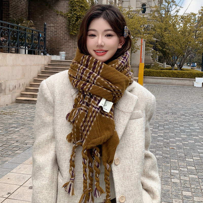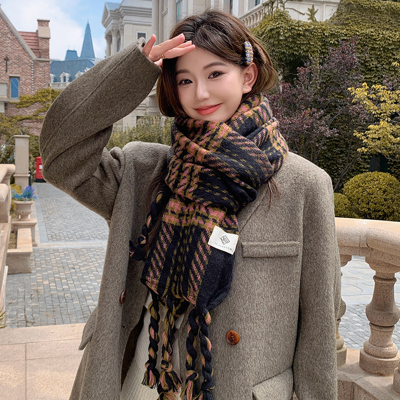 한국 스타일 꼬인 머리띠 술 스카프 여자 2024 년 새 겨울 모조 캐시미어 올매치 두꺼운 따뜻한 커플 스카프
