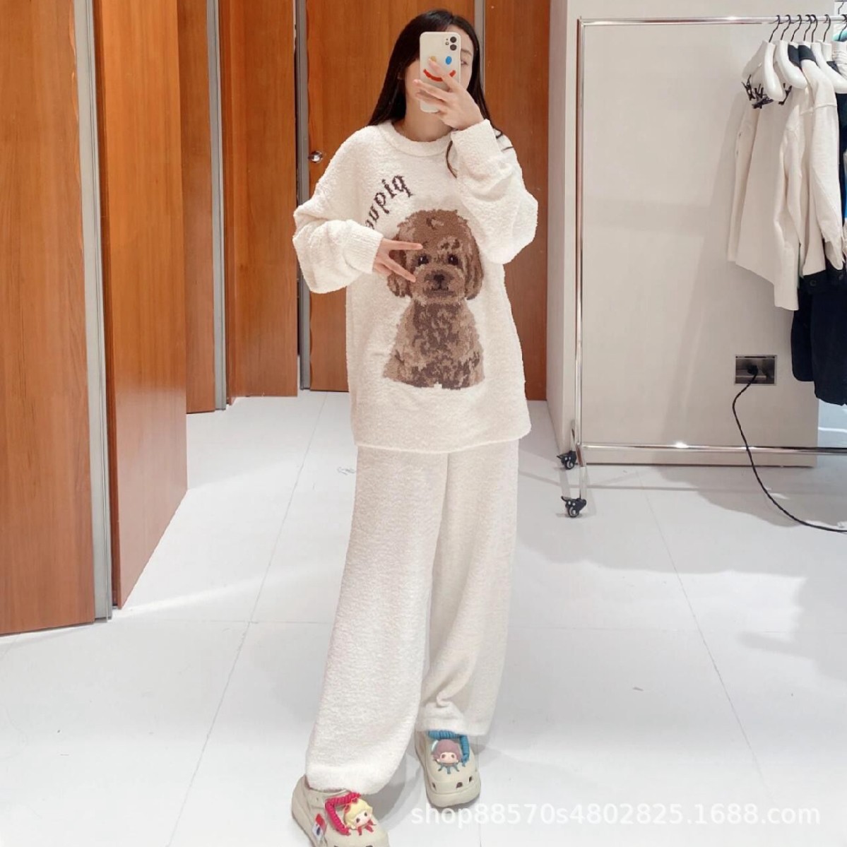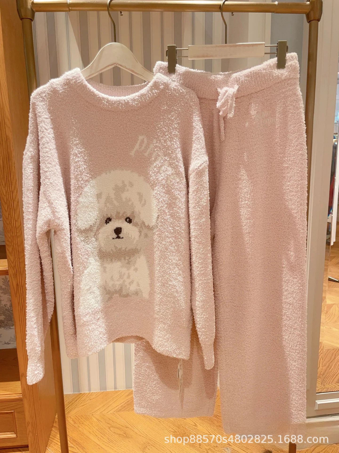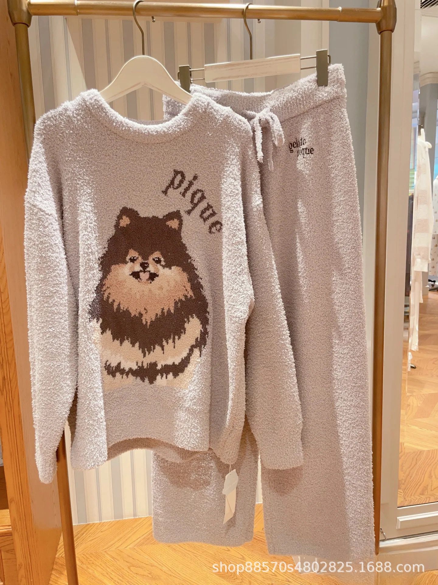 GP 부드러운 겨울 포메리 베어 테디 하프 벨벳 파자마 여성 세트 성인 커플 홈 옷스토어 가기