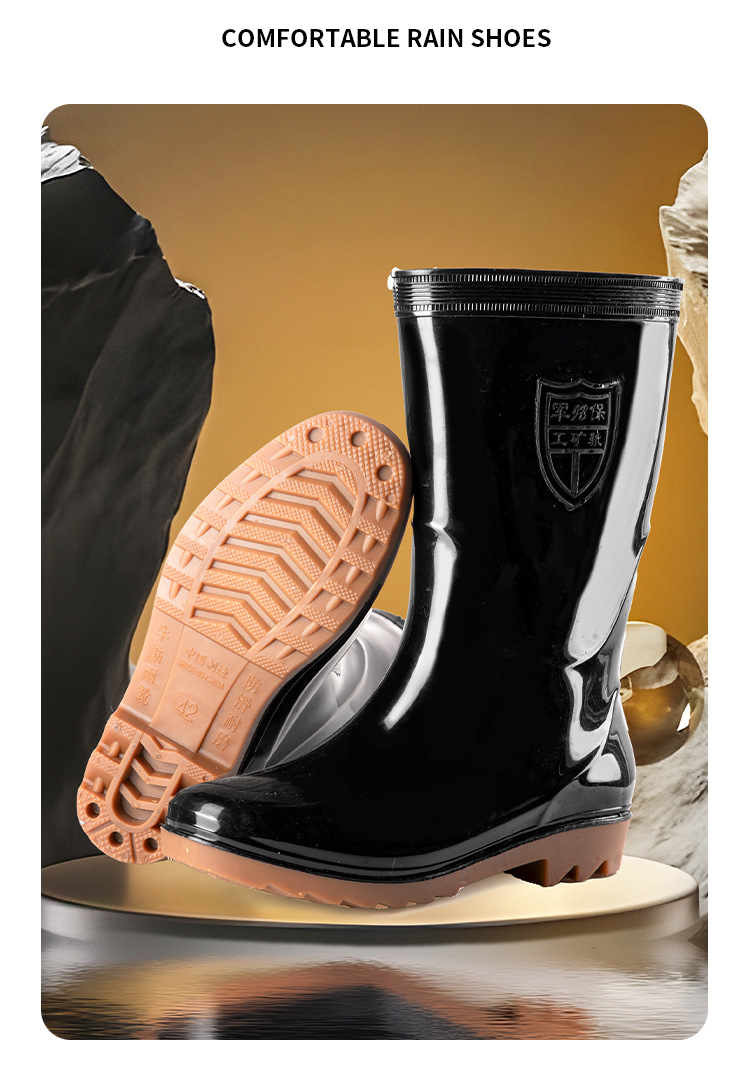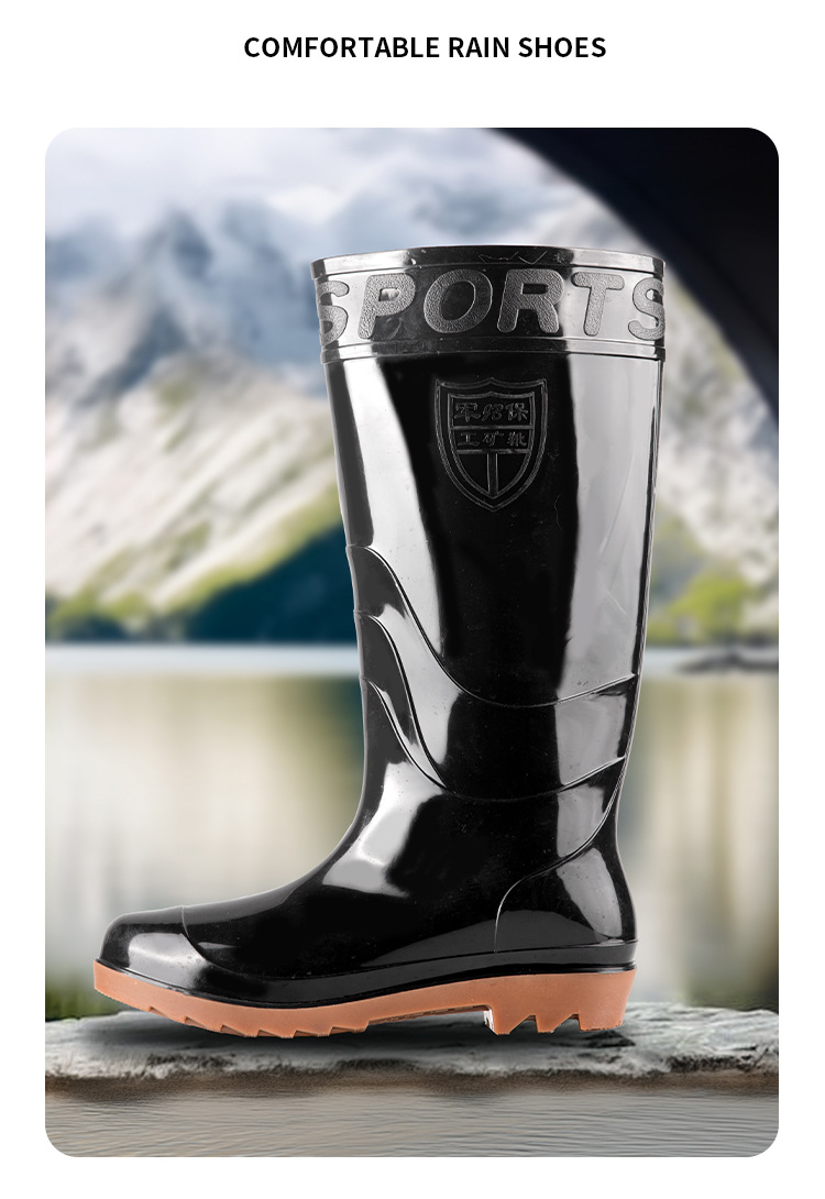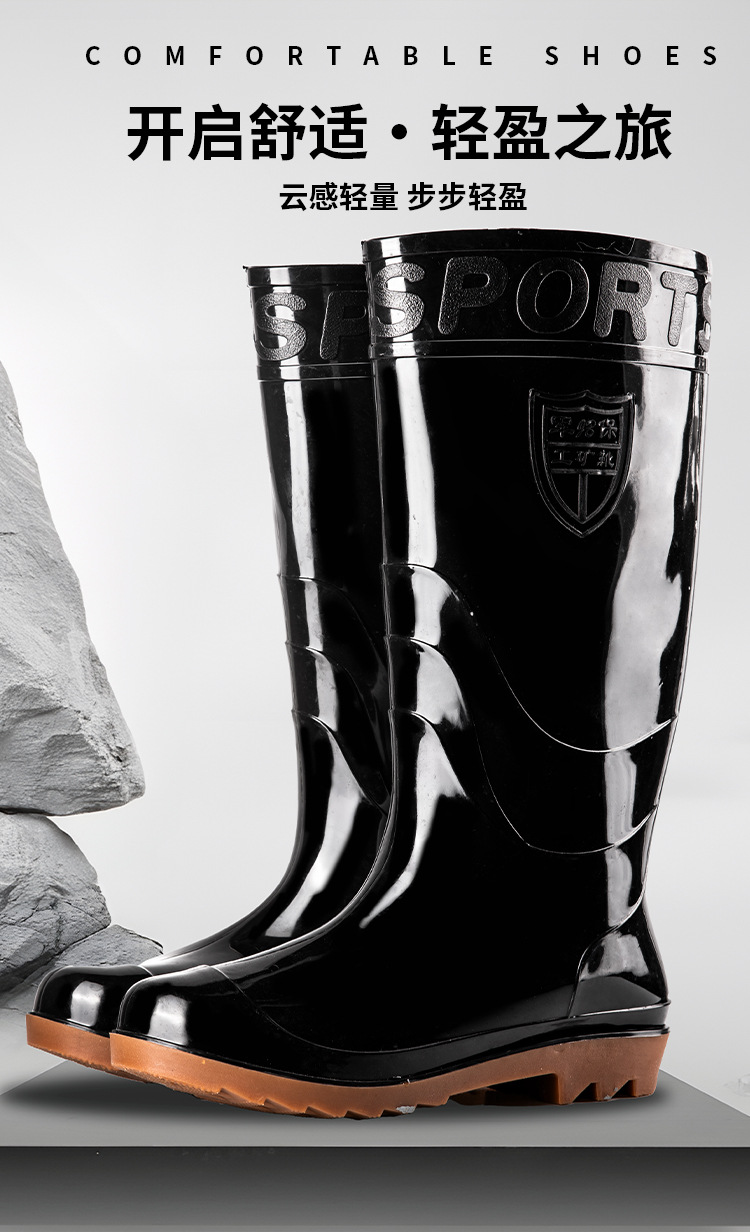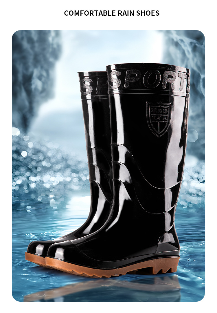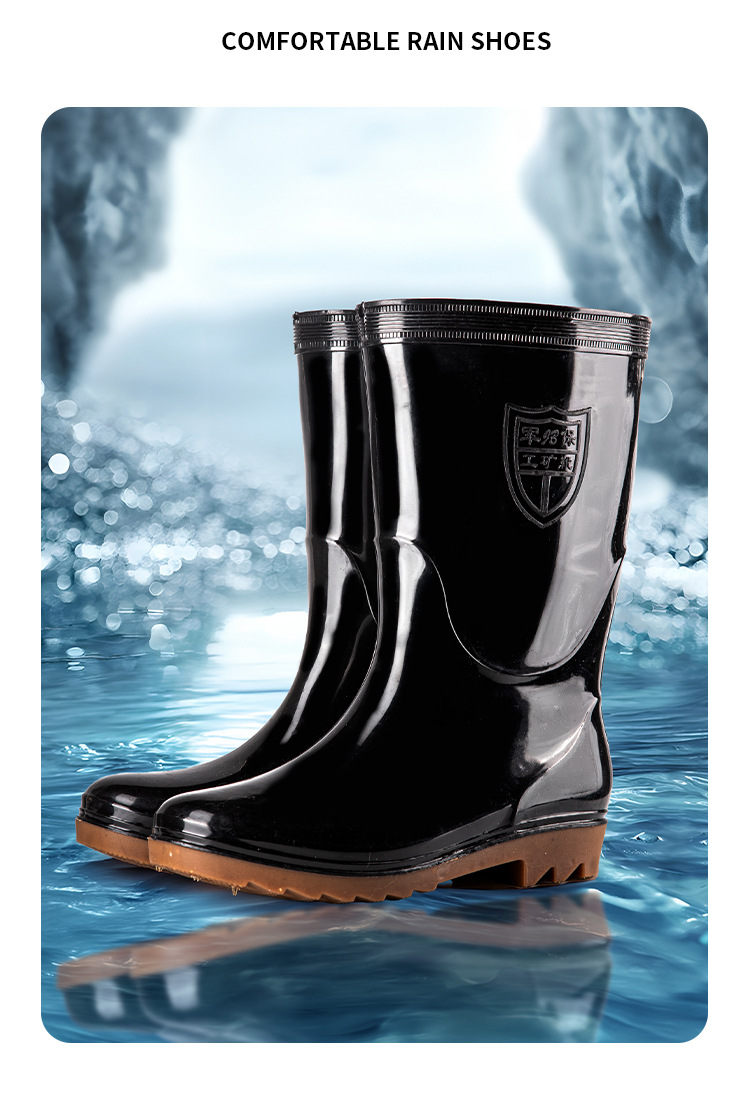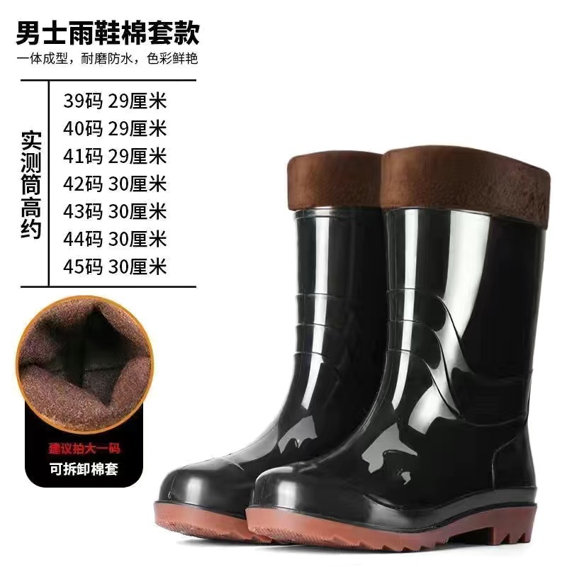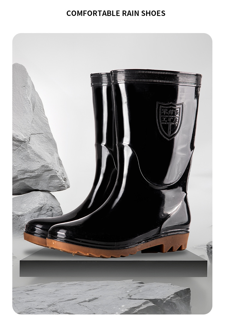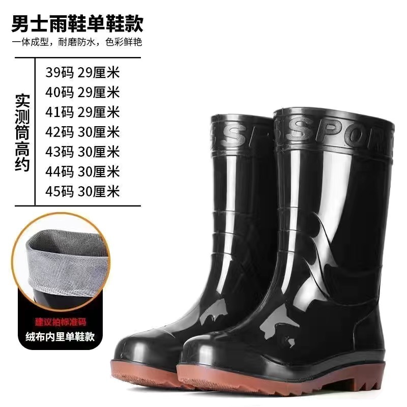 높은 검은 비 부츠 전통적인 주방 고무 신발 중간 긴 튜브 물 신발 물 부츠 Junbo 남성 비 부츠 야외 작업 신발스토어 가기