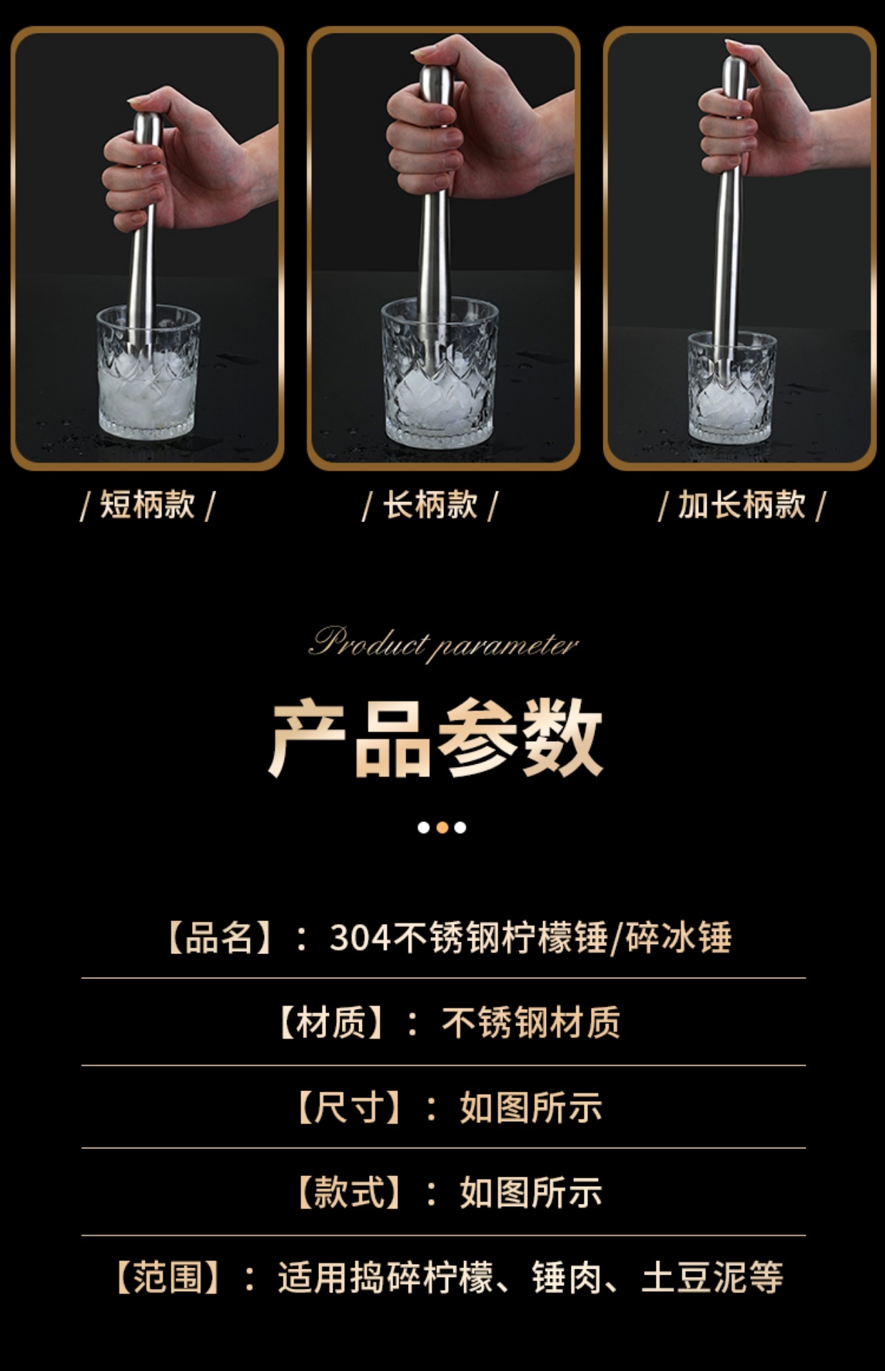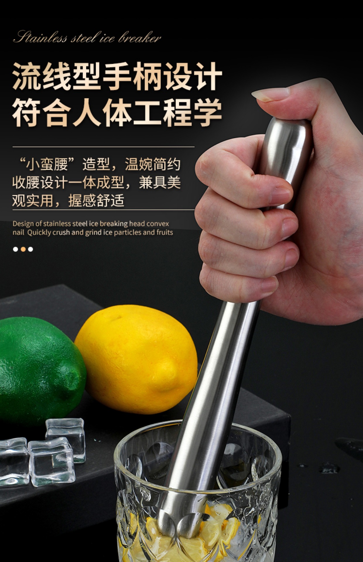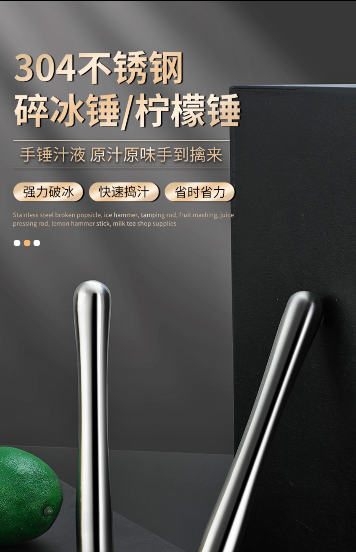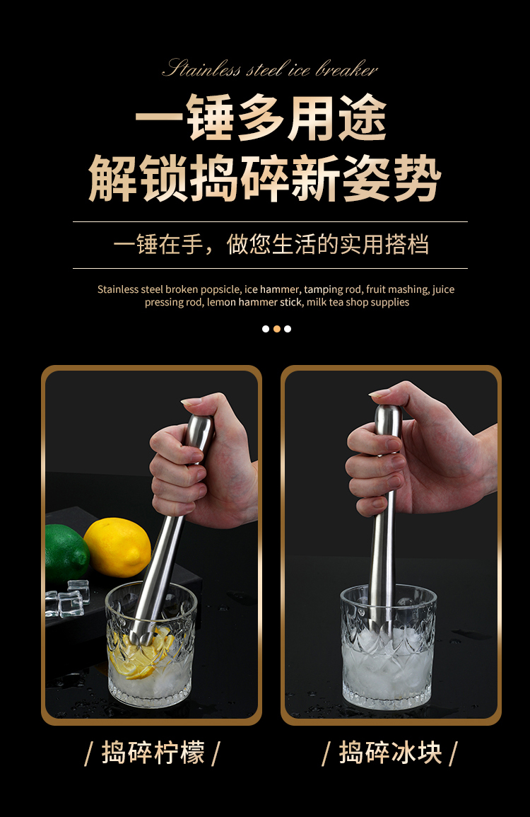304 스테인레스 스틸 분쇄 아이스 스틱 홈 바 수제 레몬 티 도구 매싱 스틱 과일 주스 스틱 매싱
