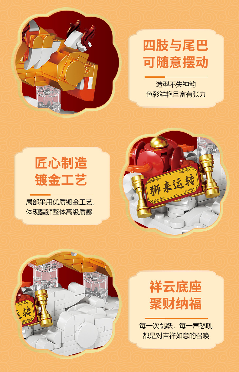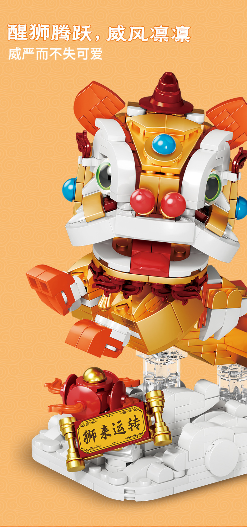 봄 축제 사자 댄스 빌딩 블록 국가 조수 데스크탑 장식품 조립 작은 입자 빌딩 블록 장난감 새해 선물스토어 가기