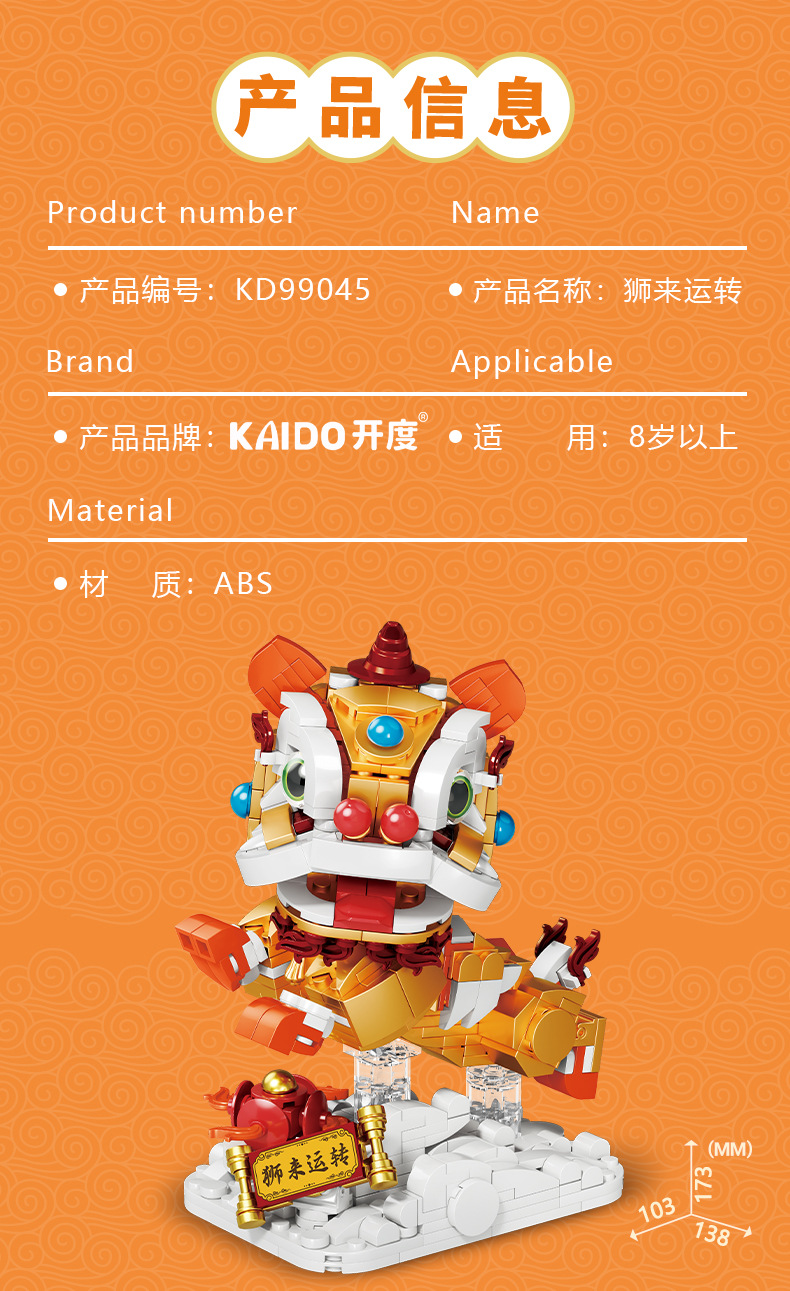 봄 축제 사자 댄스 빌딩 블록 국가 조수 데스크탑 장식품 조립 작은 입자 빌딩 블록 장난감 새해 선물
