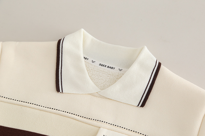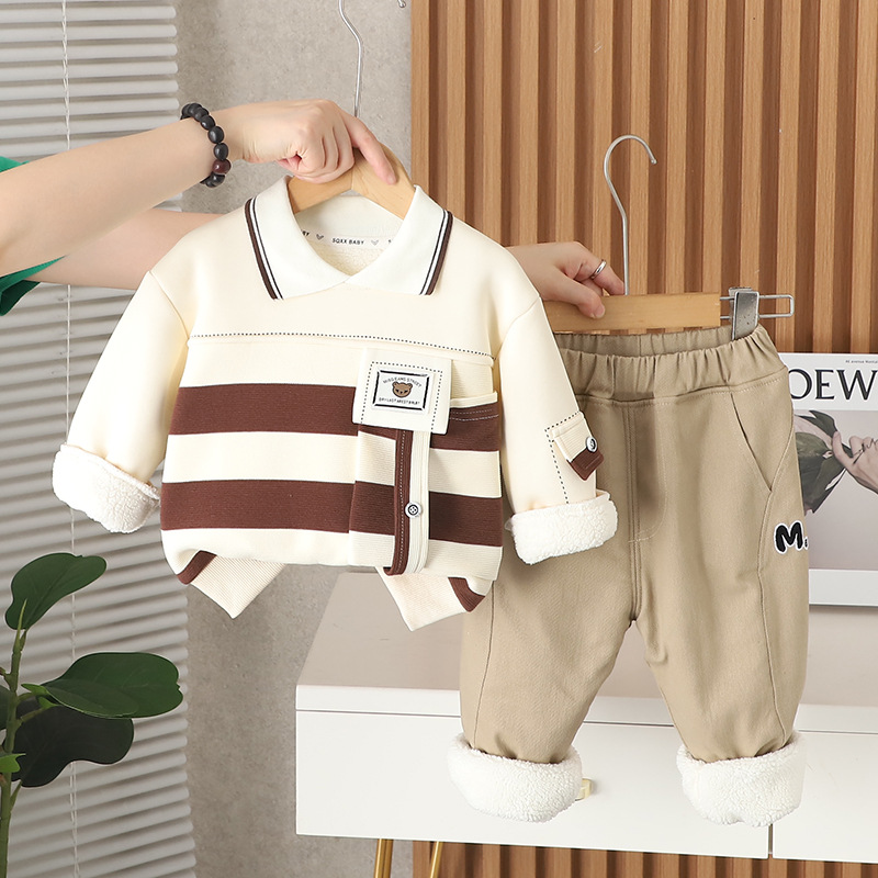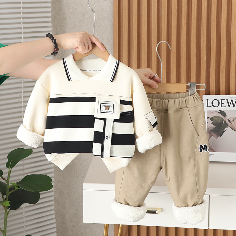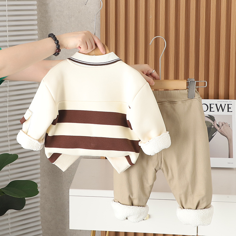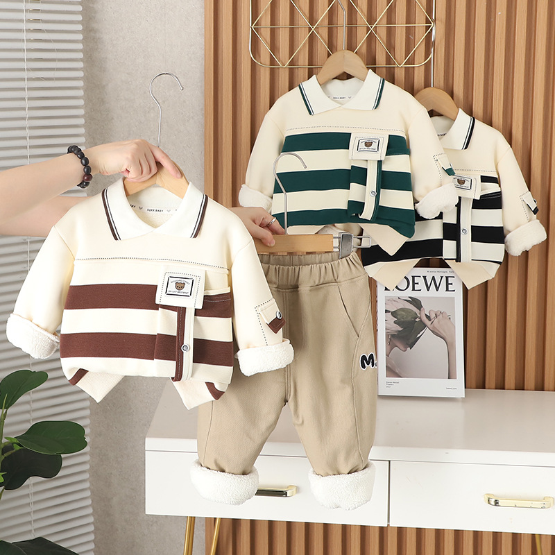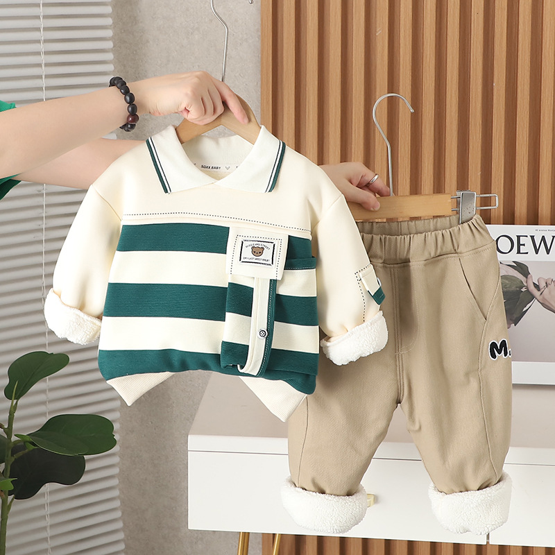 5 개의 작은 7 개의 아동복 2024 가을과 겨울 새로운 0-4 세 소년 기모 넓은 옷깃 스웨터 2 피스 세트